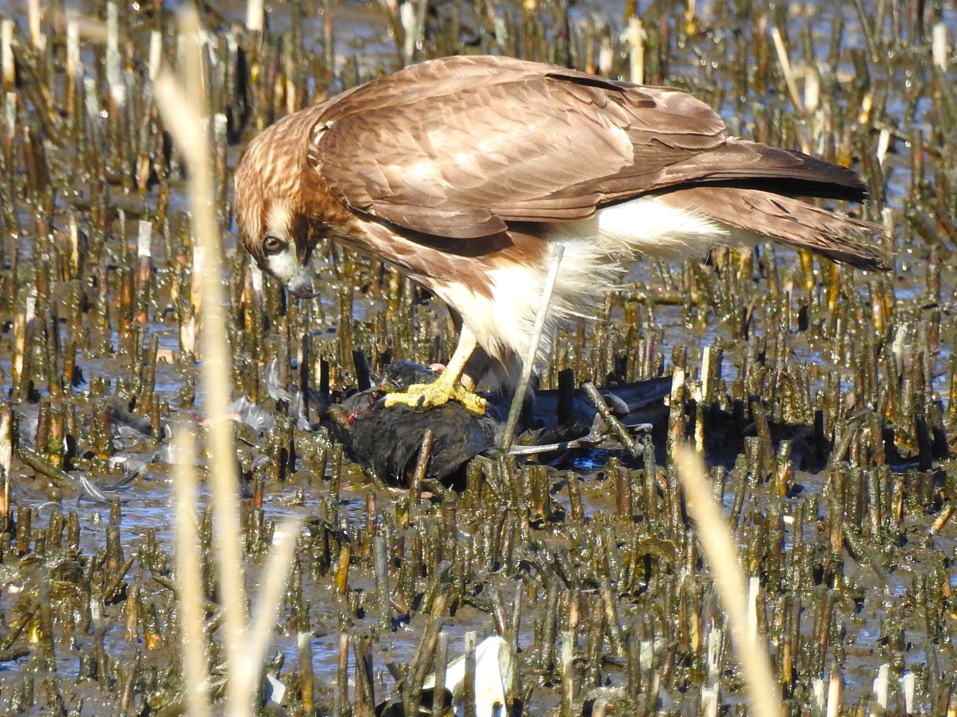 小鳥は猛禽の怖さを種類ごとによく知っており、オオタカが現れると一目散に逃げ隠れ、ノスリだと警戒の態勢、トビだと余り反応しない、と言われています。ただ、実際にはノスリも小鳥を捕まえることは有ります。