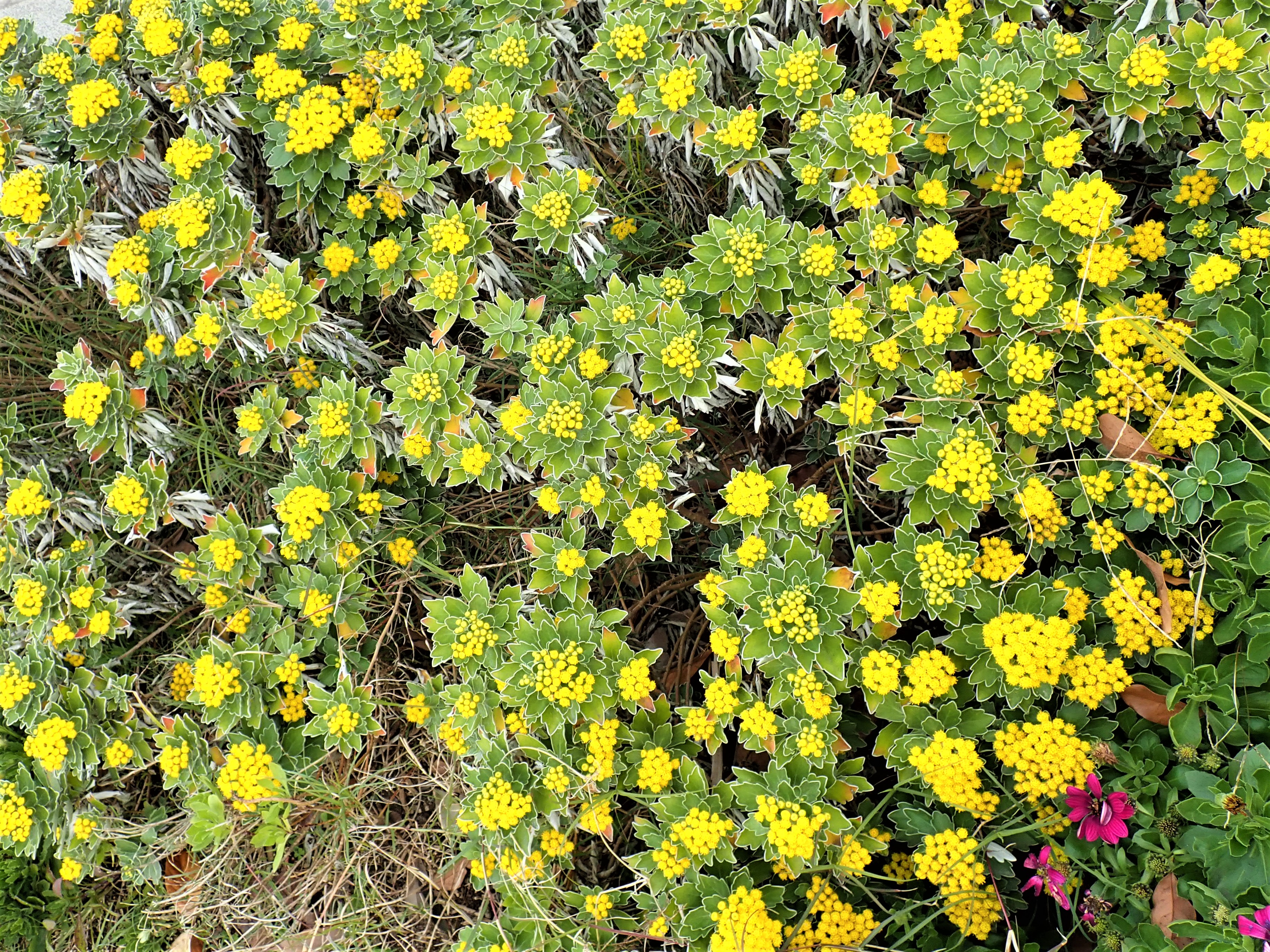 葉裏に多くの毛があり、分厚くなっています。名前の通り、磯の近く、海岸の崖などに自生しています。分厚く、毛の多い葉は海岸の潮風に対応できるよう進化したものと解説されています。近年は庭に植えられたりもしています。