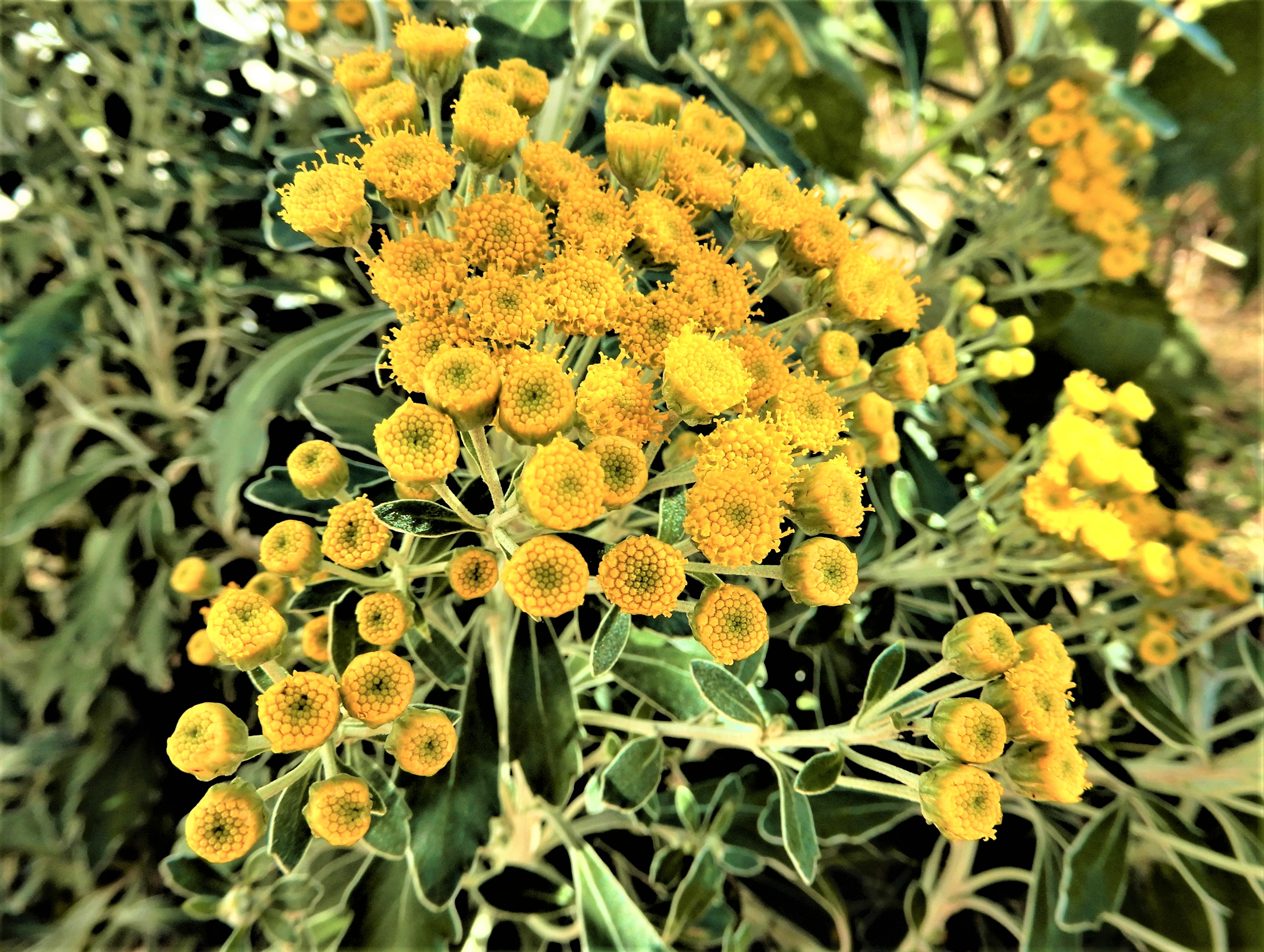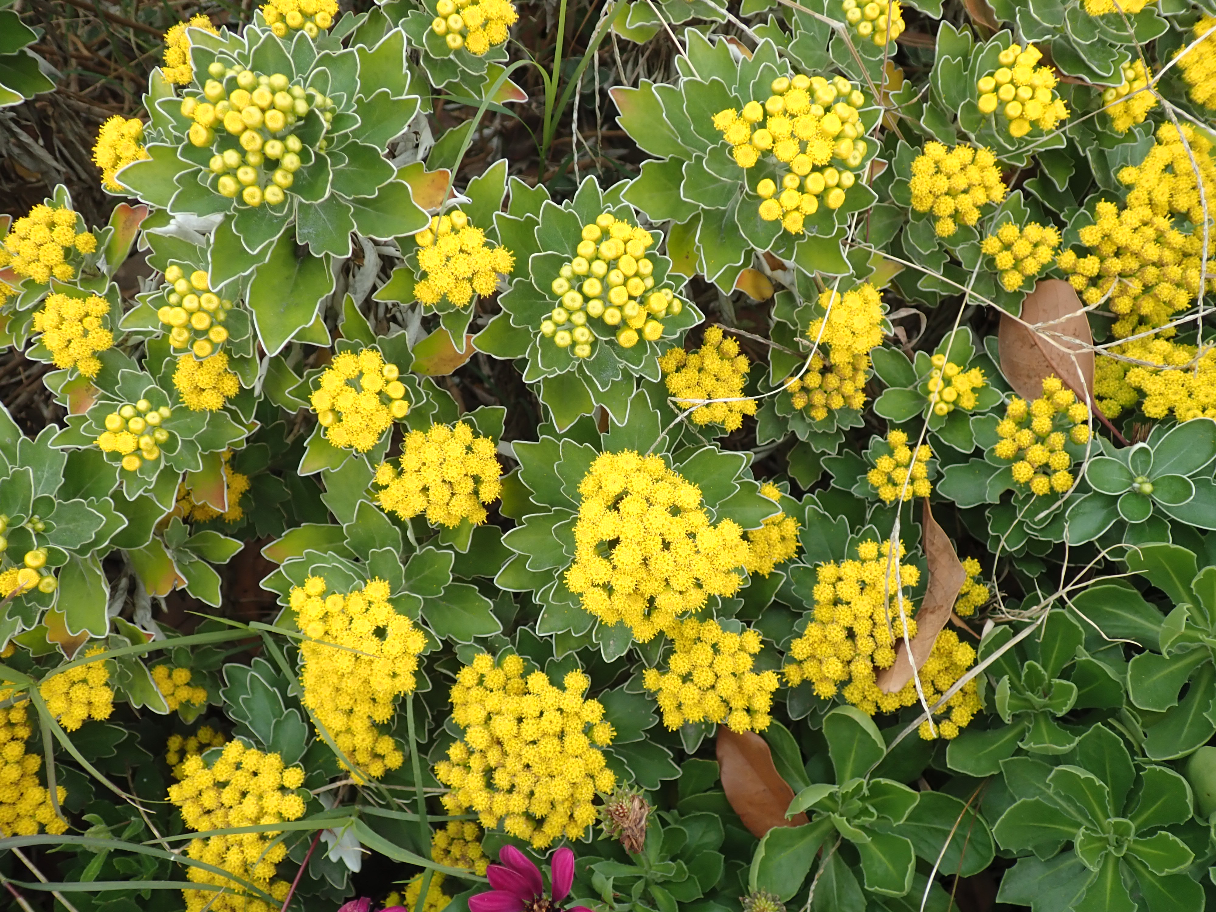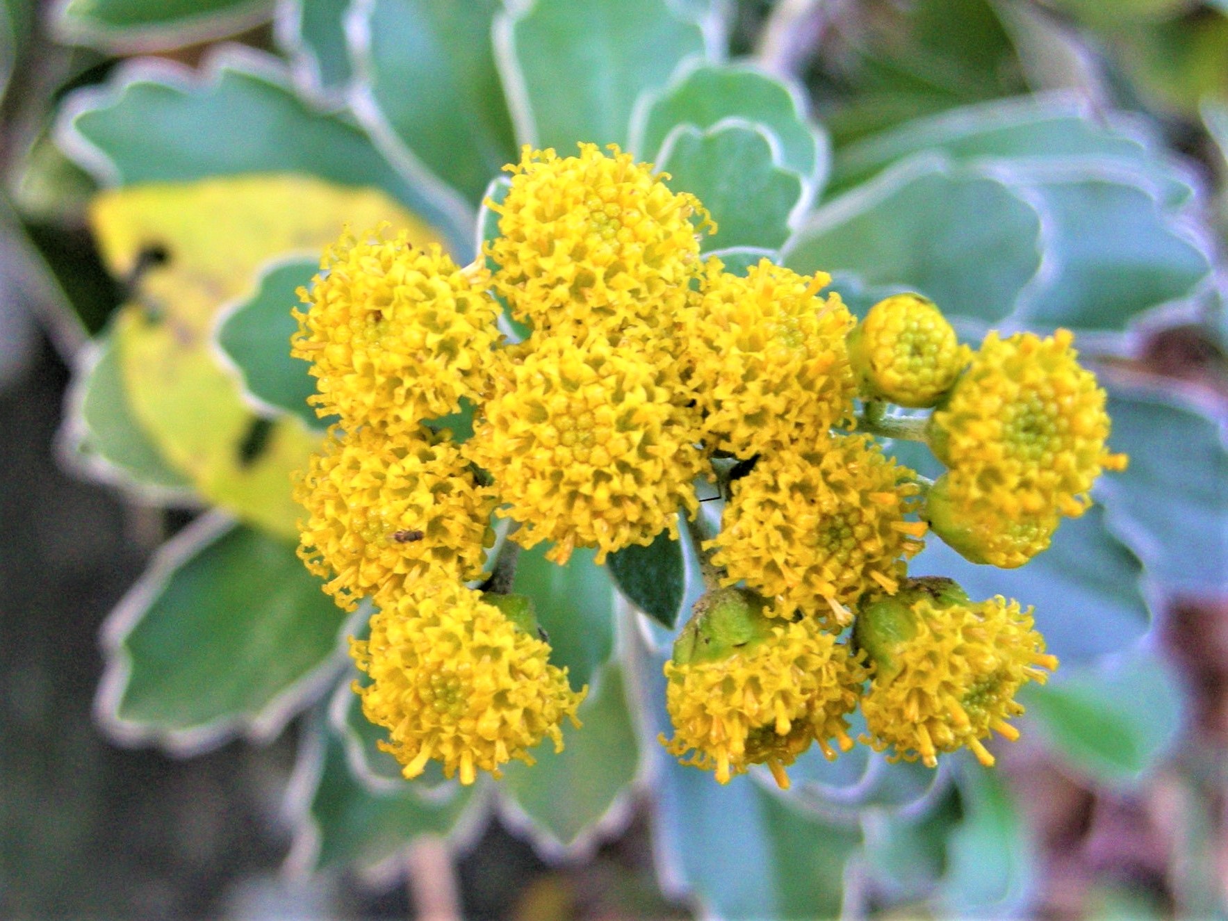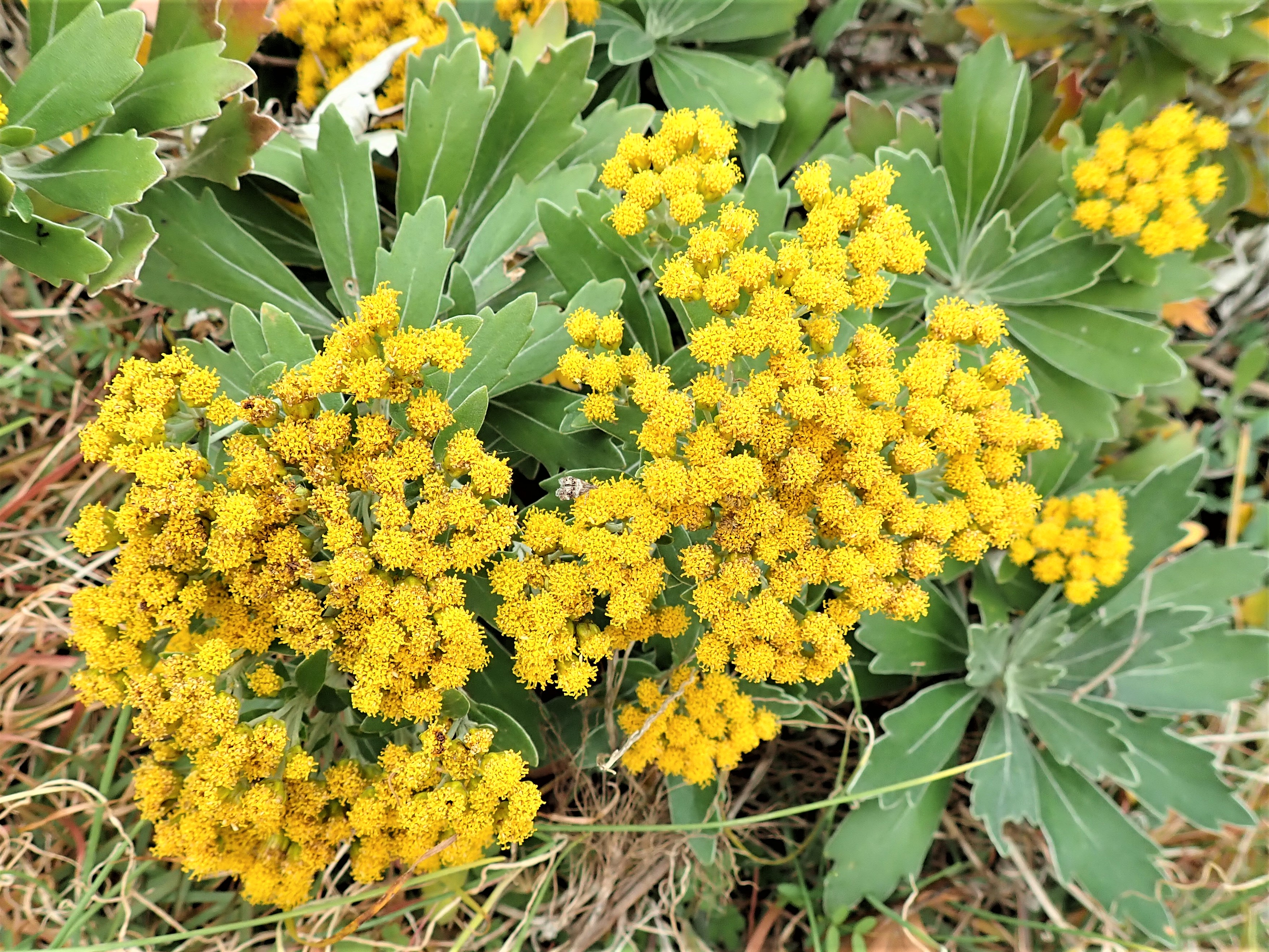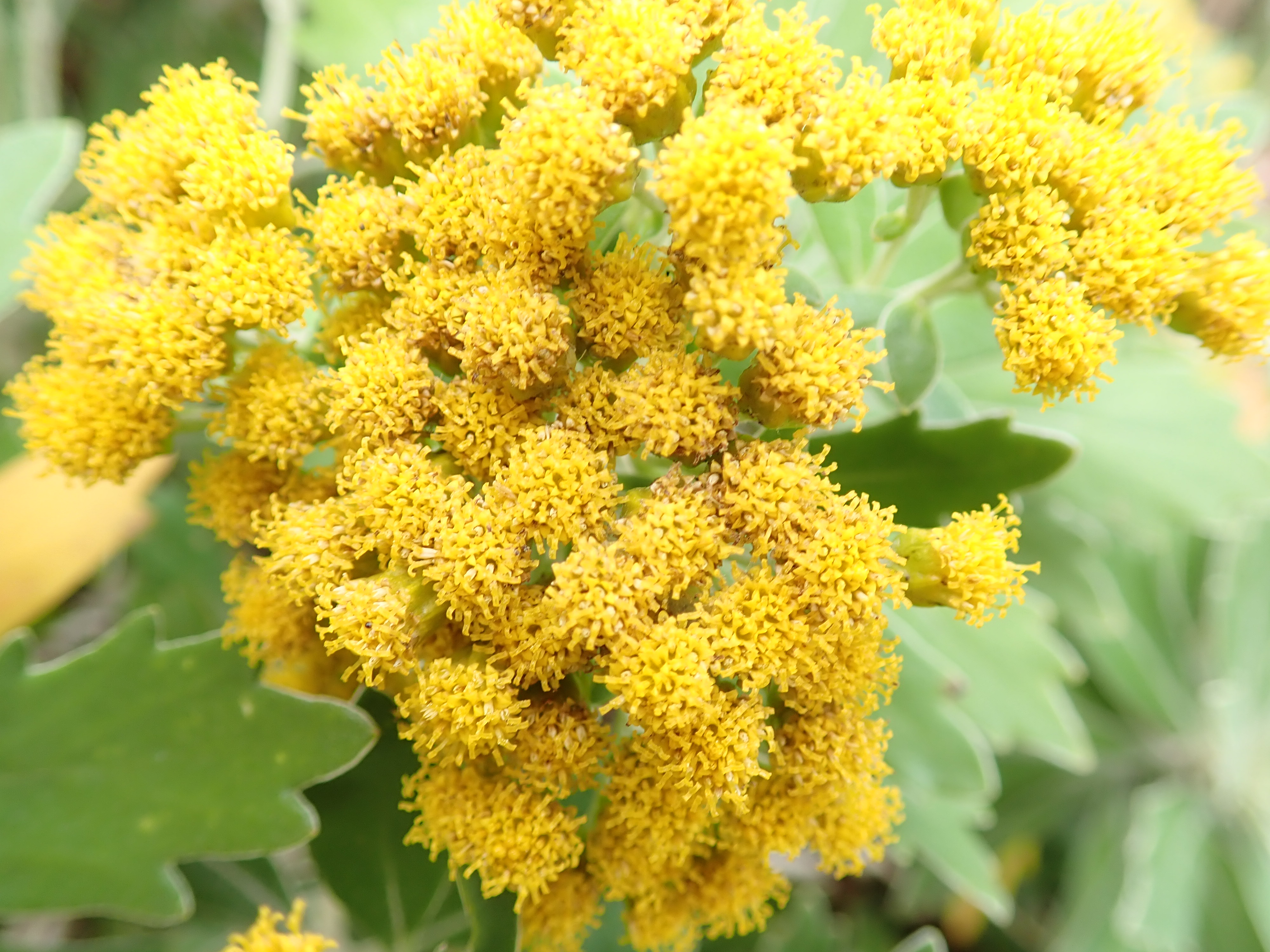 庭に植えられて、普通のキクと交雑して、舌状花のあるものが咲いたりする現象が多く報告されるようになっています。“ハナイソギク(花磯菊)”という名前で呼ばれています。