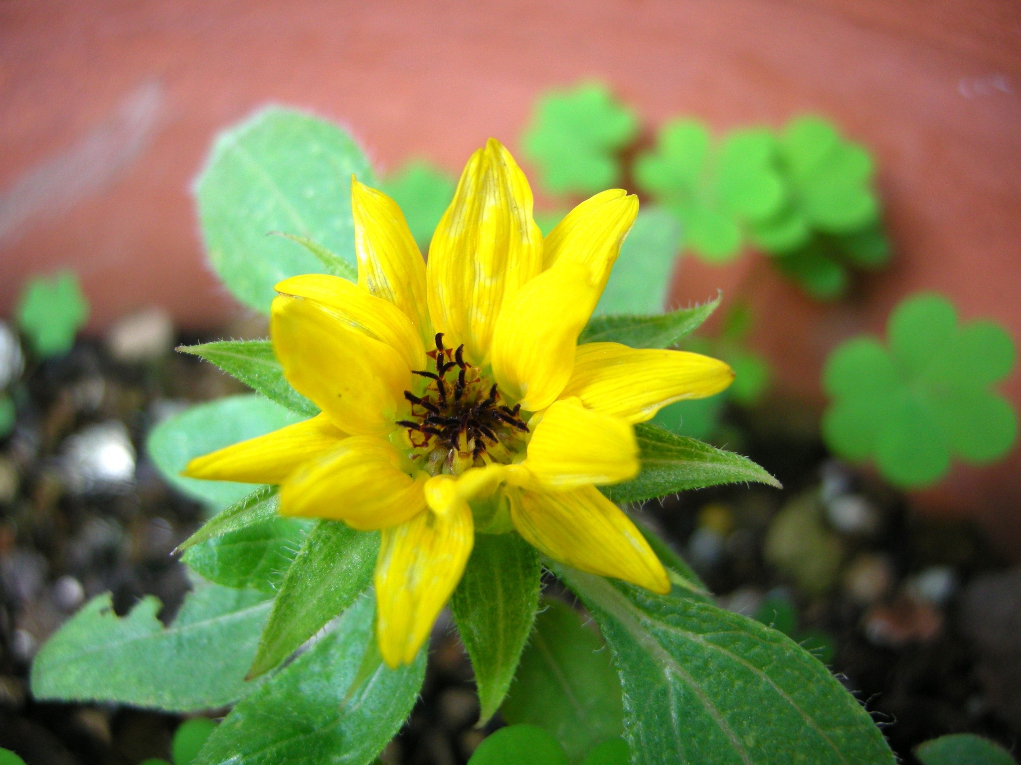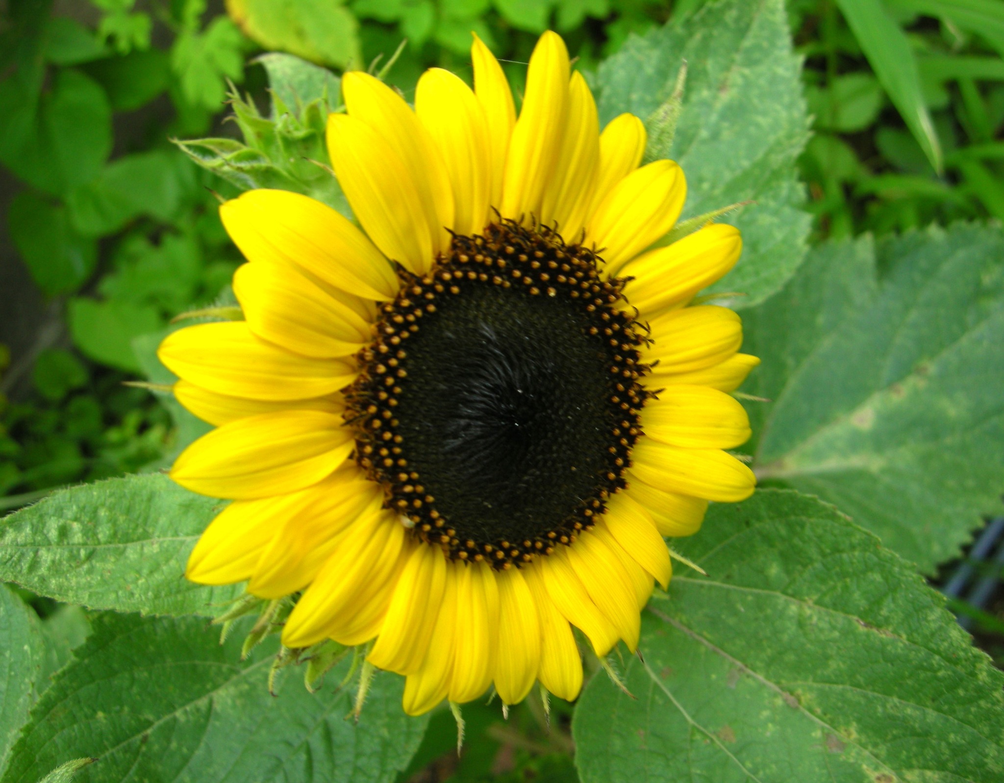 種子から発芽したヒマワリの若い葉は太陽を追うように葉の向きを変えます。