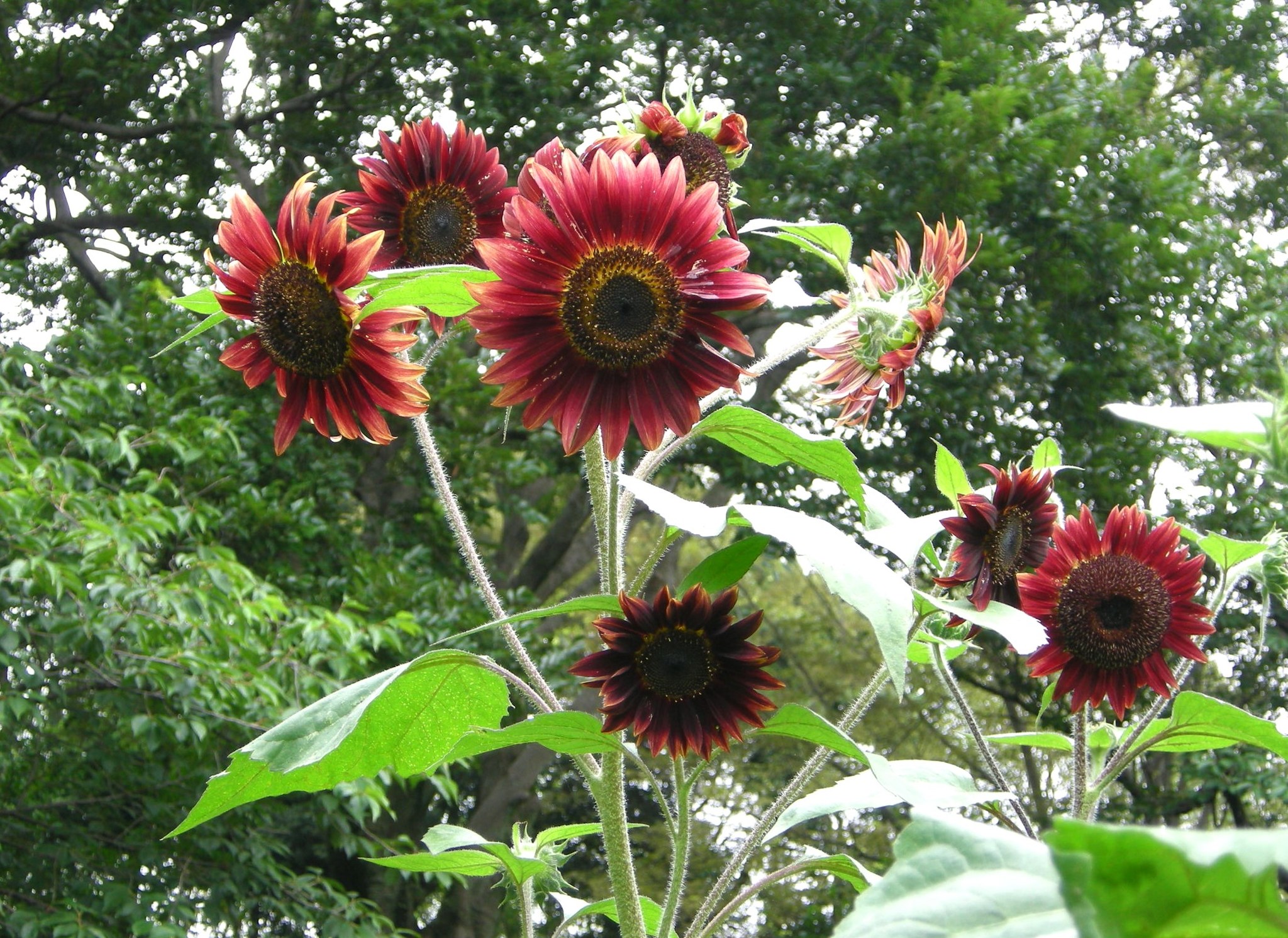 近年は矮性のものや、チョコレート色のものなど、いろいろなヒマワリが楽しまれています。