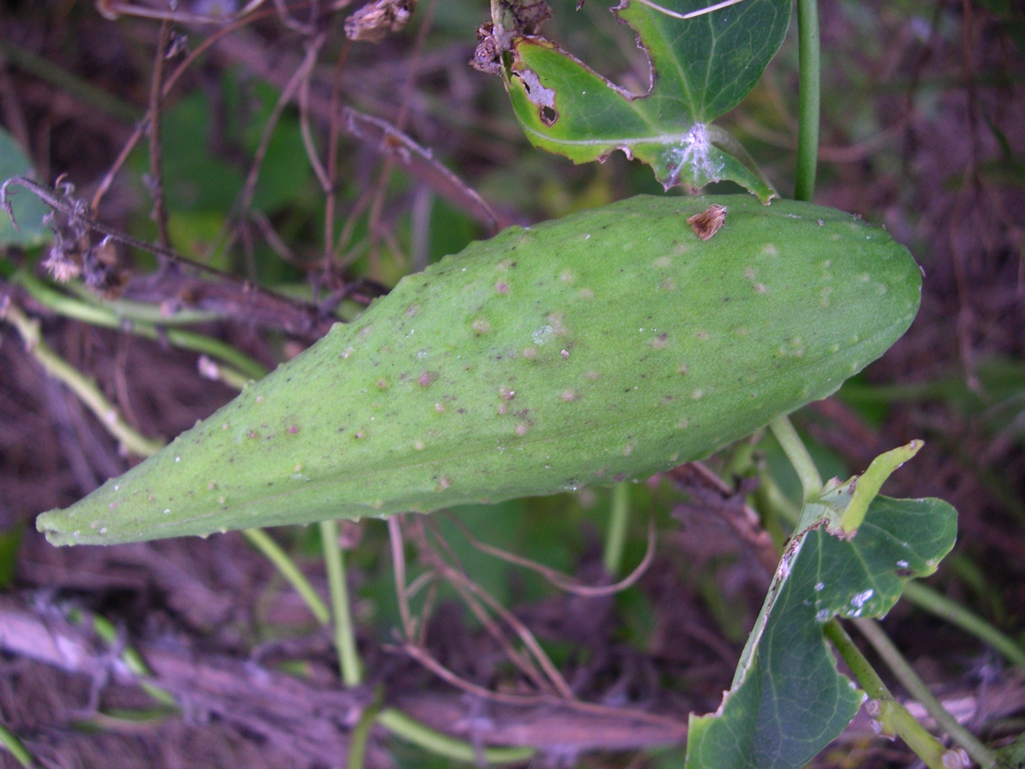 ガガイモは古名を加々美(かがみ)と言い、古事記には大国主命に協力した小さい神様、少彦名神(すくなひのなのみこと)が「天之蘿摩船(あめのかがみぶね)」に乗って海からやってきたという場面があります。熟した果実が裂けた姿は舟の形に見えます。