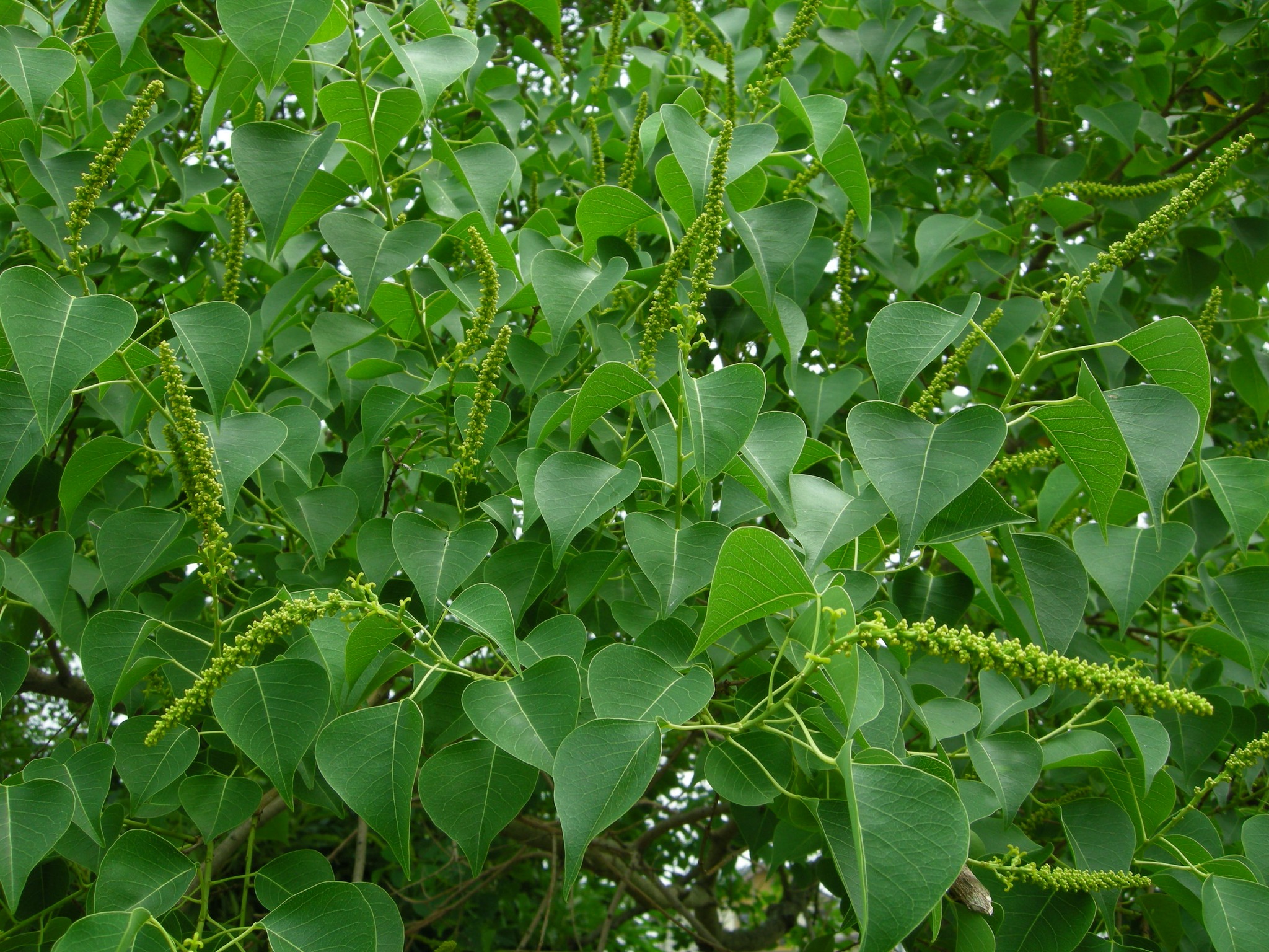 初夏に穂状に咲く花は、花穂の下の方に雌花、先端の方に雄花が咲き分けます。雄花だけの花穂もあります。