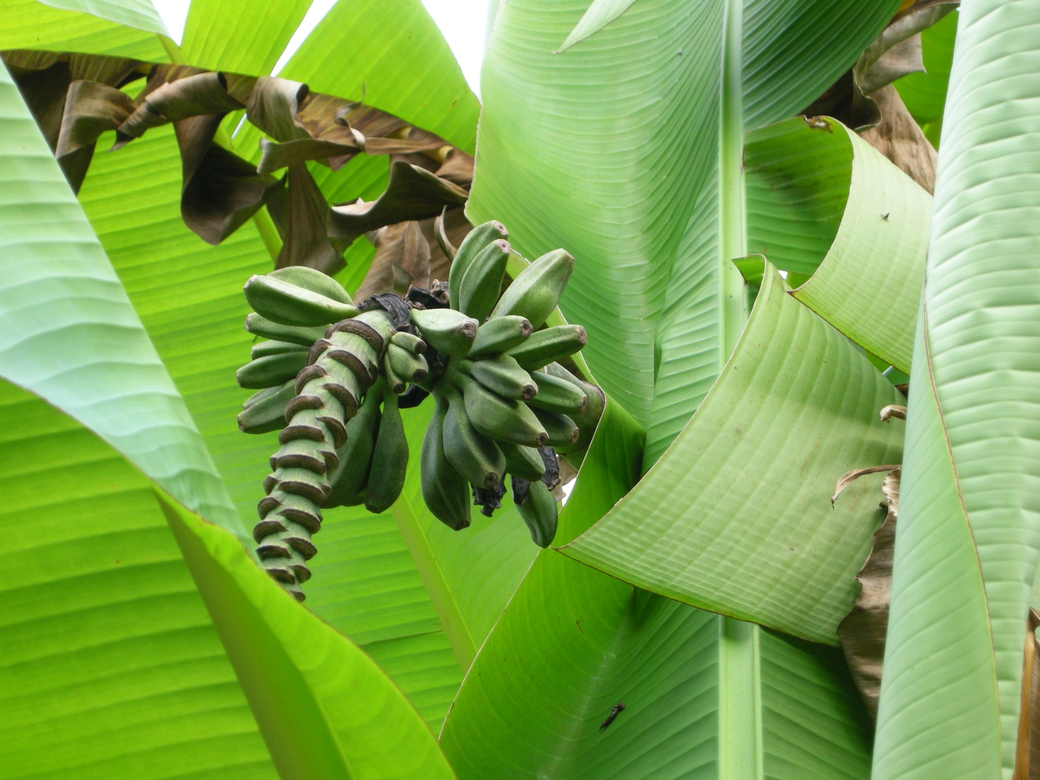 小さなバナナのような果実がなりますが、中に大きな種子があり、渋みも強く、食用にはなりません。