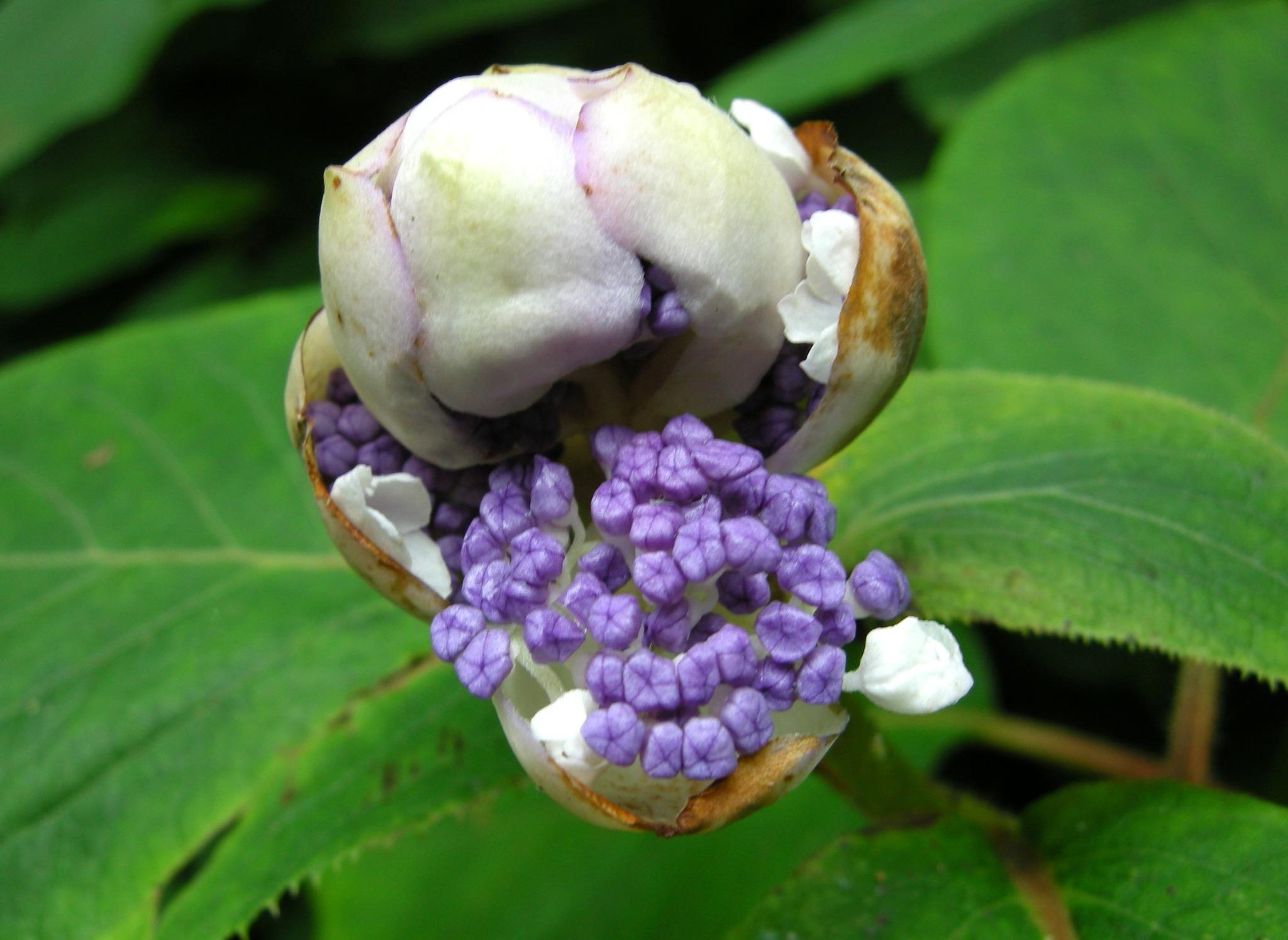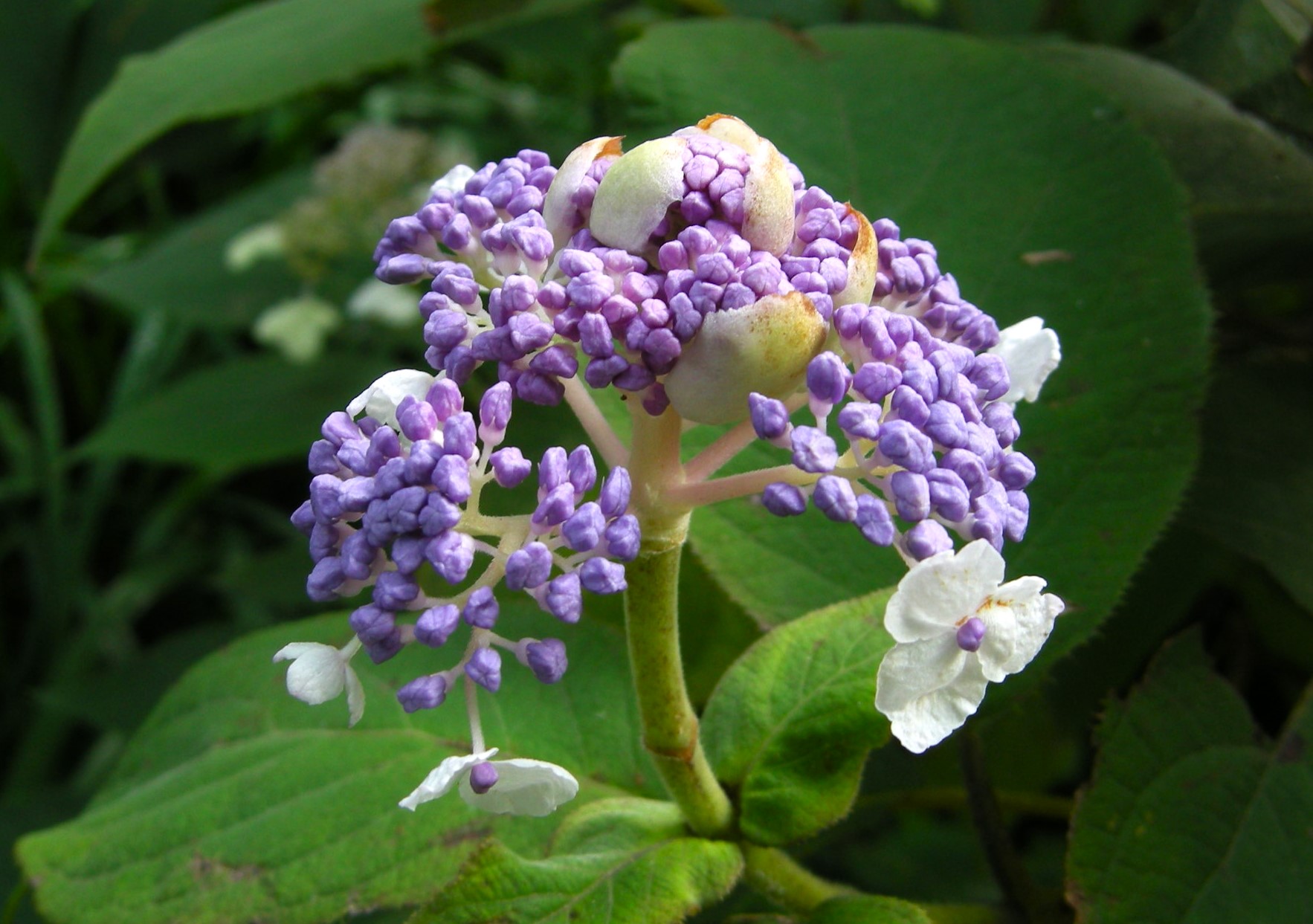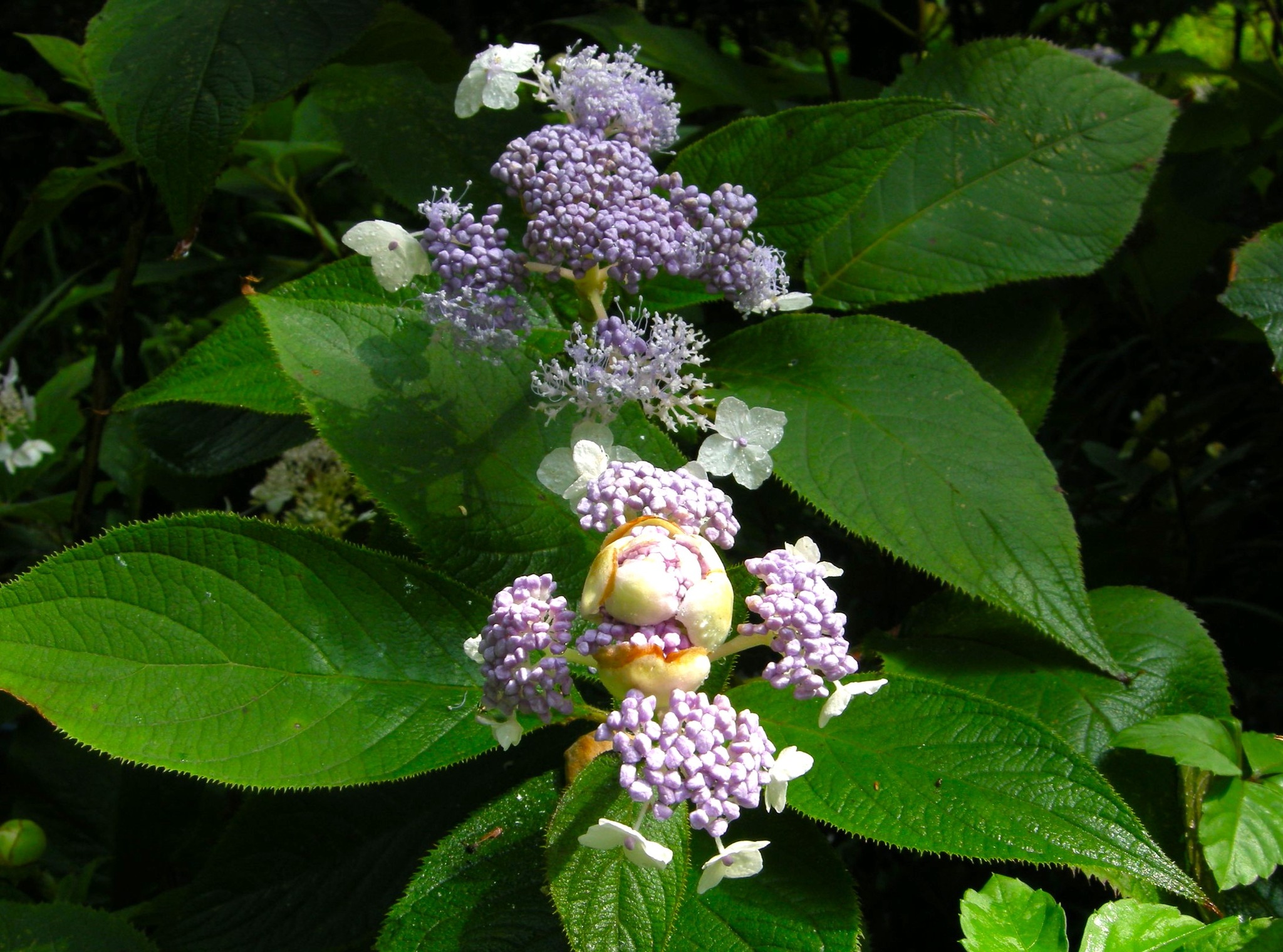日本在来のアジサイの仲間ですが、梅雨を象徴するように咲く一般のアジサイよりも一月以上後から咲き始めます。