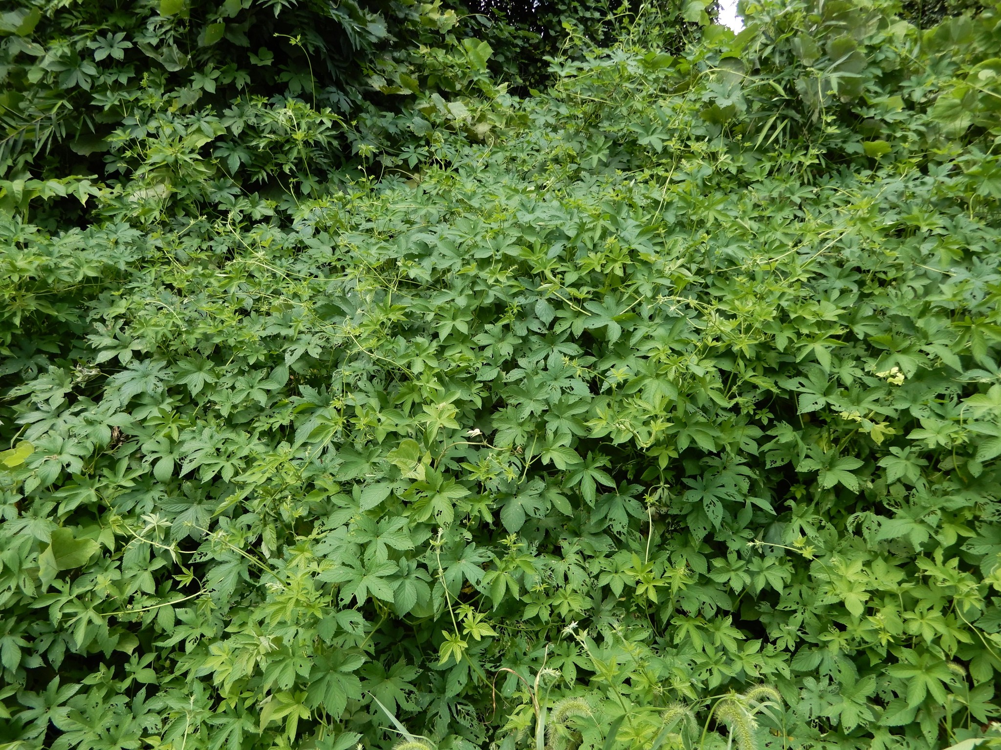 下向きの刺のある茎は、その刺を引っかけながら絡んで這い上り、一面を覆いつくします。草刈りの時には注意が必要です。