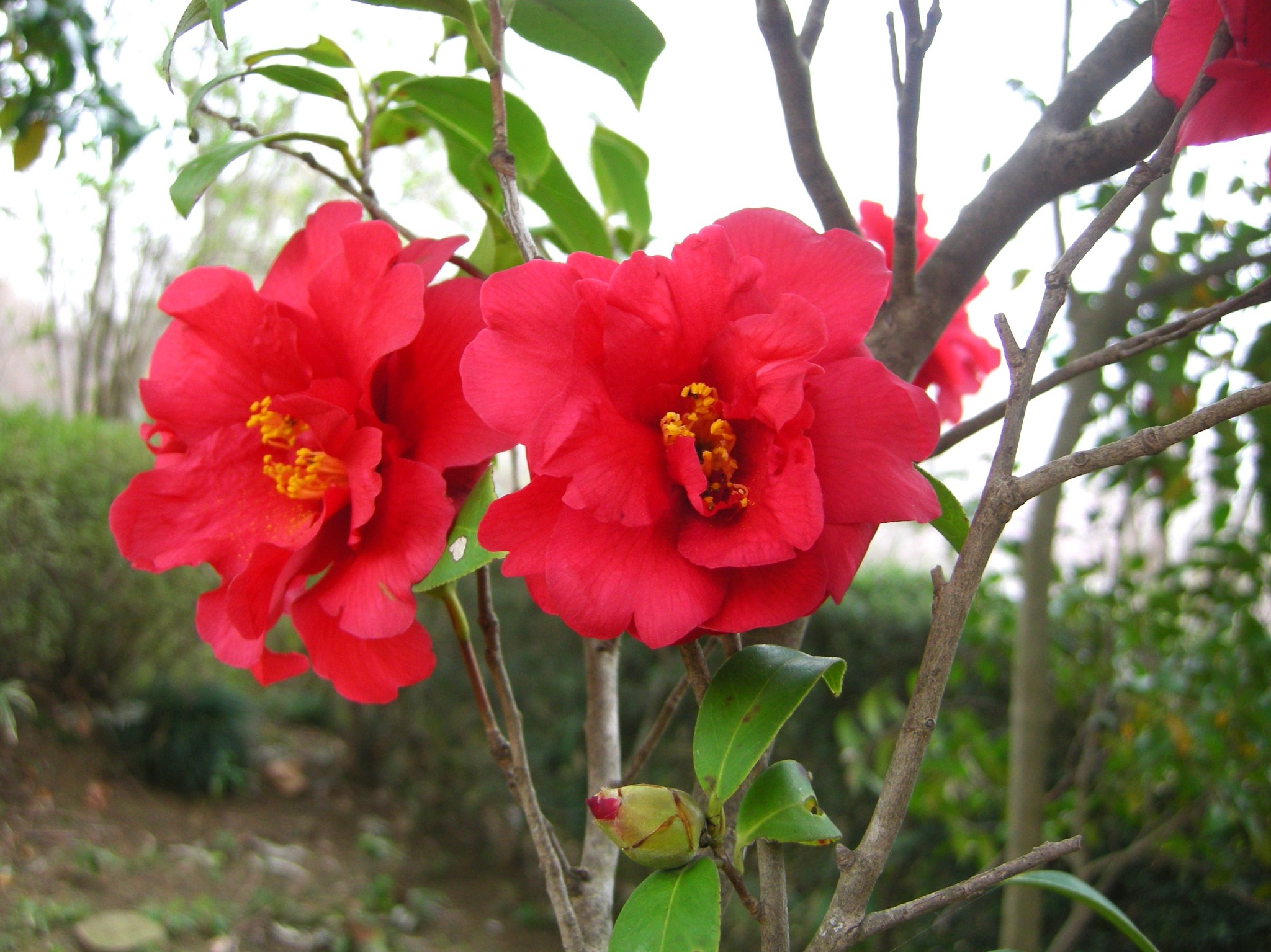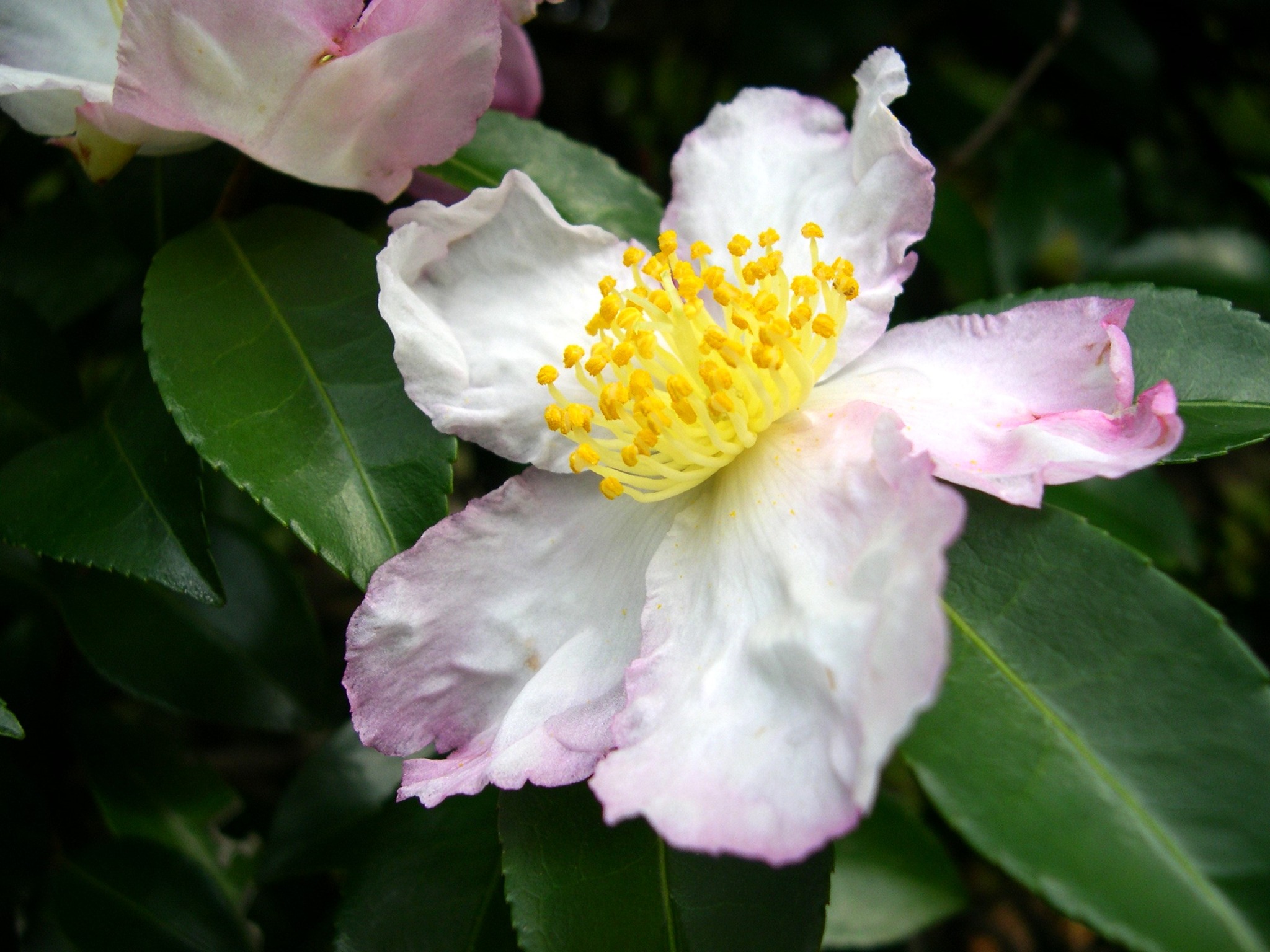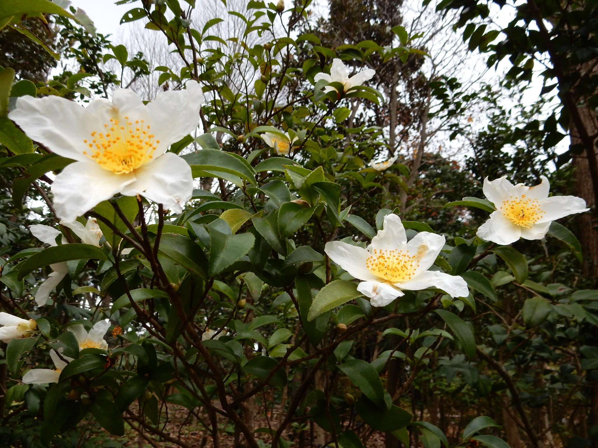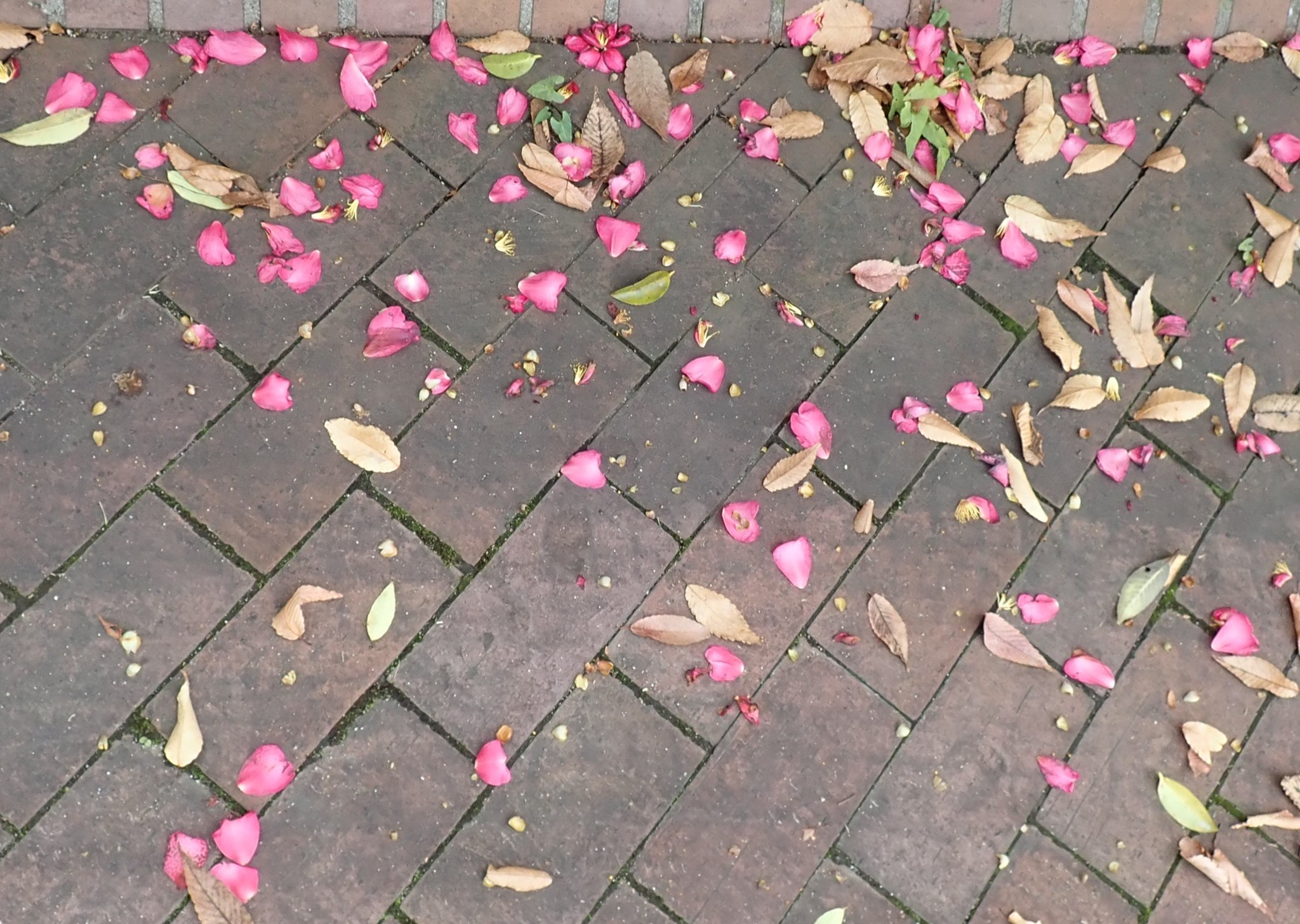 サザンカはツバキよりも耐寒性が弱く、多くはツバキに先がけて咲きます。また、ツバキは花がそのまま落ちますが、サザンカは花びらがバラバラになって落ちます。