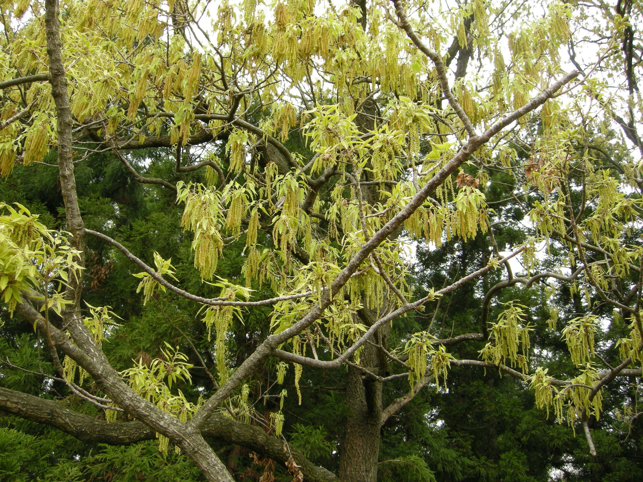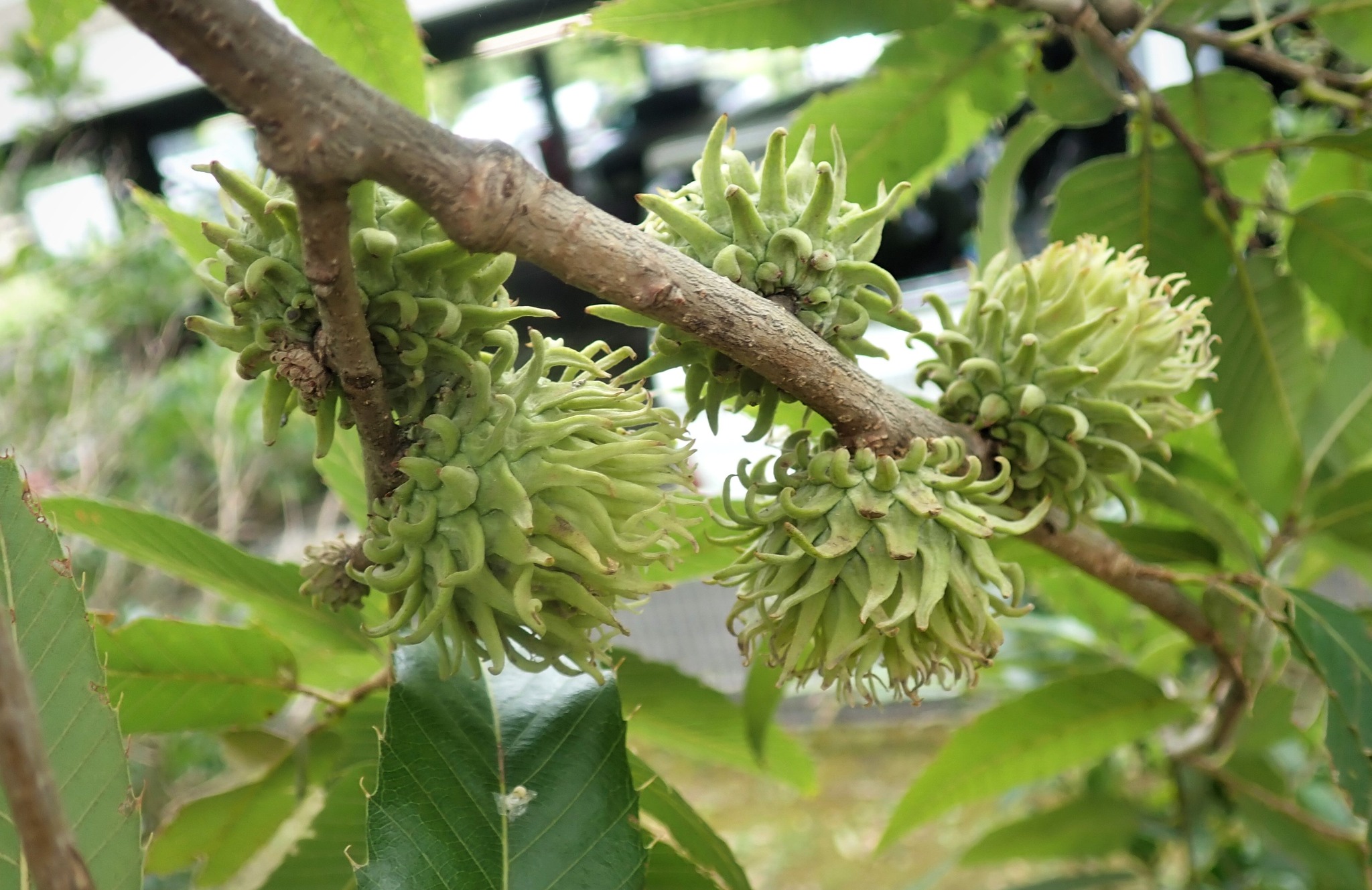 春、芽吹きと共に咲く花は雄花と雌花があります。受粉後、果実として熟すのに1年かかりますので、今年の春に咲いた花は、来年の秋にドングリになります。