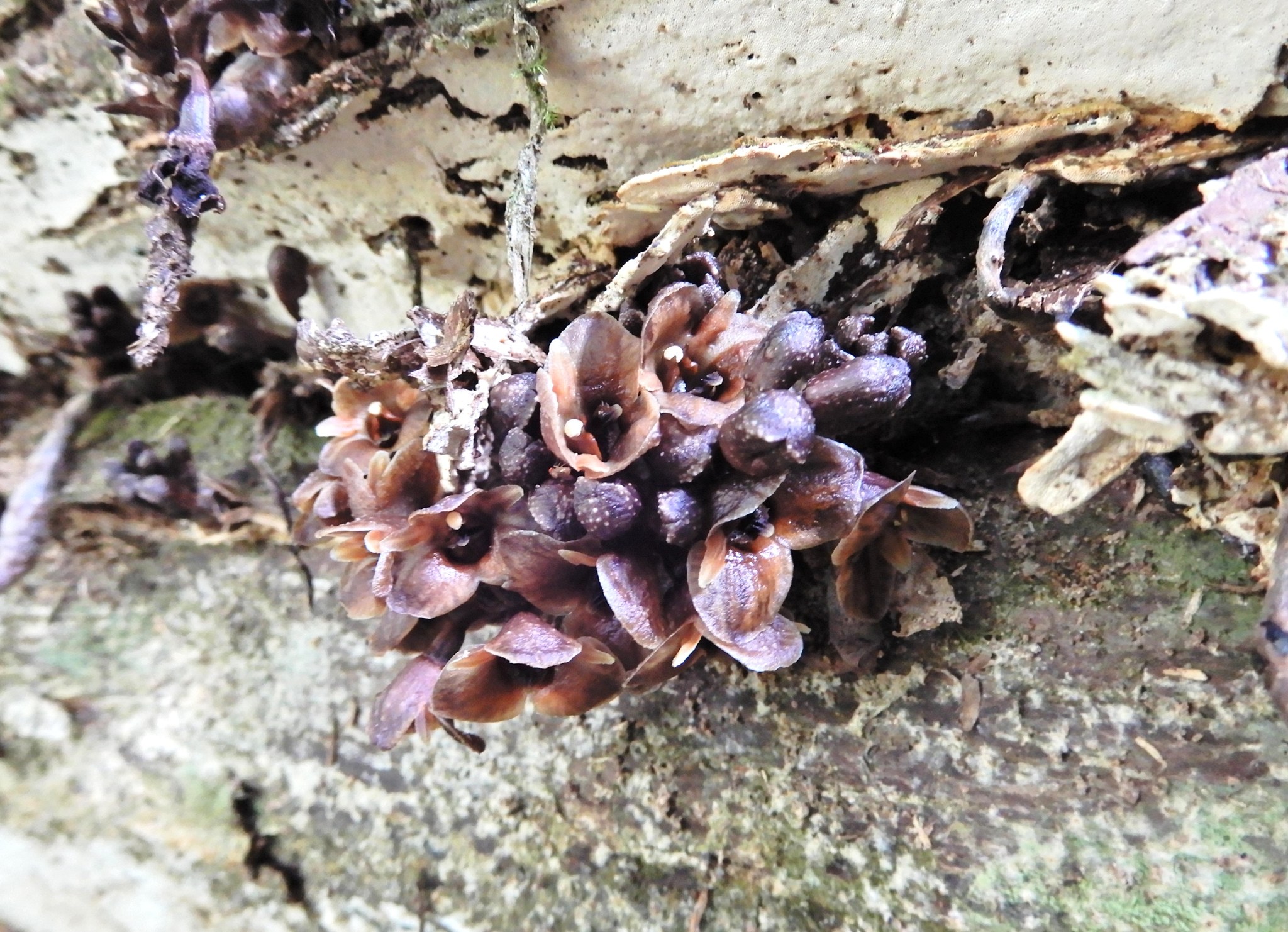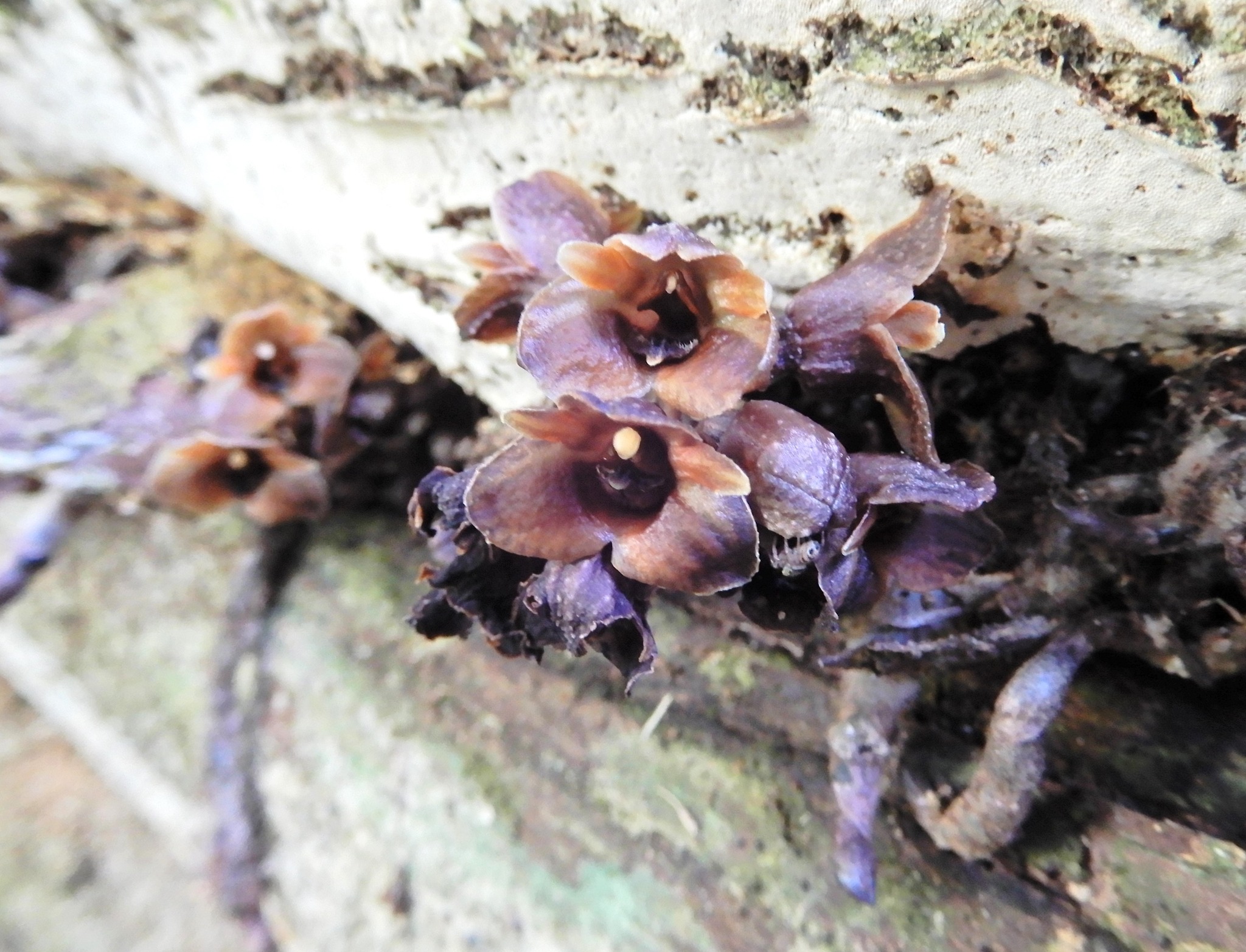 土中の菌類に栄養提供を受けて育ちます。花は腐臭を発散してショウジョウバエなどの虫を呼び、花粉を運ばせているという報告があります。