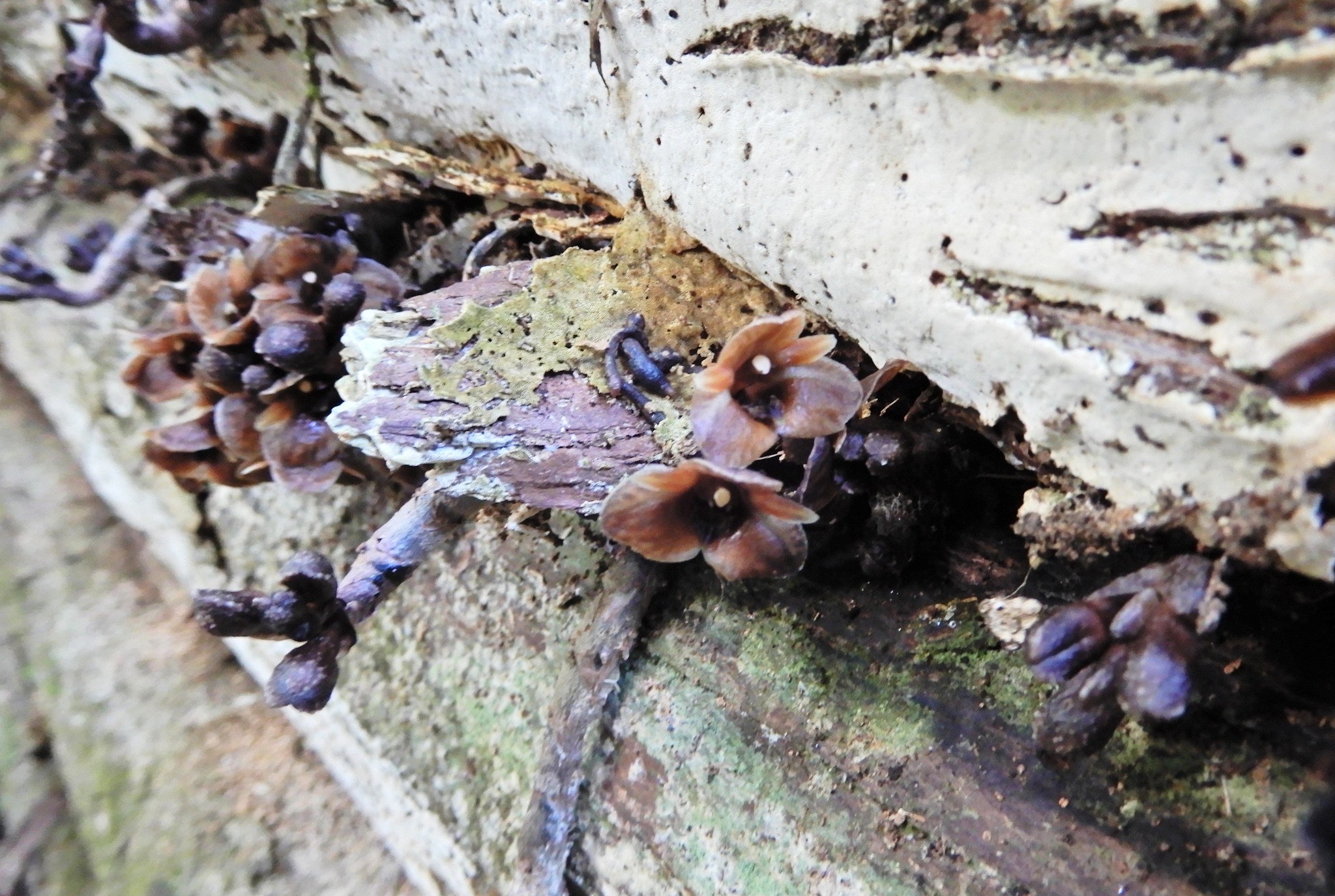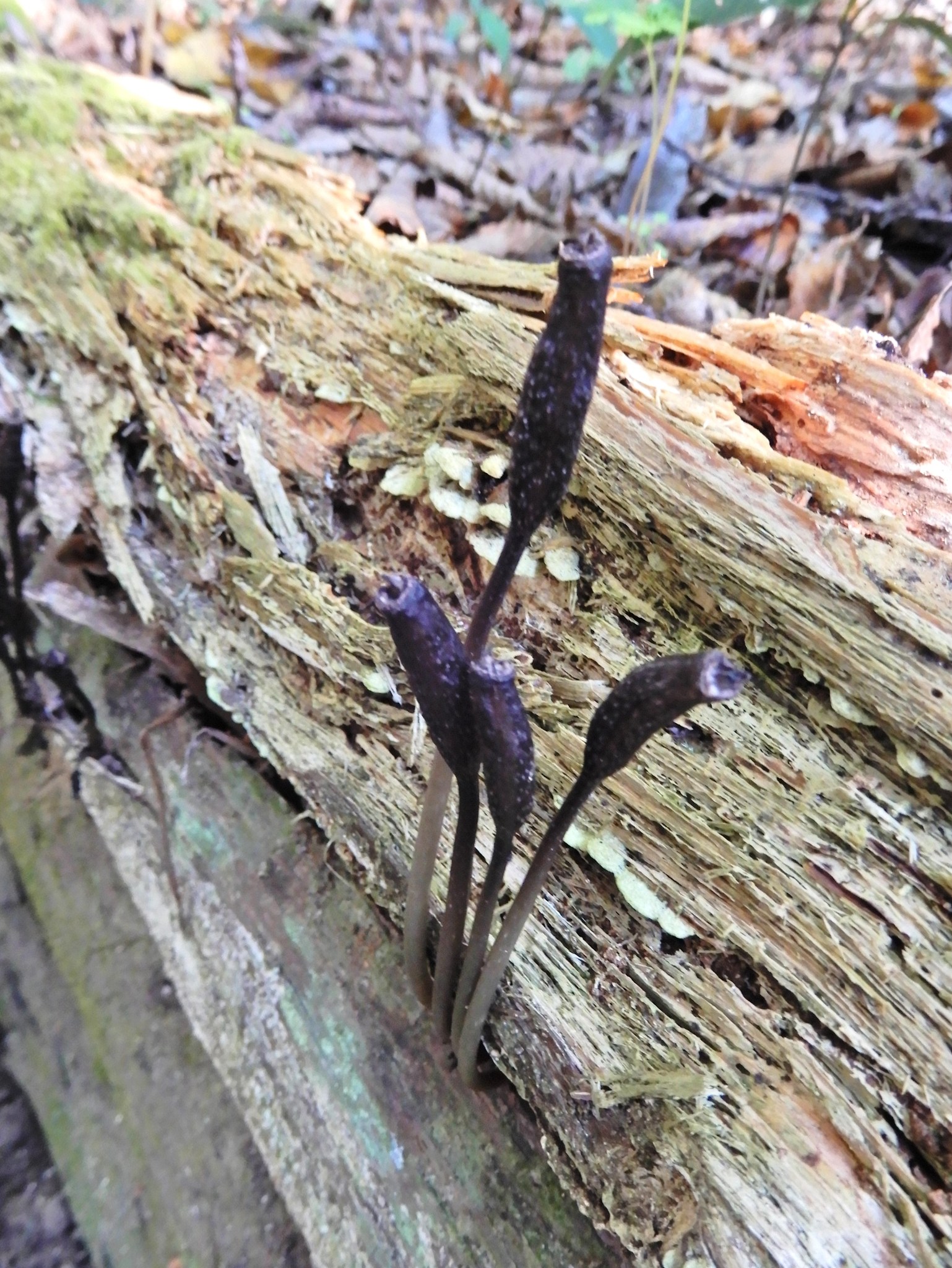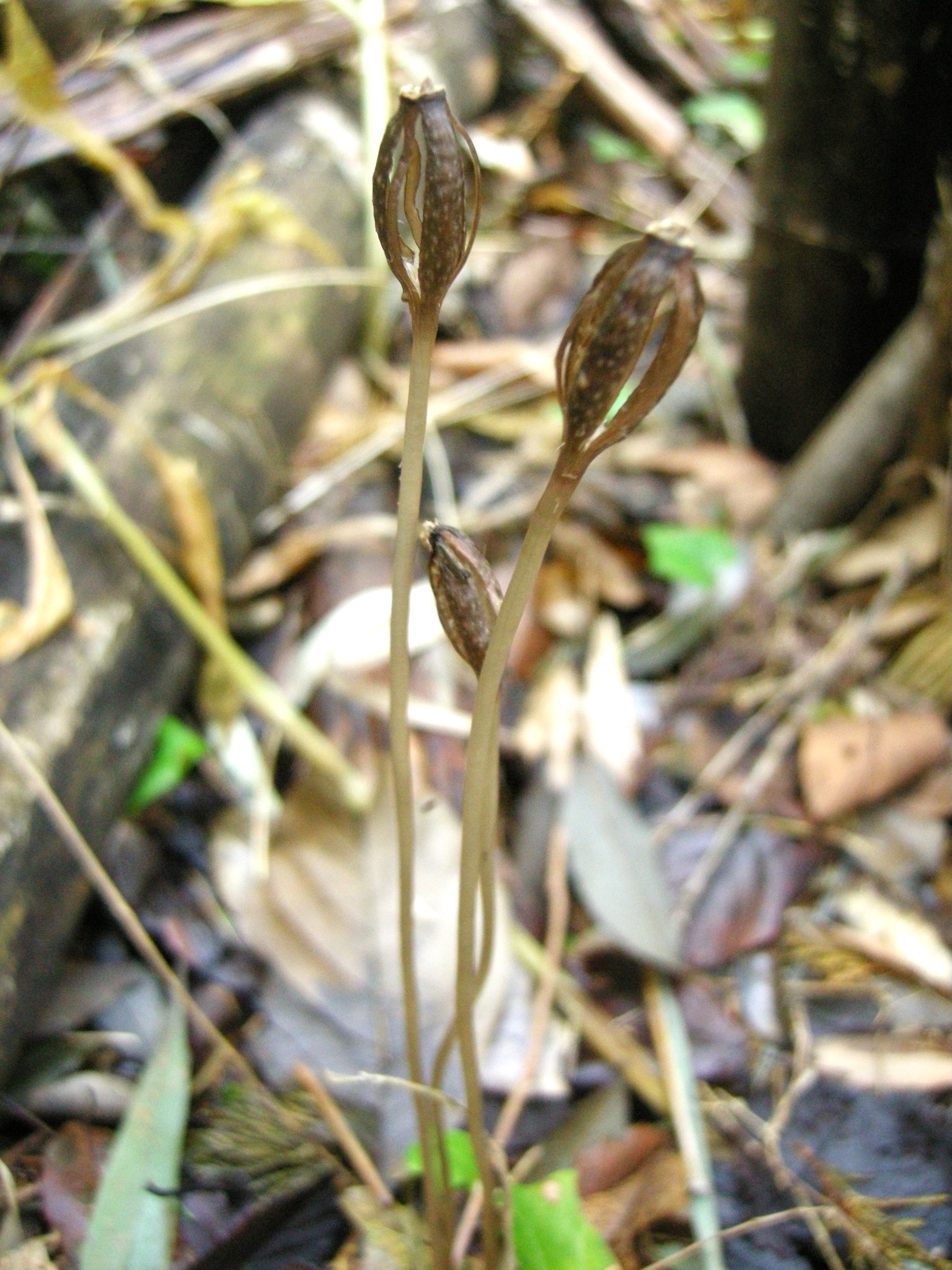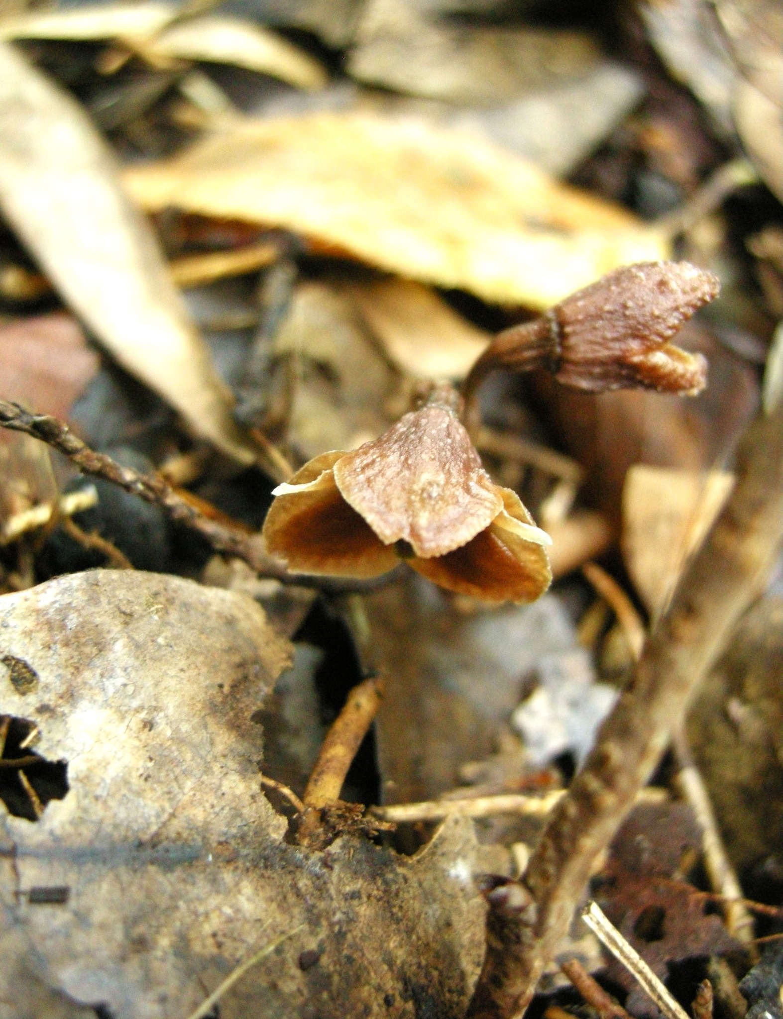 落枝、落葉の隙間から発芽し、草丈5㌢足らずで茶色い花を咲かせます。残暑厳しい9~10月に、地面に這いつくばるようにして探さないと出会えませんので、発見が遅くなったということも納得でしょうか。