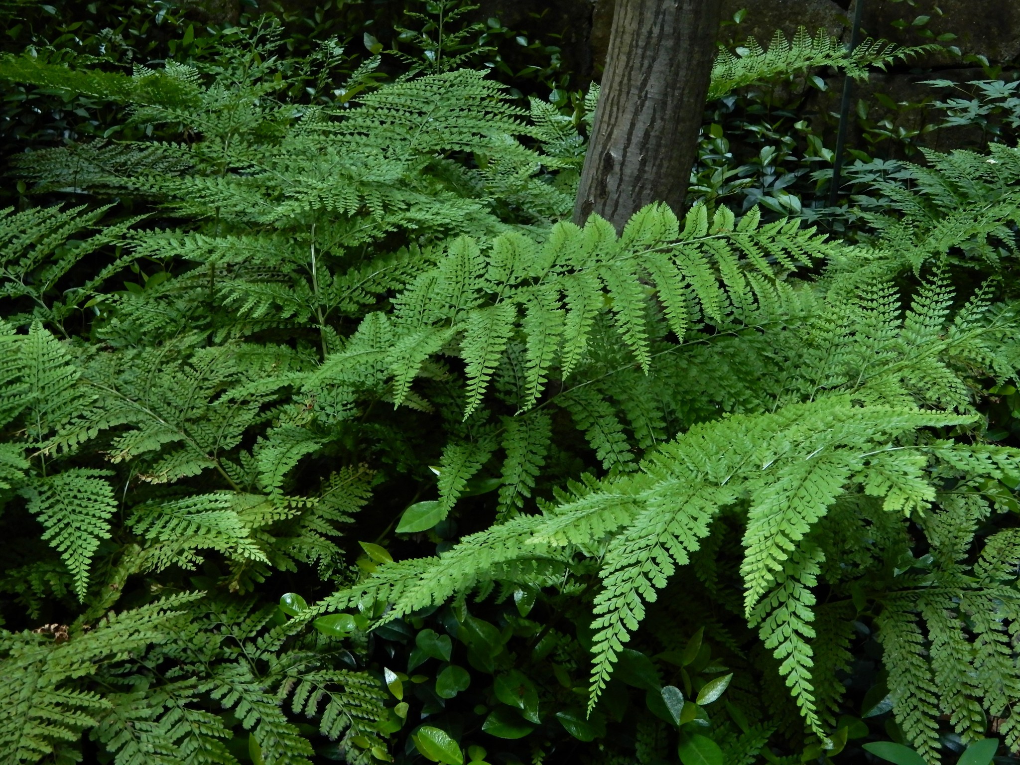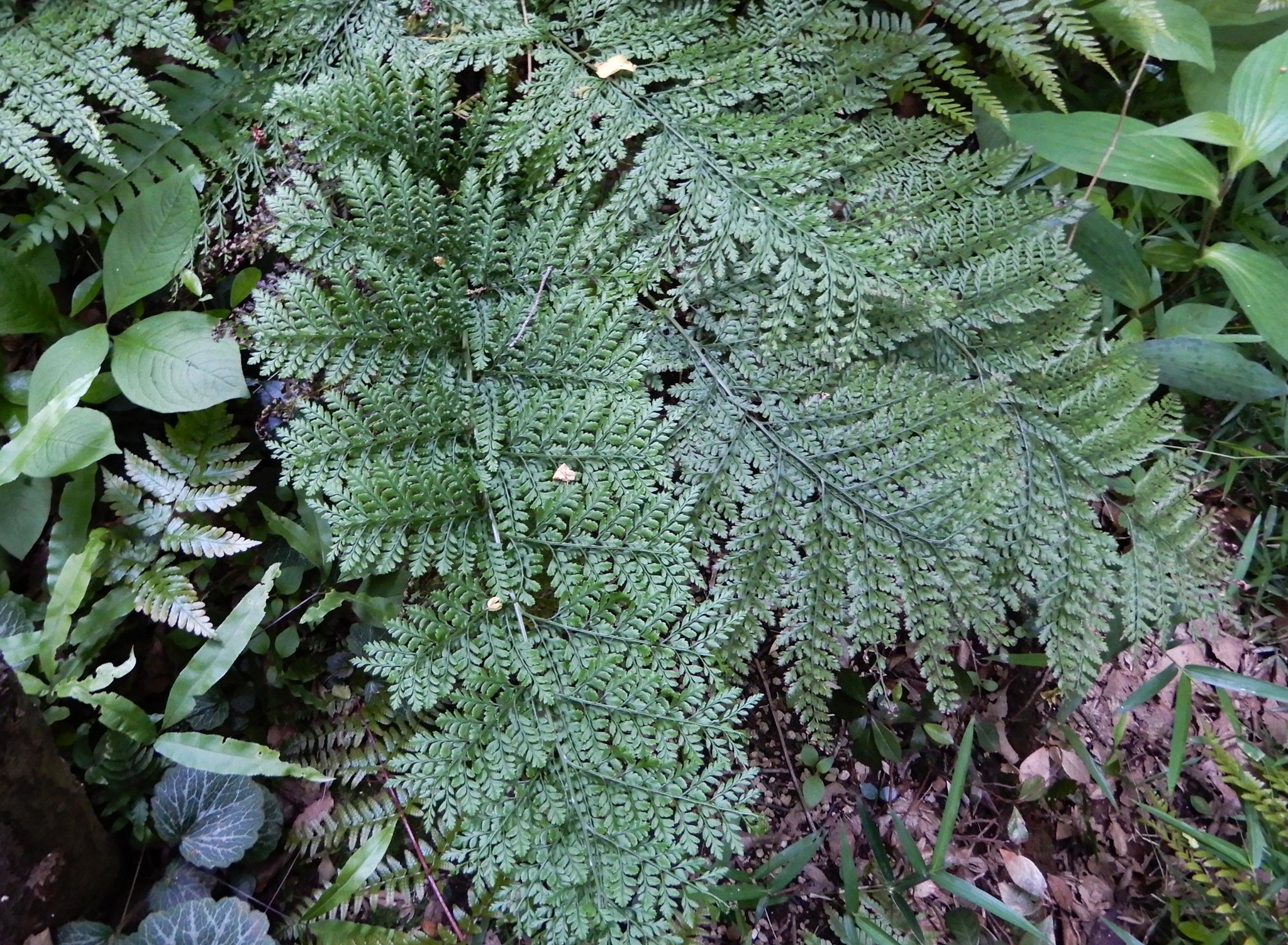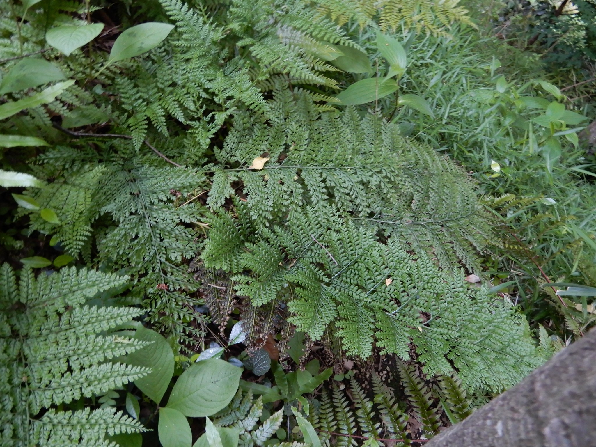 大きいものでは葉が1㍍にもなるものもある大型のシダですが、細かく切れ込んだ葉は裏から見ても表から見ても同じように見えます。「リョウメンシダ(両面羊歯)」と呼ばれる所以です。