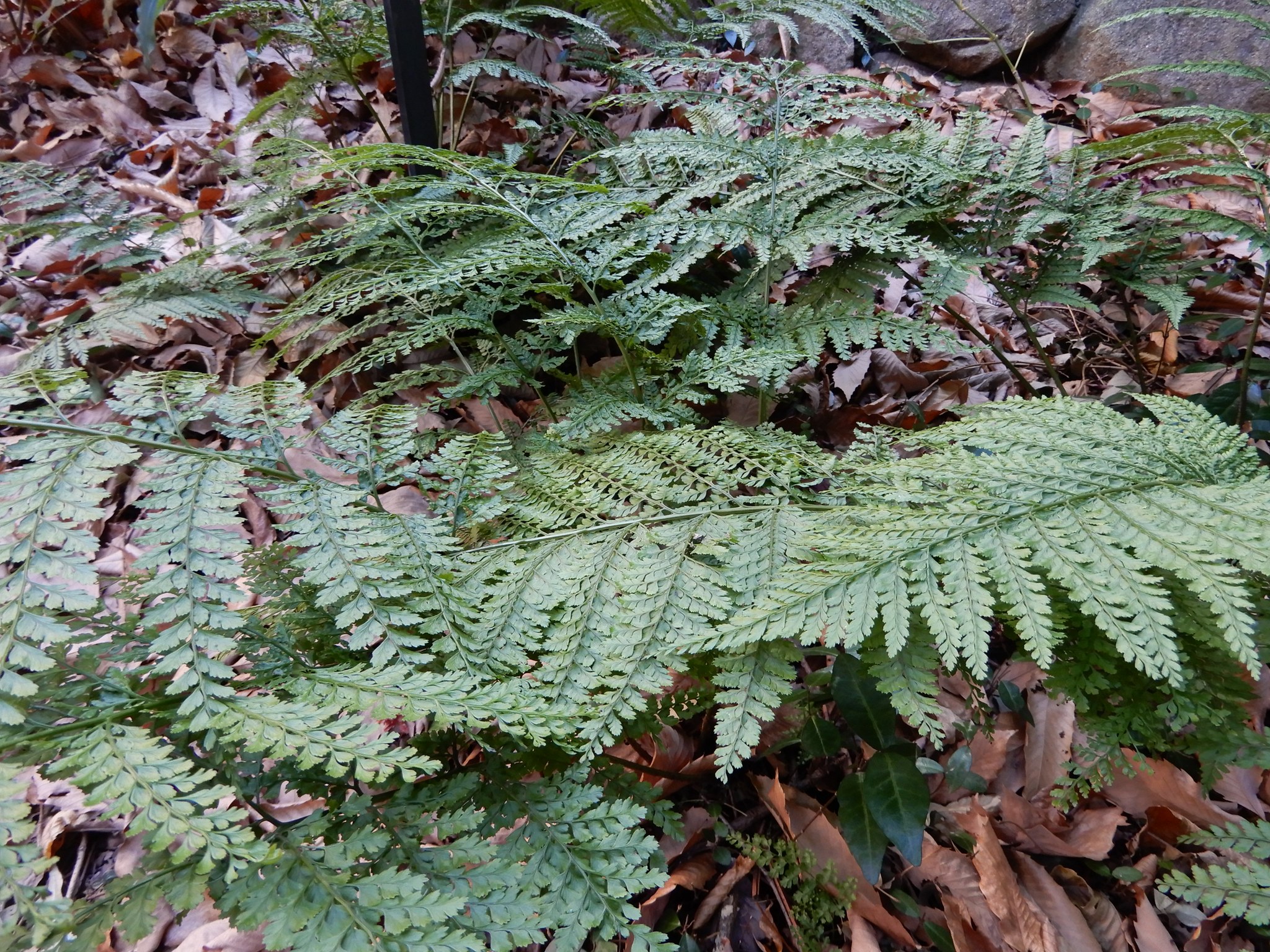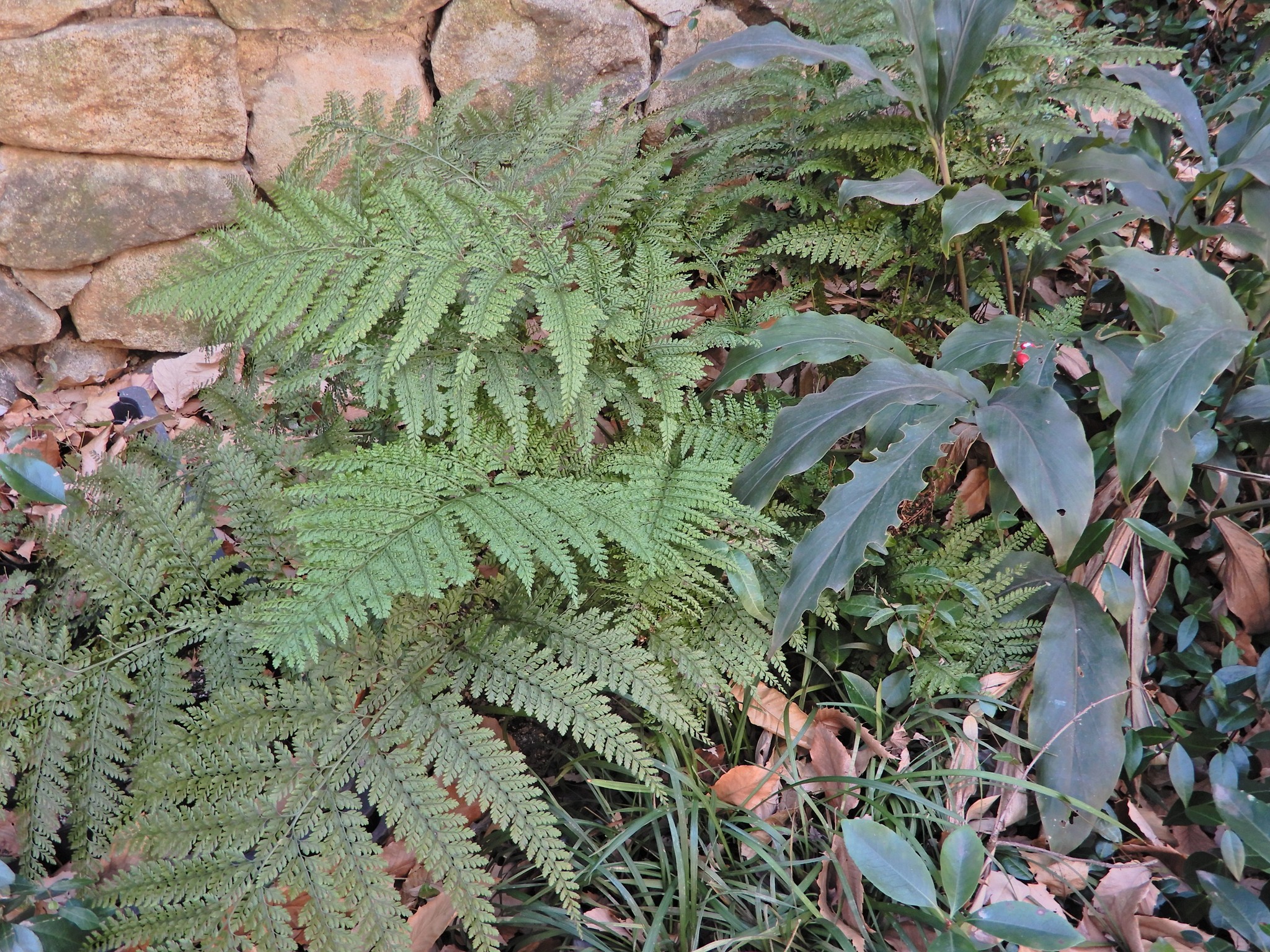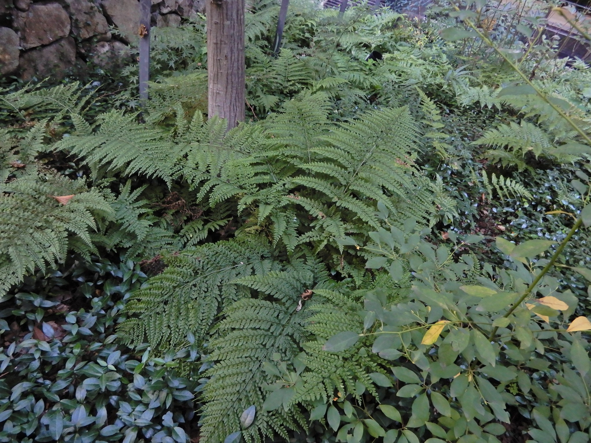 大きいものでは葉が1㍍にもなるものもある大型のシダですが、細かく切れ込んだ葉は裏から見ても表から見ても同じように見えます。「リョウメンシダ(両面羊歯)」と呼ばれる所以です。