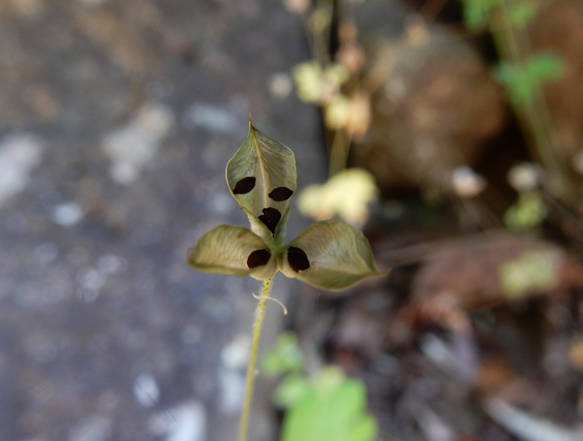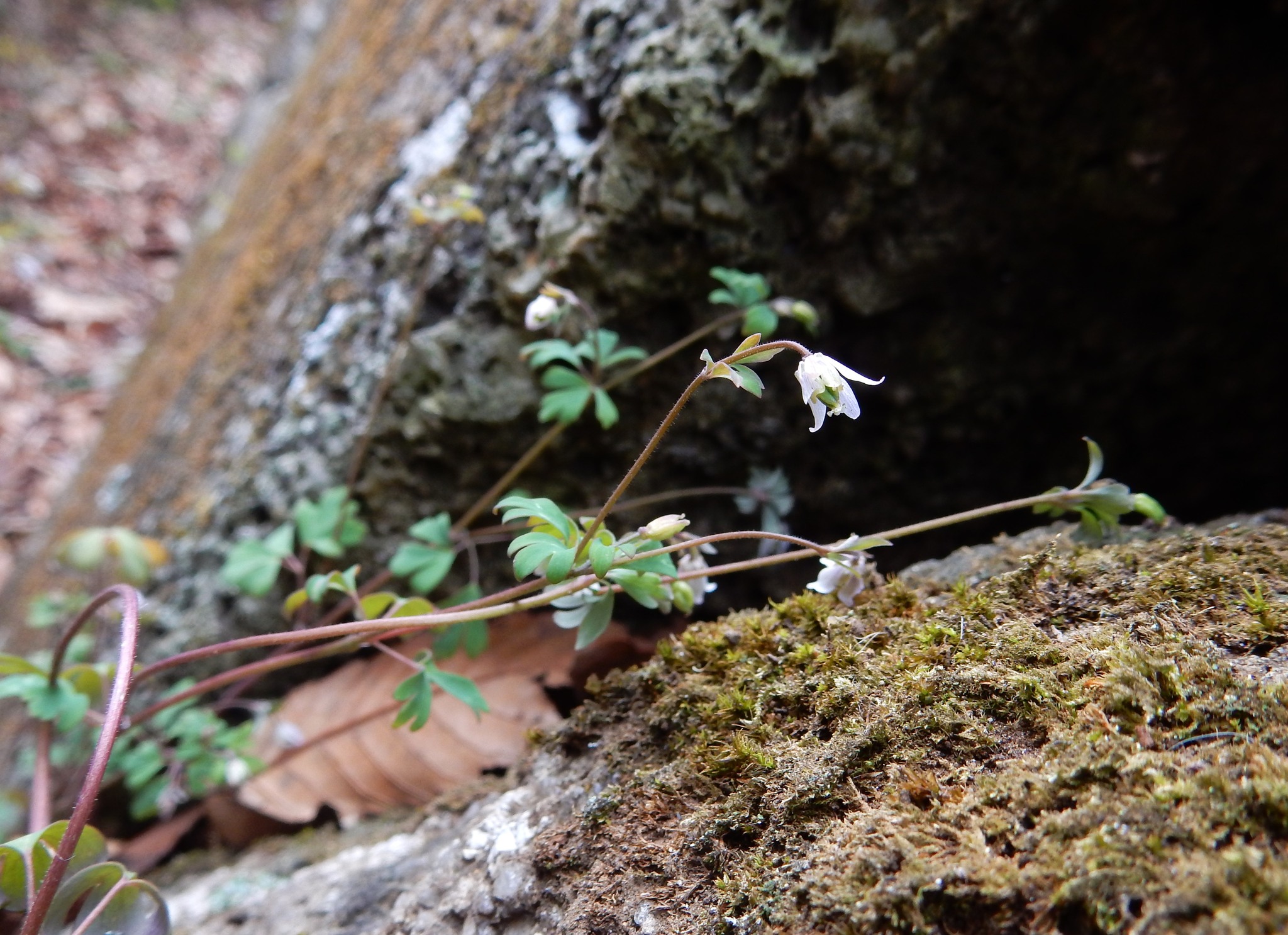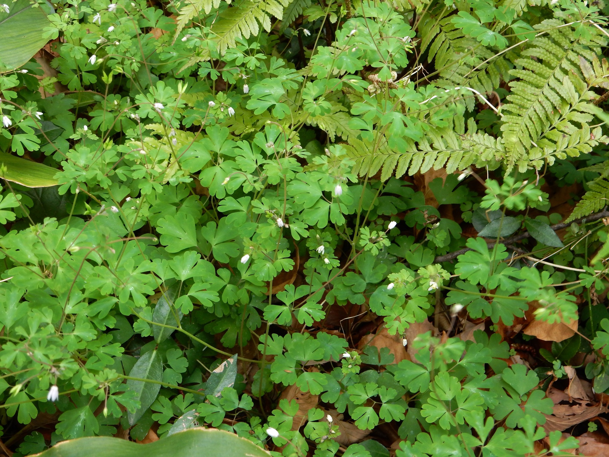 春早い時期から、細い茎を伸ばして繁茂します。5㍉ほどの白い花を、下に向いて咲かせますので、気づかないで通り過ぎる方も多いでしょう。ちょっと足を止めて、花を覗いてみて下さい。種子も0.7×1.2㍉と小さいのですが、裂開した果実に付く姿はちょっとユーモラスとおっしゃる方もあります。