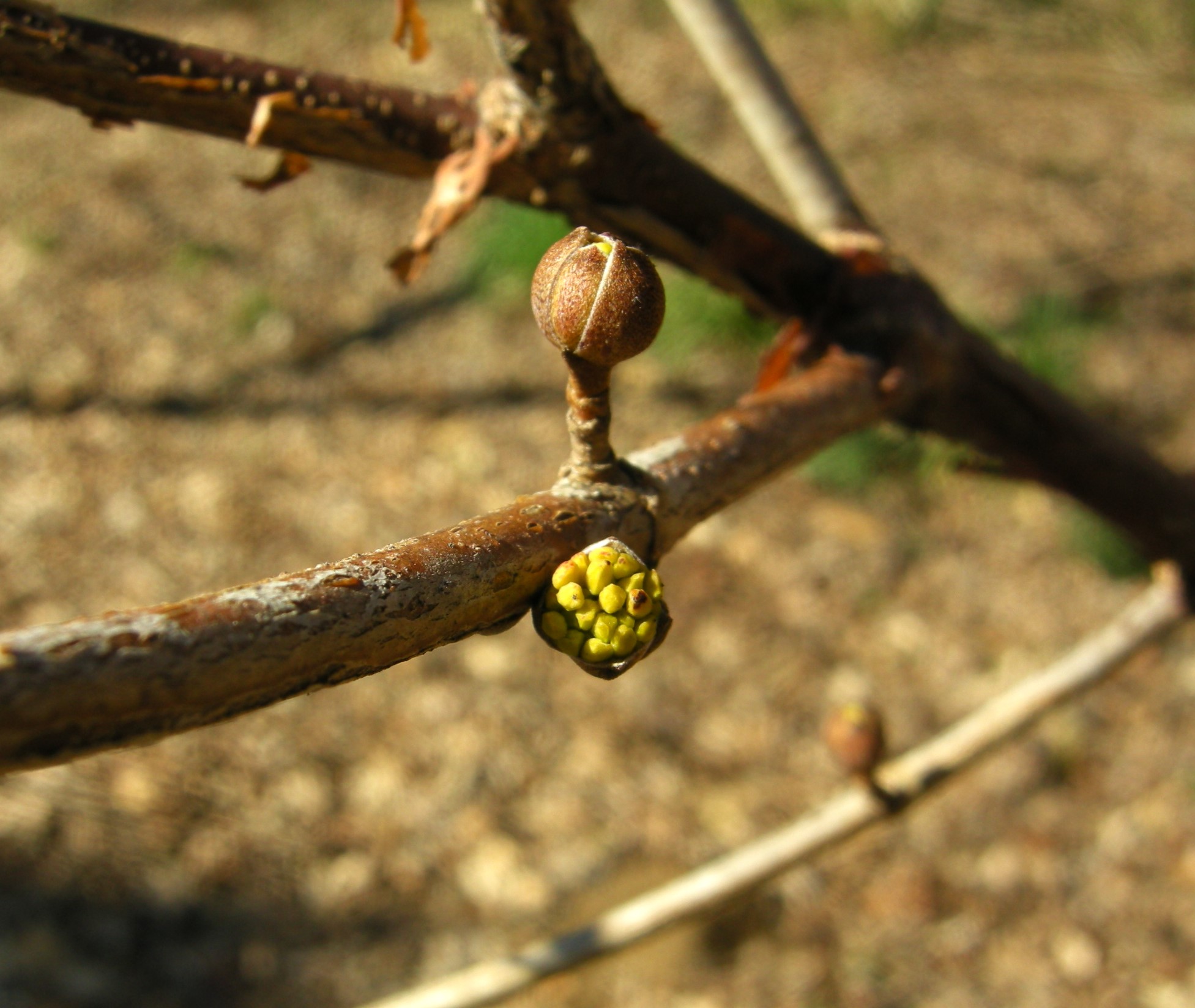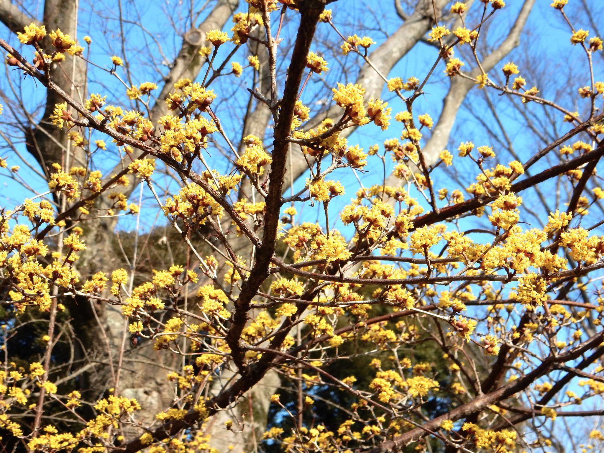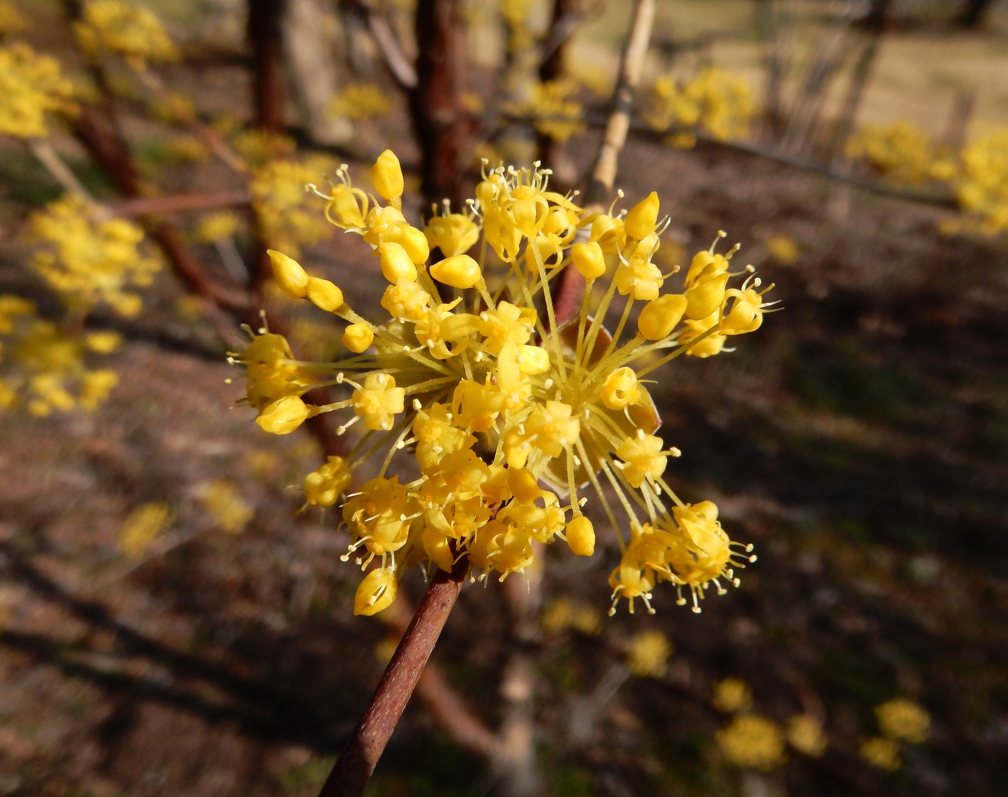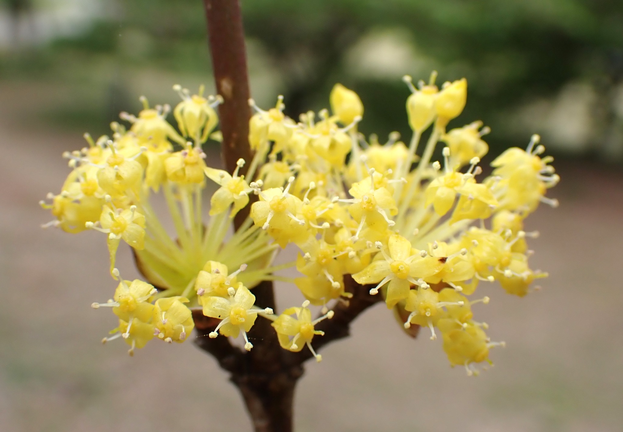 早春に、開葉に先がけて、黄色い花を咲かせます。一つの花は小さいのですが、30個近い花がボール状に集まって咲きます。