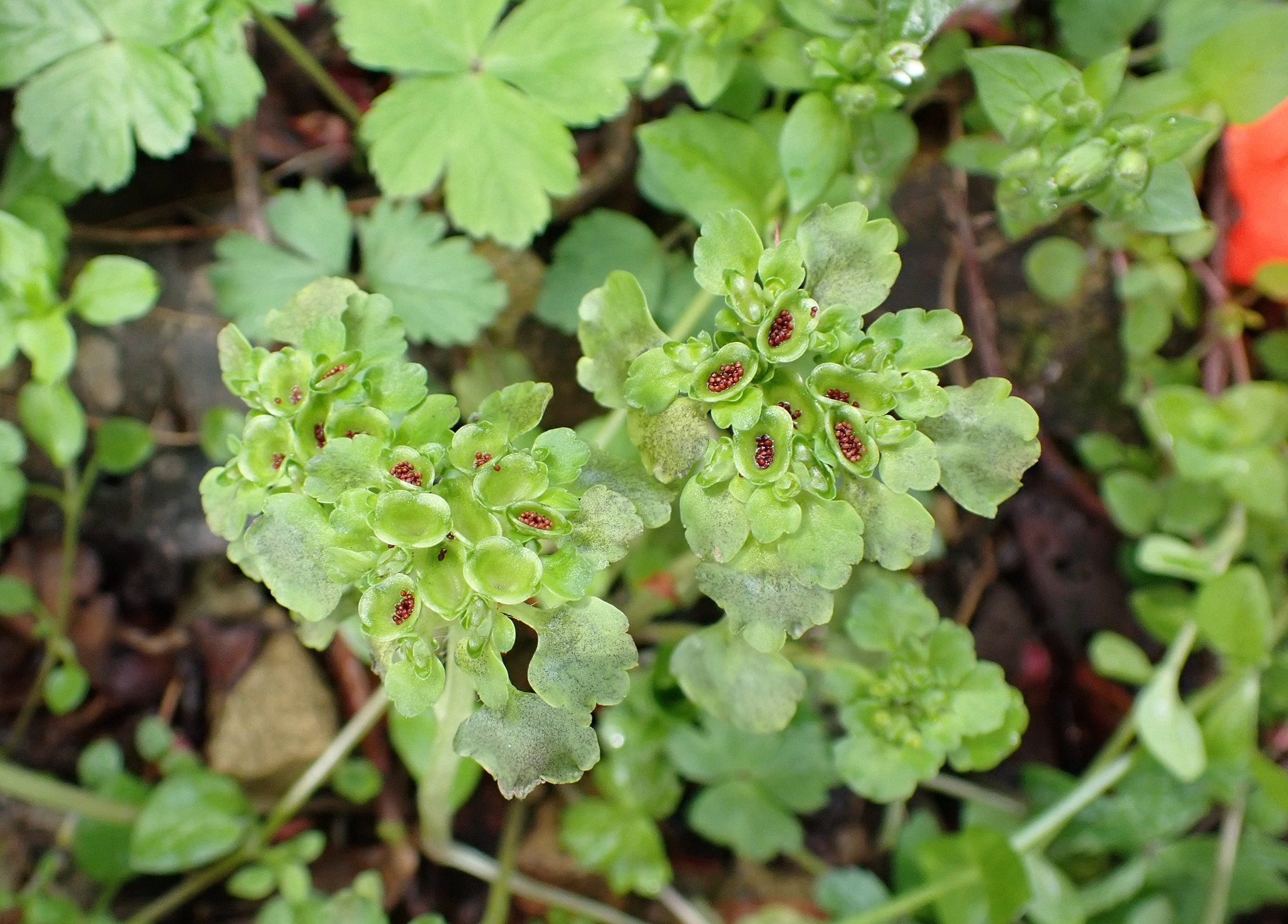 ネコノメソウの仲間は、地域、生育場所などによって、ハナネコノメソウ、ヨゴレネコノメソウなど、いろいろな種があります。同じ場所で数種類のネコノメソウの仲間が混在していたり、他の花と混在していたりすることもあります。