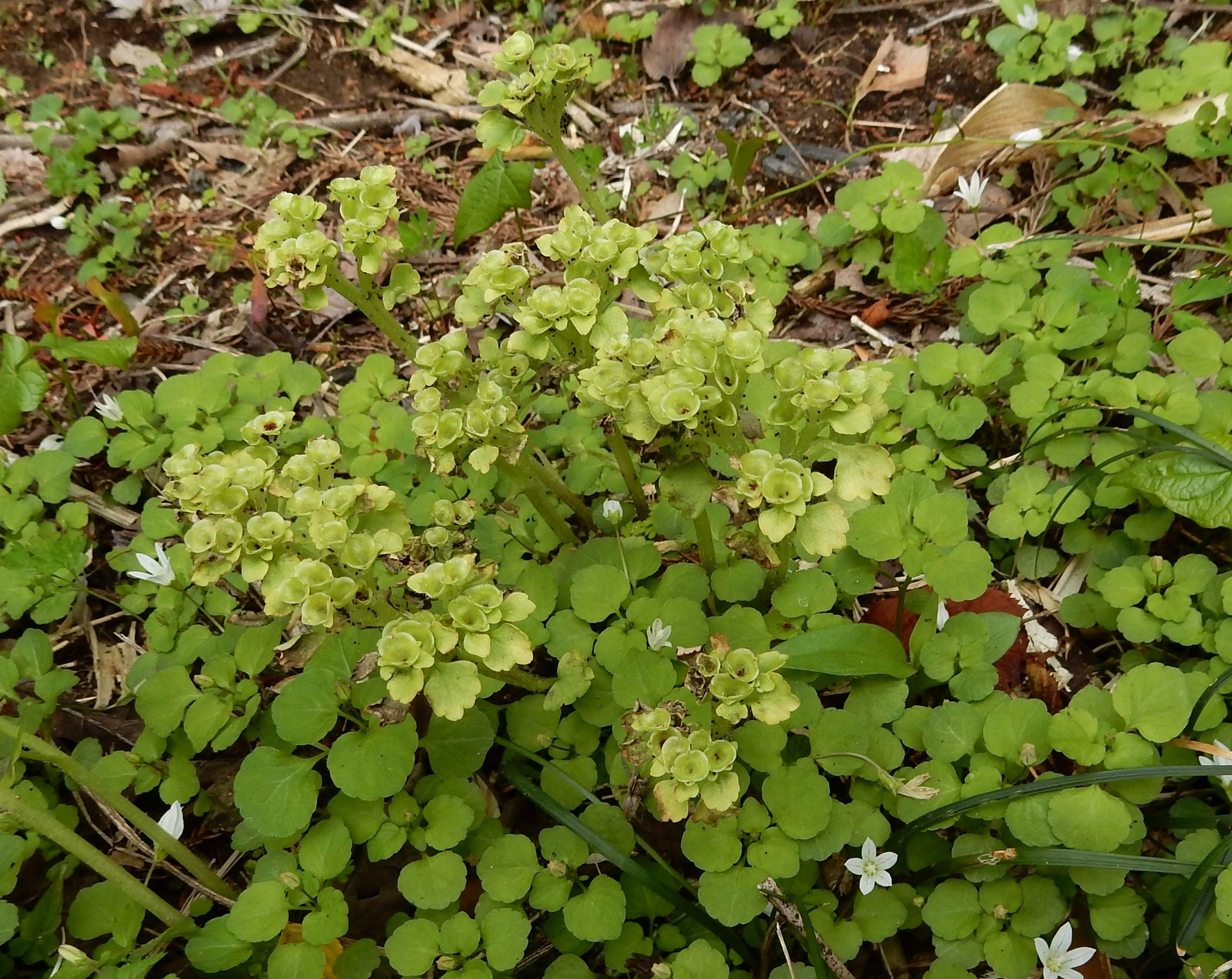 やや薄暗い場所で、草丈が高くはならず、地面に張り付くように生育するため、目立たないということでしょうか、気づかないで通り過ぎてしまわれる方も多いようです。