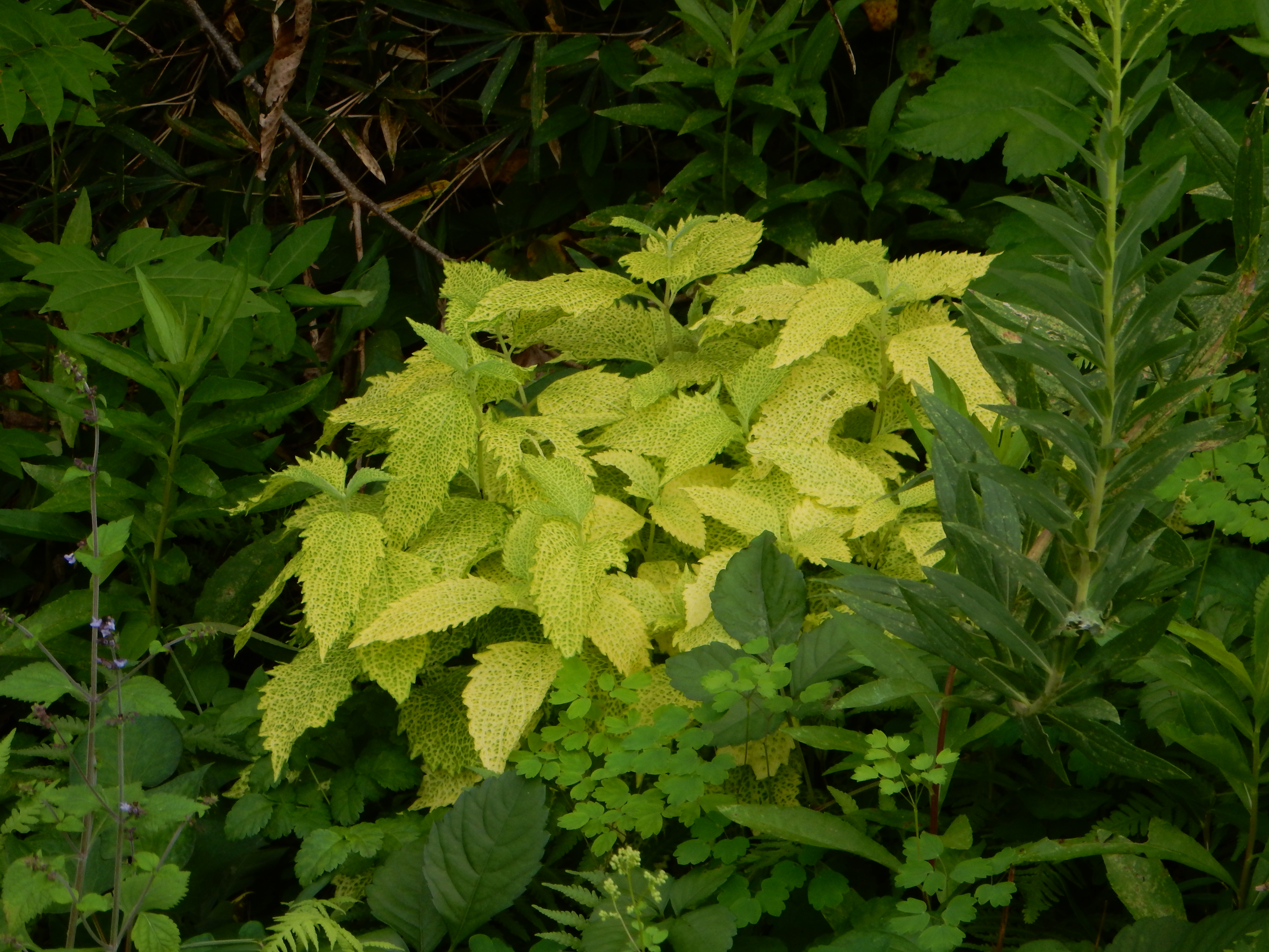 時に葉が黄色い網目模様になっているものがありますが、キンモンヒヨドリ(金紋鵯)とも呼ばれています。