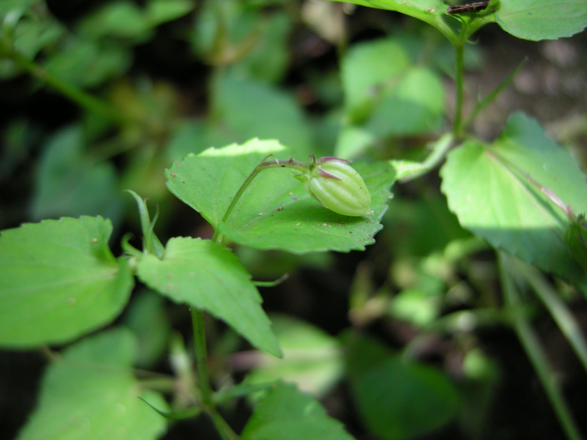 一方、春が終わるころ、スミレの花は見られないころに、突然、果実が目だってくることがあります。これは閉鎖花(へいさか)と呼ばれ、開花しないまま自家受粉する花が結実した姿です。受粉率は100%で、確実に種子を残します。