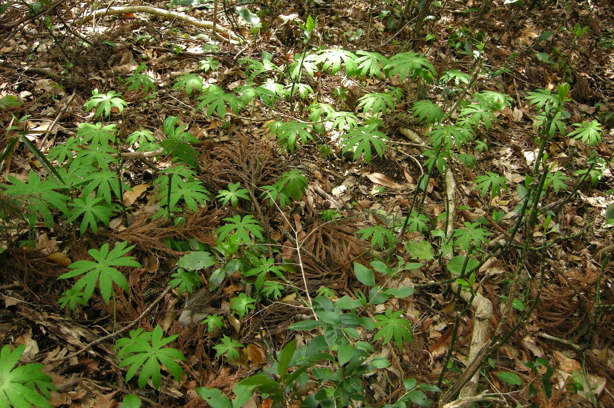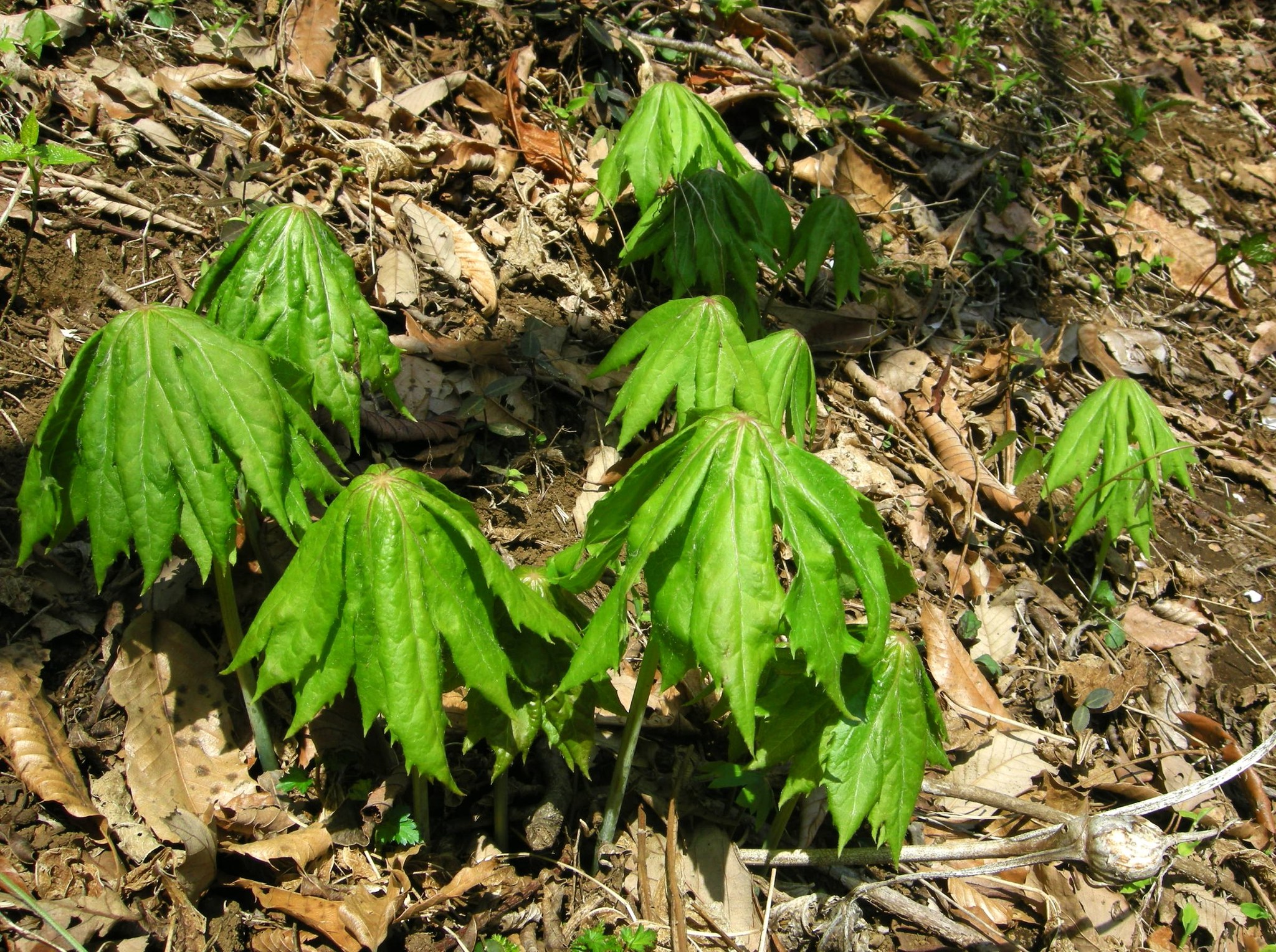 早春の雑木林で、やや乾いたようなところに群れるように出ているのを見かけます。
