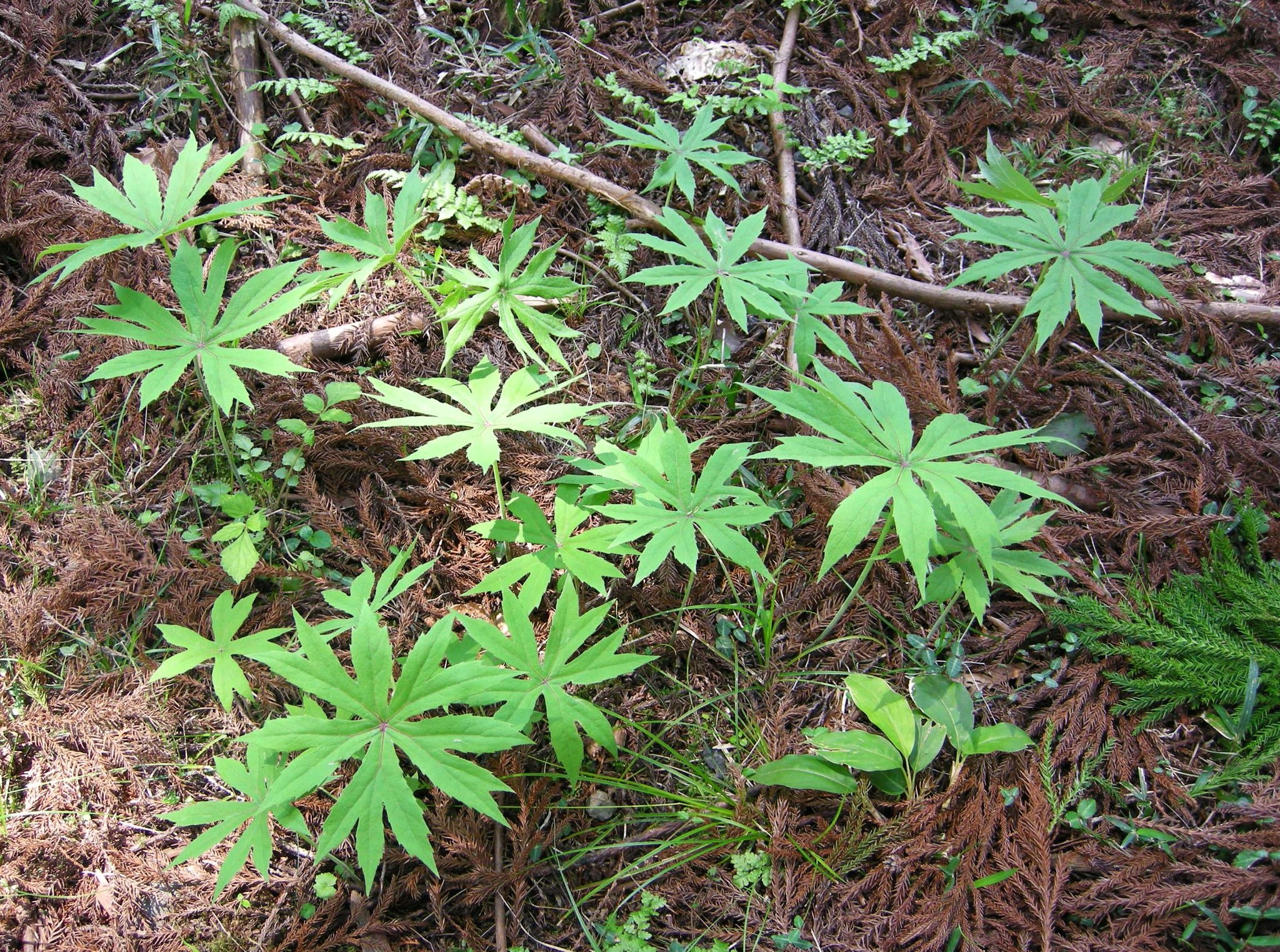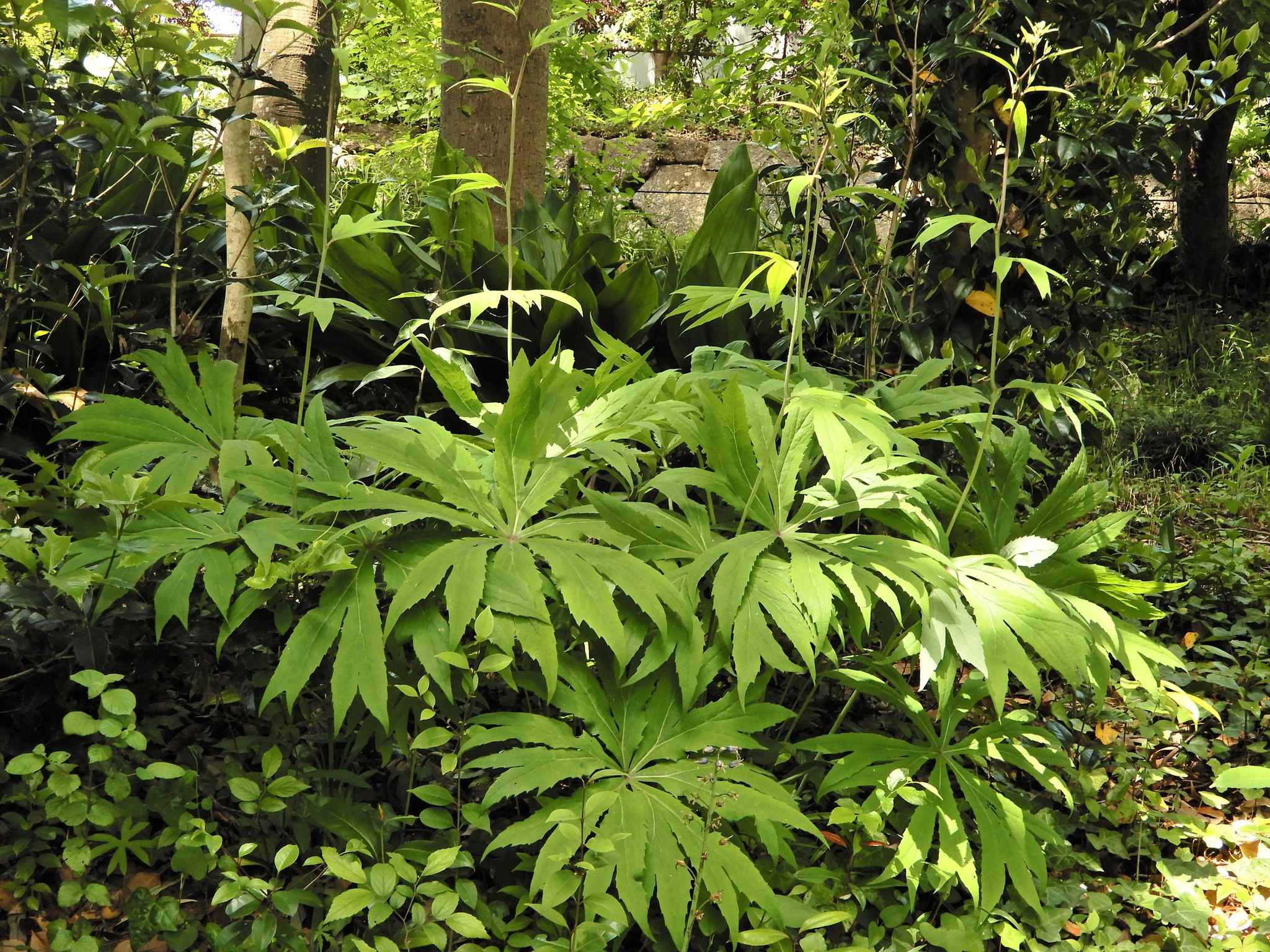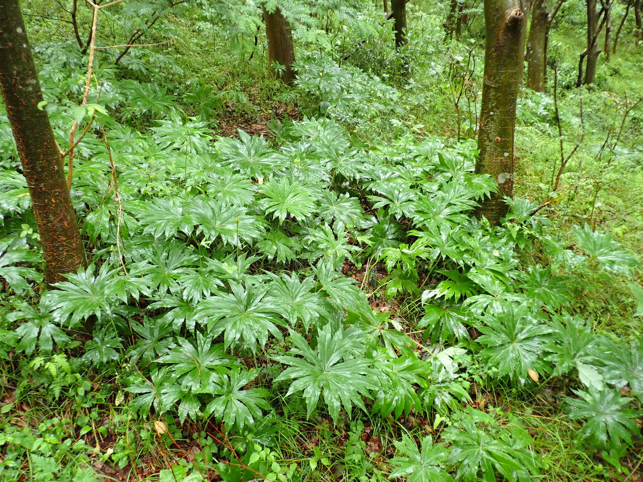 この時期のヤブレガサは山菜としても注目されます。柔らかい新芽は天ぷらにしたり、茹でて、おひたしや胡麻和えなどに調理されますが、乱獲は慎みましょう。