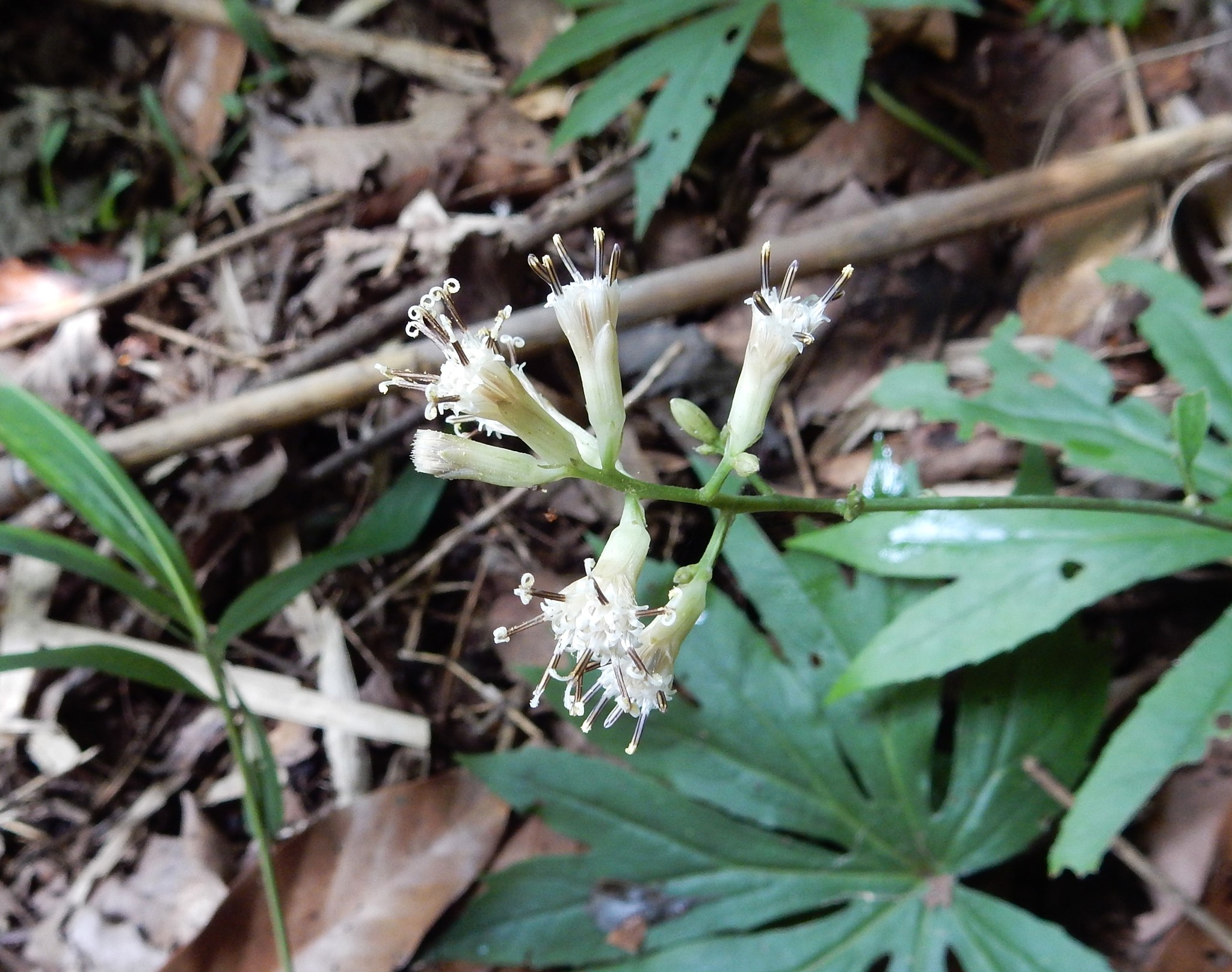 初夏に花茎を伸ばして、夏には白い目立たない花を咲かせます。雑木林は濃い緑に覆われる季節で、林内は薄暗く、花に注目する人は少なくなります。