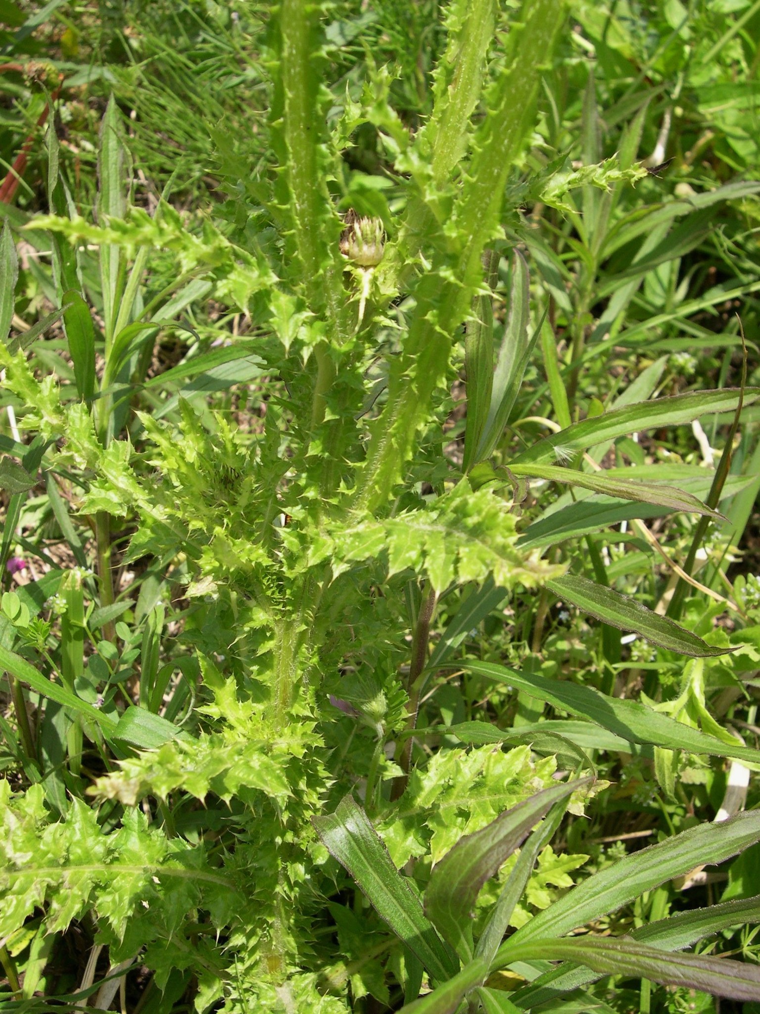 分岐しながら伸びる茎には縦に2条のひれ(翼)があり、そのひれには鋸歯があって、鋸歯の先端は鋭い刺になっています。