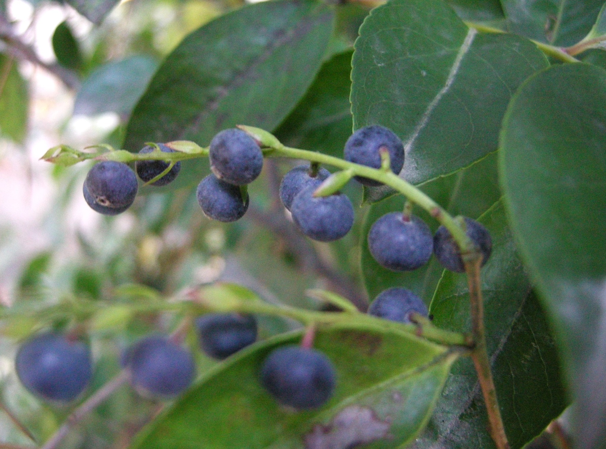 秋に黒い果実をつけます。霜が降りる頃になると白く粉を吹いたようになって、甘みが増します。ブルーベリー同様に生食できて人気ですが、地域によってはなかなかお目にかかれないのが残念です。