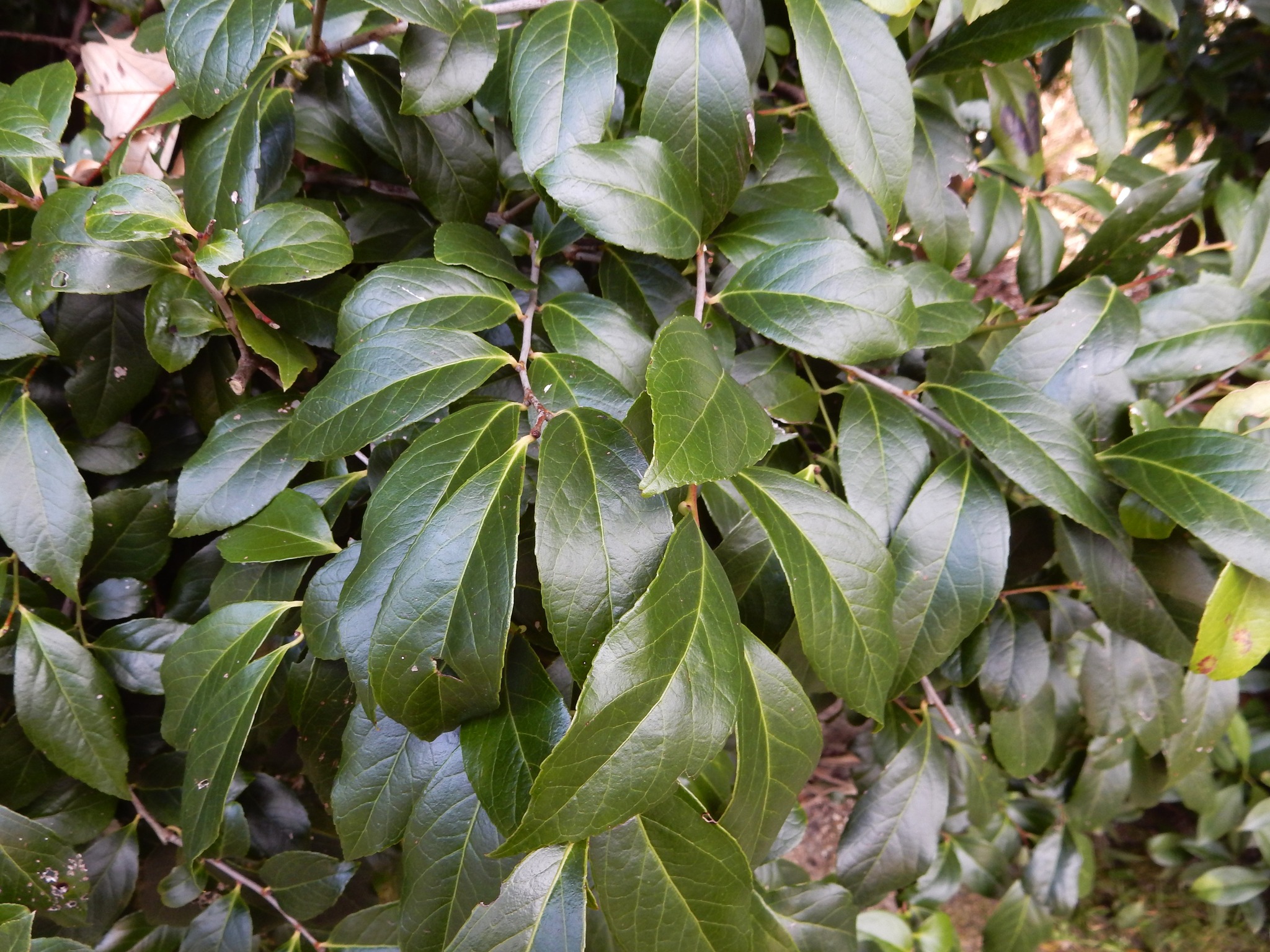 厚い光沢のある葉ですが、葉裏の主脈上に小突起があるので、触ると指に引っかかります。自信のないときは、葉裏を触ってみて下さい。