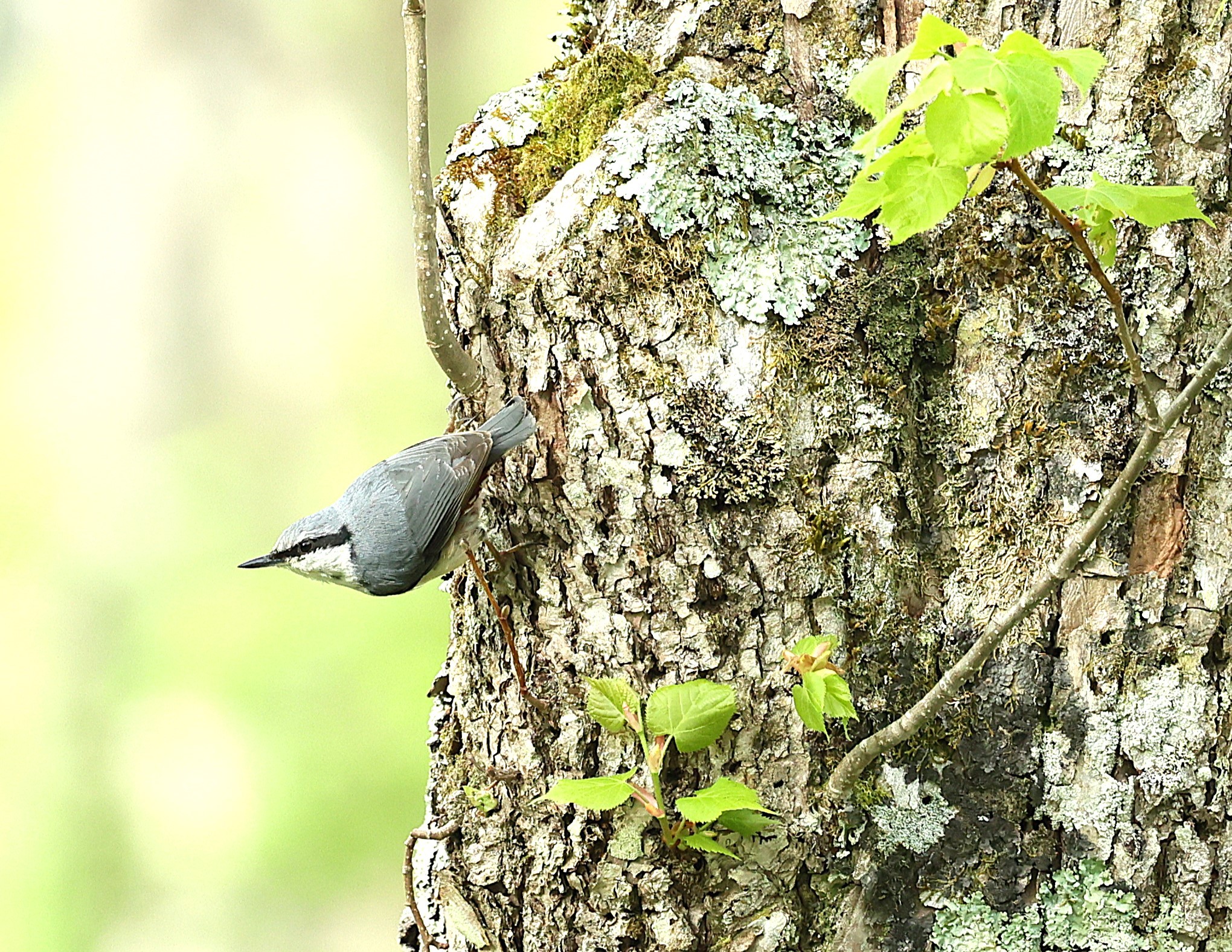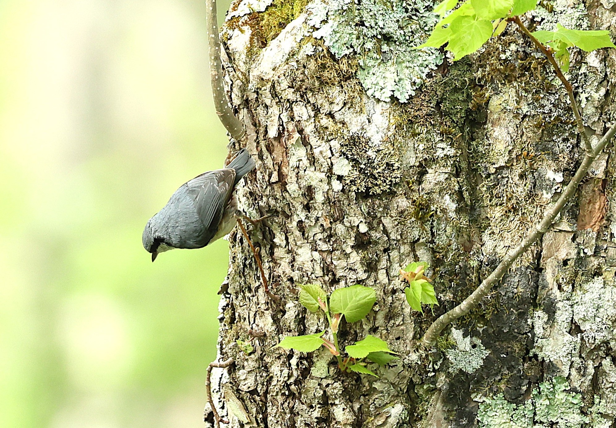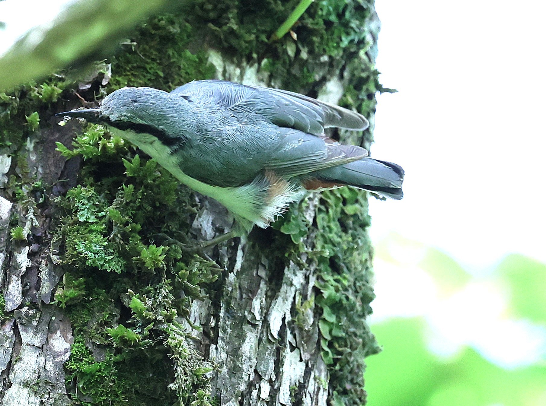 初夏の高原の森にフィフィフィフィというゴジュウカラの鋭い声が響きます。顔も嘴(くちばし)から続く黒くくっきりした過眼線が目立ち、中々精悍な顔立ちです。樹々の中を素早く動き回りエサを捜します。