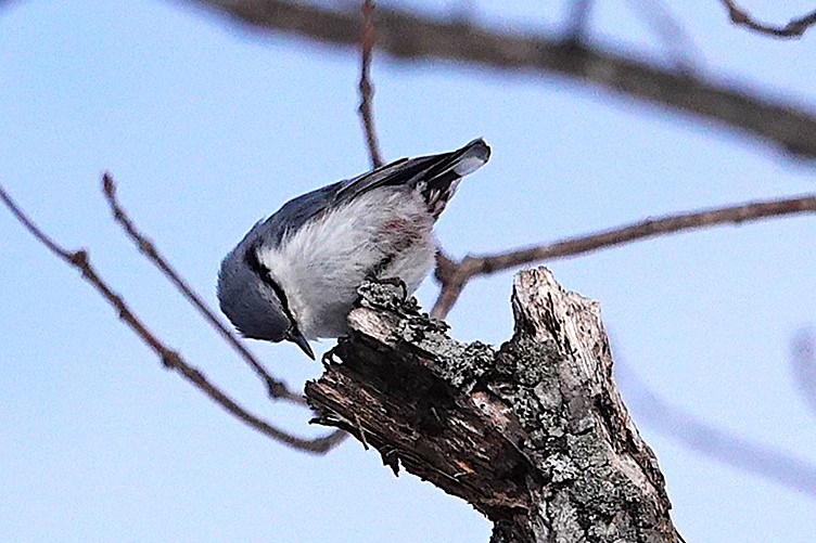 秋には樹皮の隙間に木の実などを蓄える貯食という行動もして、冬に備えます。留鳥(一年中同じ場所で過ごす鳥のこと)なので、冬でもその元気な声を聴くことが出来るのは嬉しい所です。