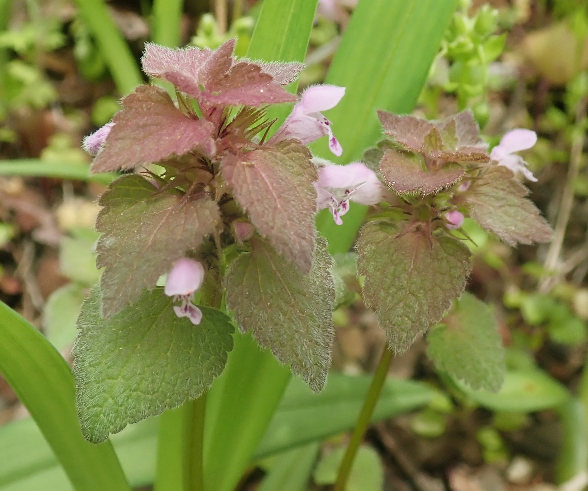 草丈30~50㌢もある日本在来のオドリコソウに比べて、ヒメオドリコソウは草丈10~20㌢と小さくて可愛らしいことからの命名とされています。