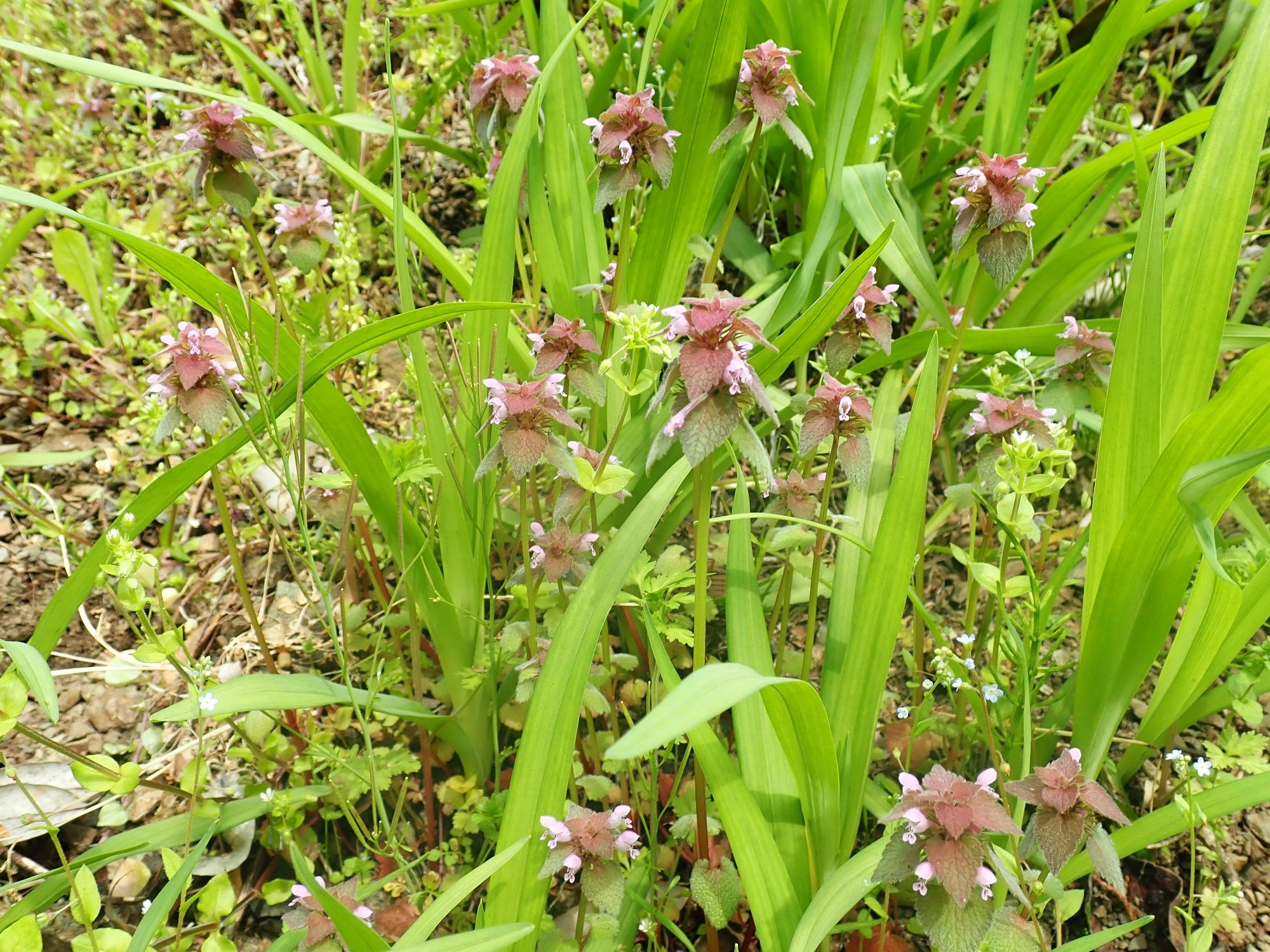 花色はピンクのものが多いのですが、たまに白色のものがあり、シロバナヒメオドリコソウ白花姫踊子草と呼ばれることもあります。