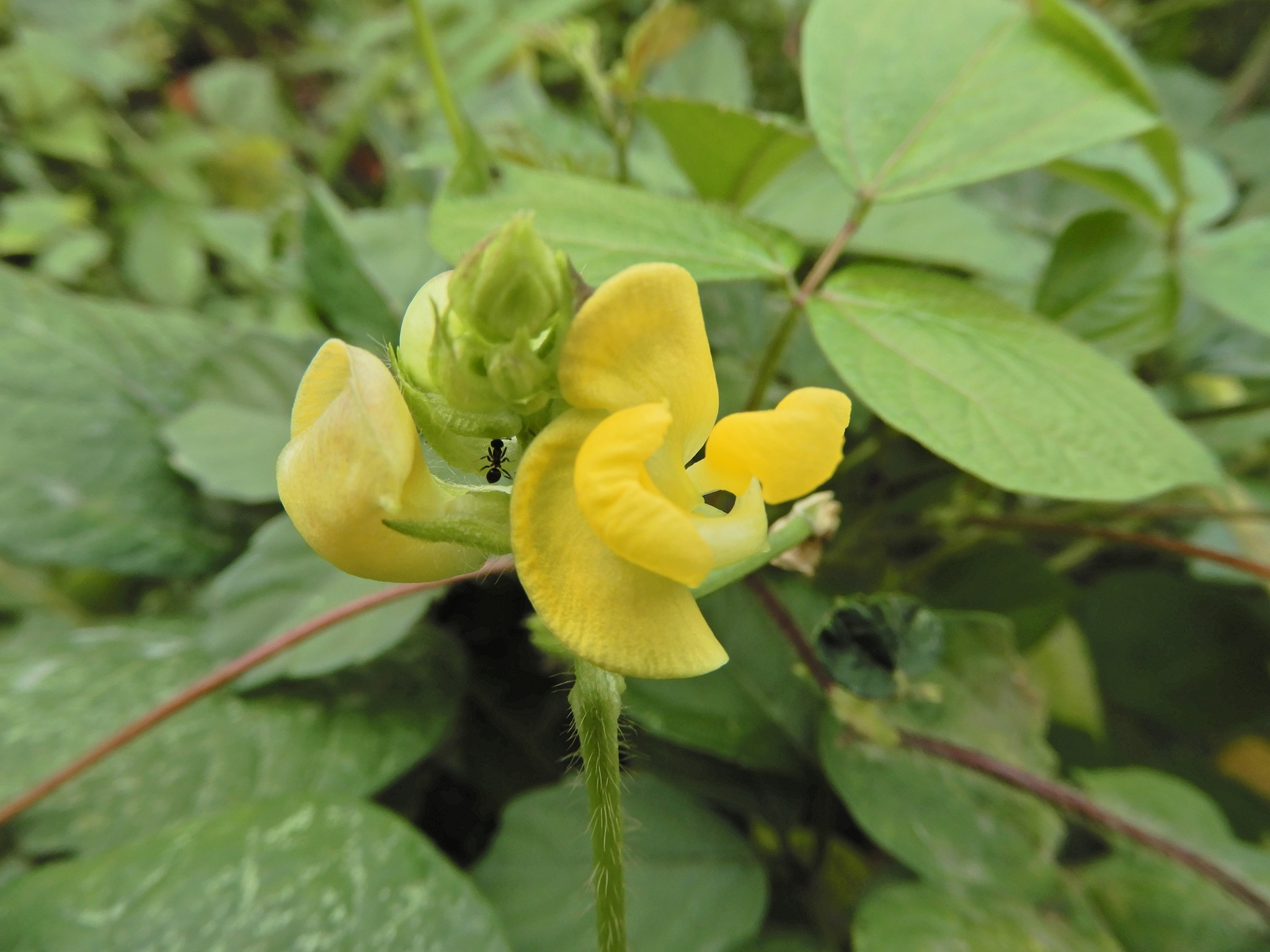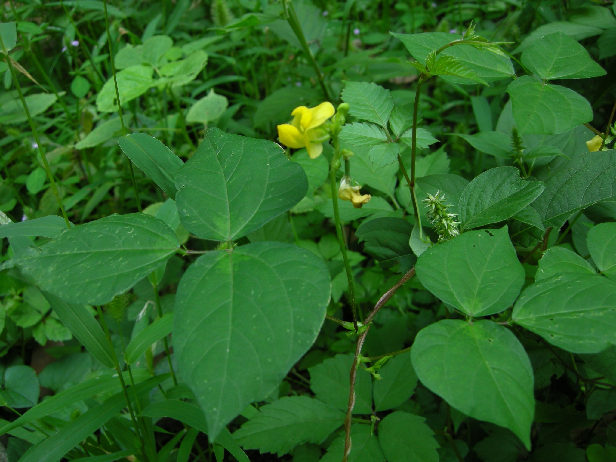 道端の草に絡むように黄色い花を咲かせます。藪に絡むつる性のアズキを意味しています。