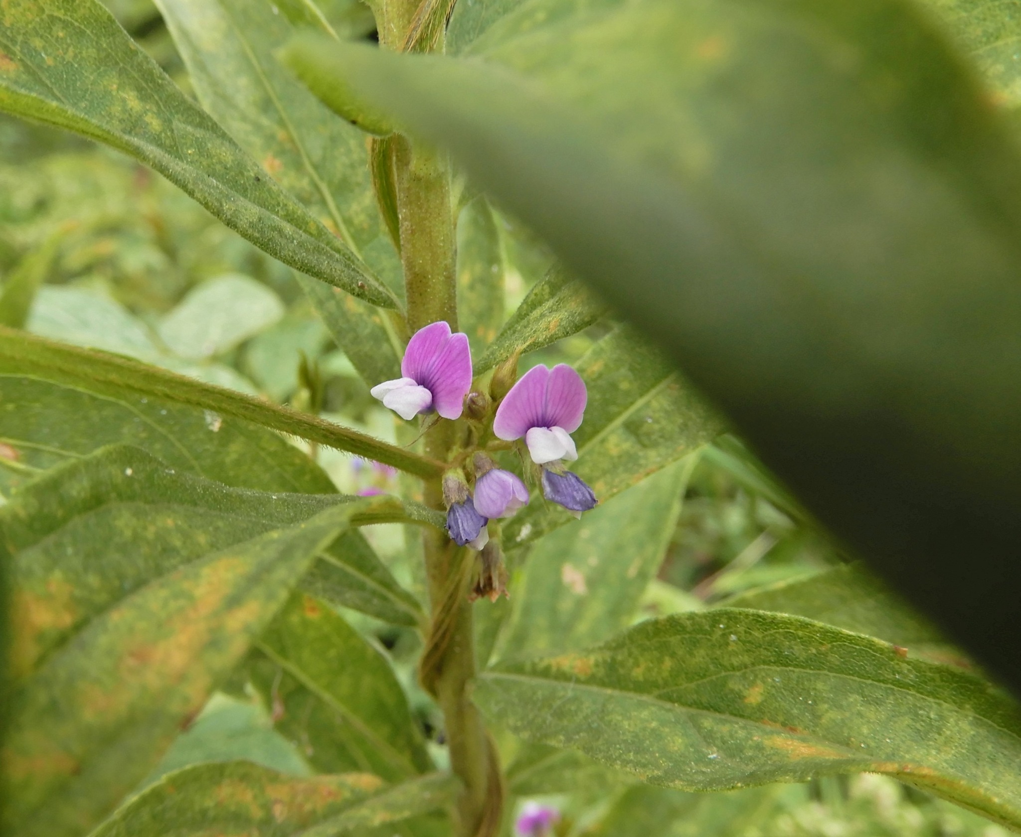 蔓はありませんが、ダイズの花はツルマメの花に酷似しています。