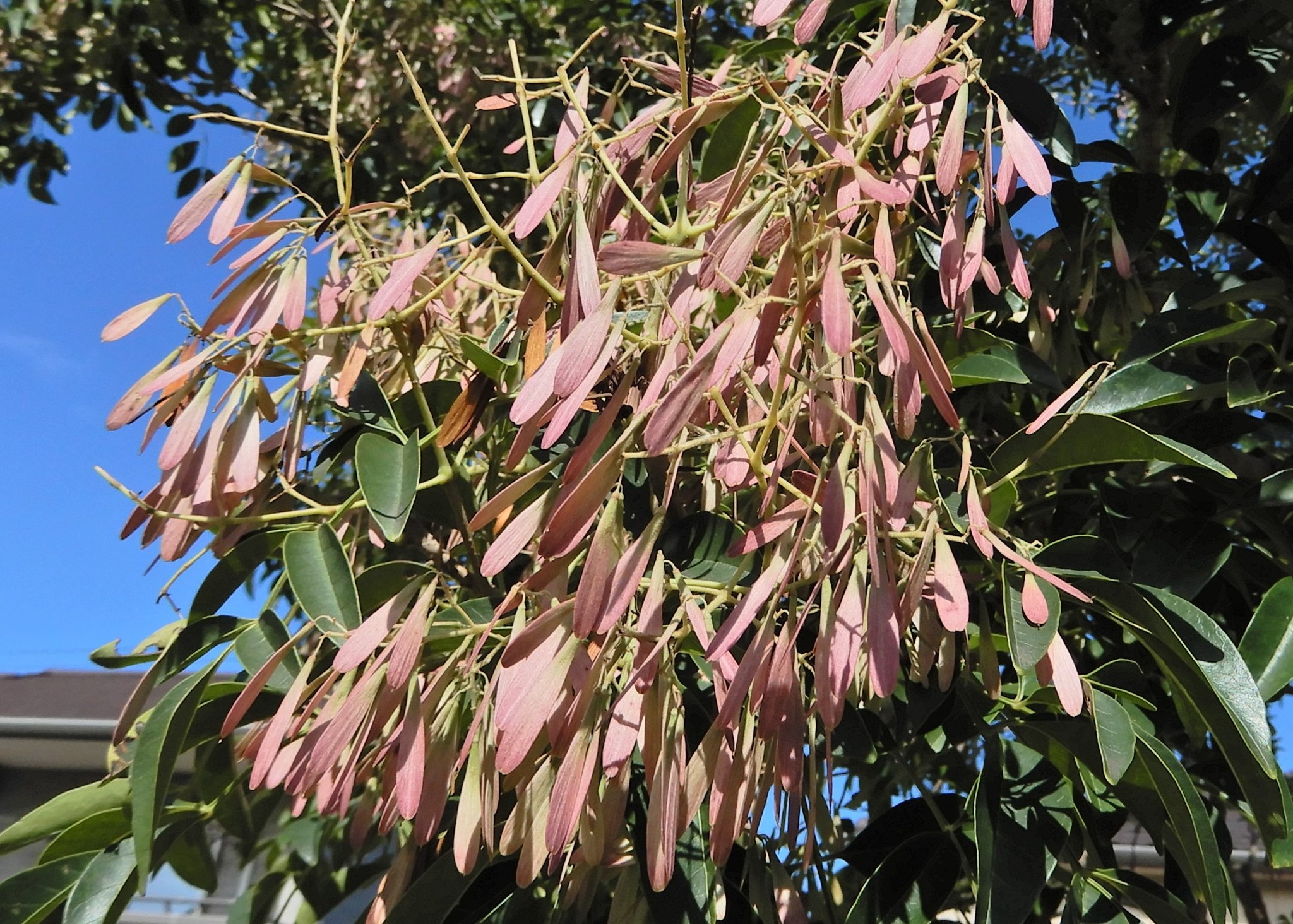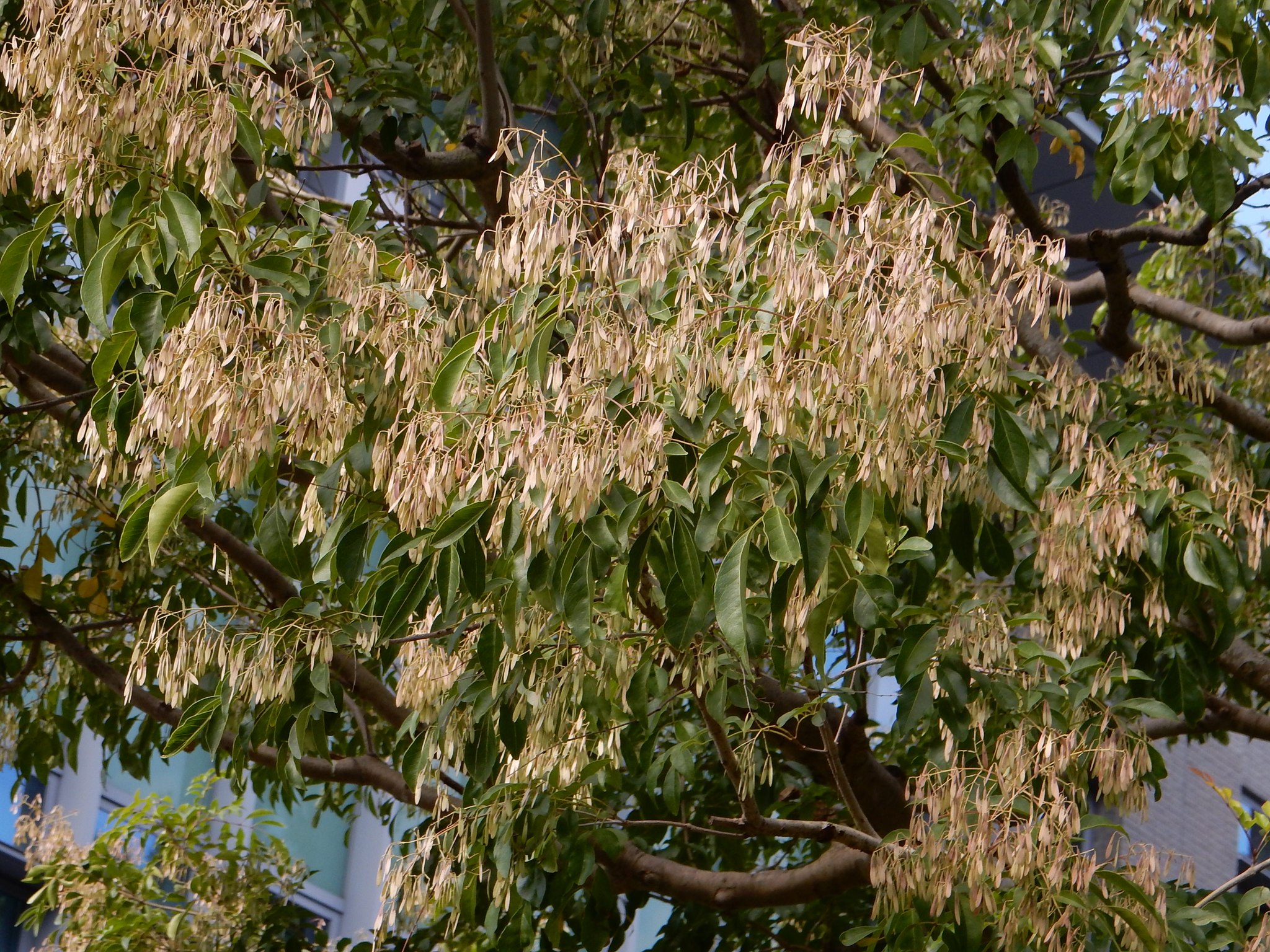 雌株か結実すると、翼のついた果実をつけて風に運ばれて分布を広げます。