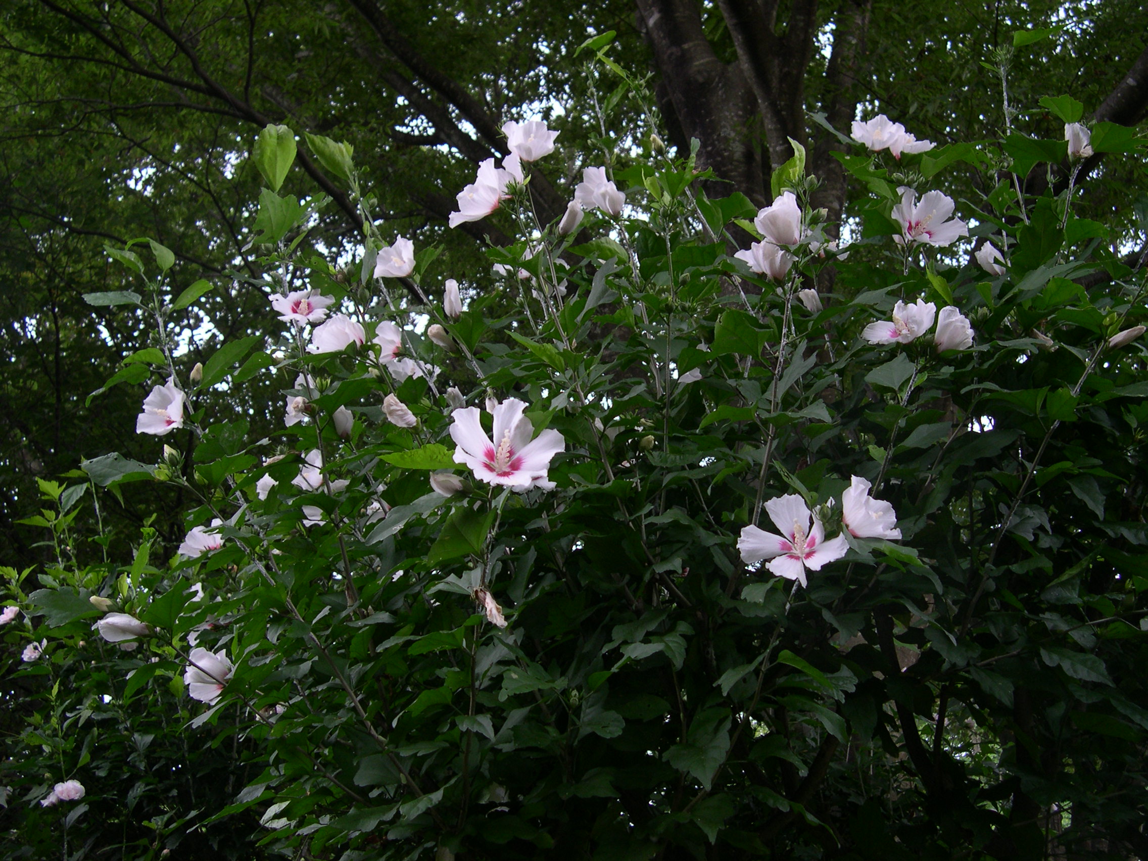 夏を彩る花の一つがムクゲです。原産地は明確にはなっていないようですが、奈良時代には中国から渡来していたようです。丈夫で育てやすいこともあり、平安時代には、既に生垣などとして普及していたと思われています。