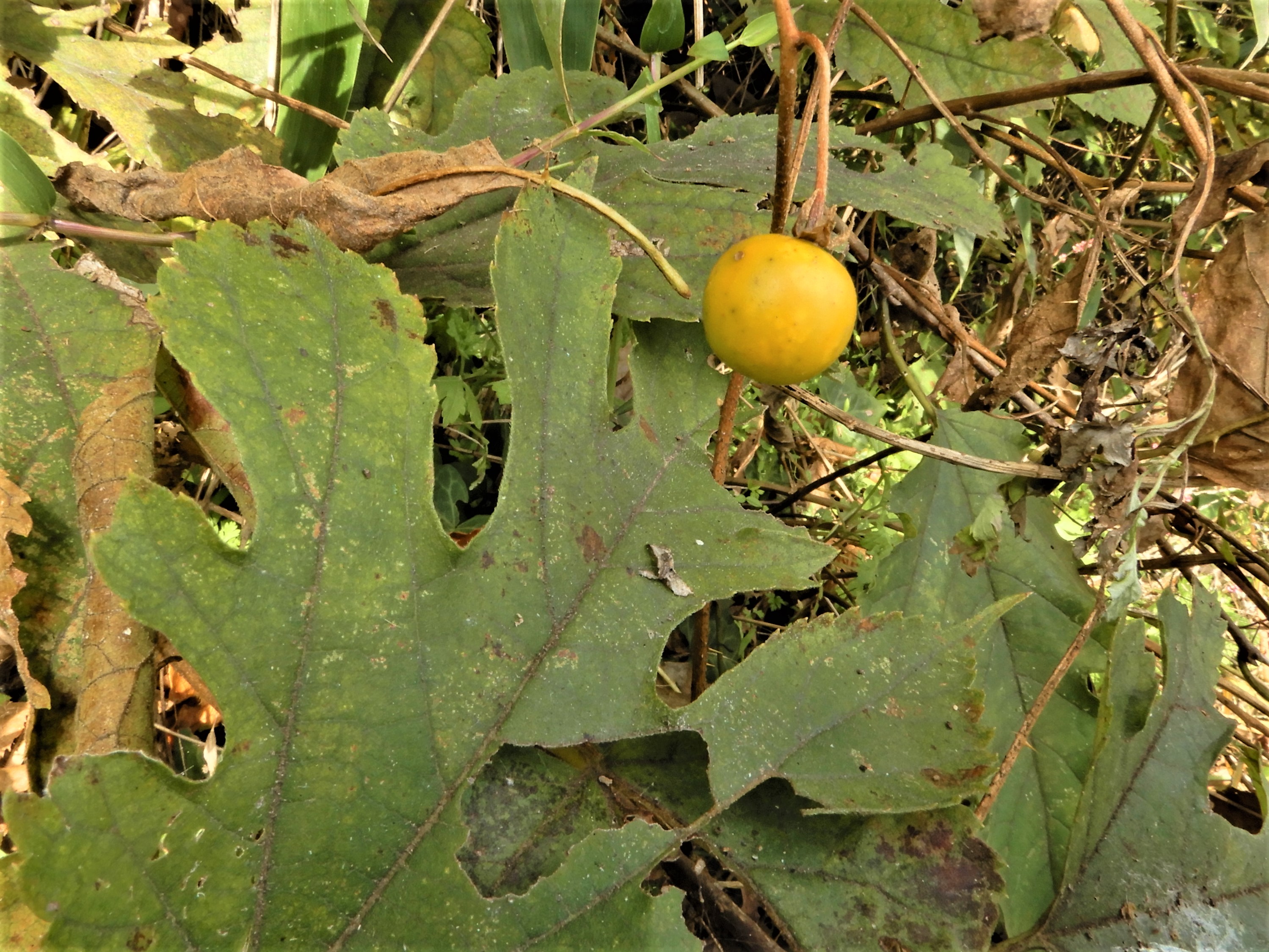 花を見ることは多いのですが、果実を目にする機会はあまりありませんでした。近年、果実を見かけた方から「これは何?」と聞かれる機会が多くなっています。花はナスそっくりなのですが、果実は球形で黄色に熟します。