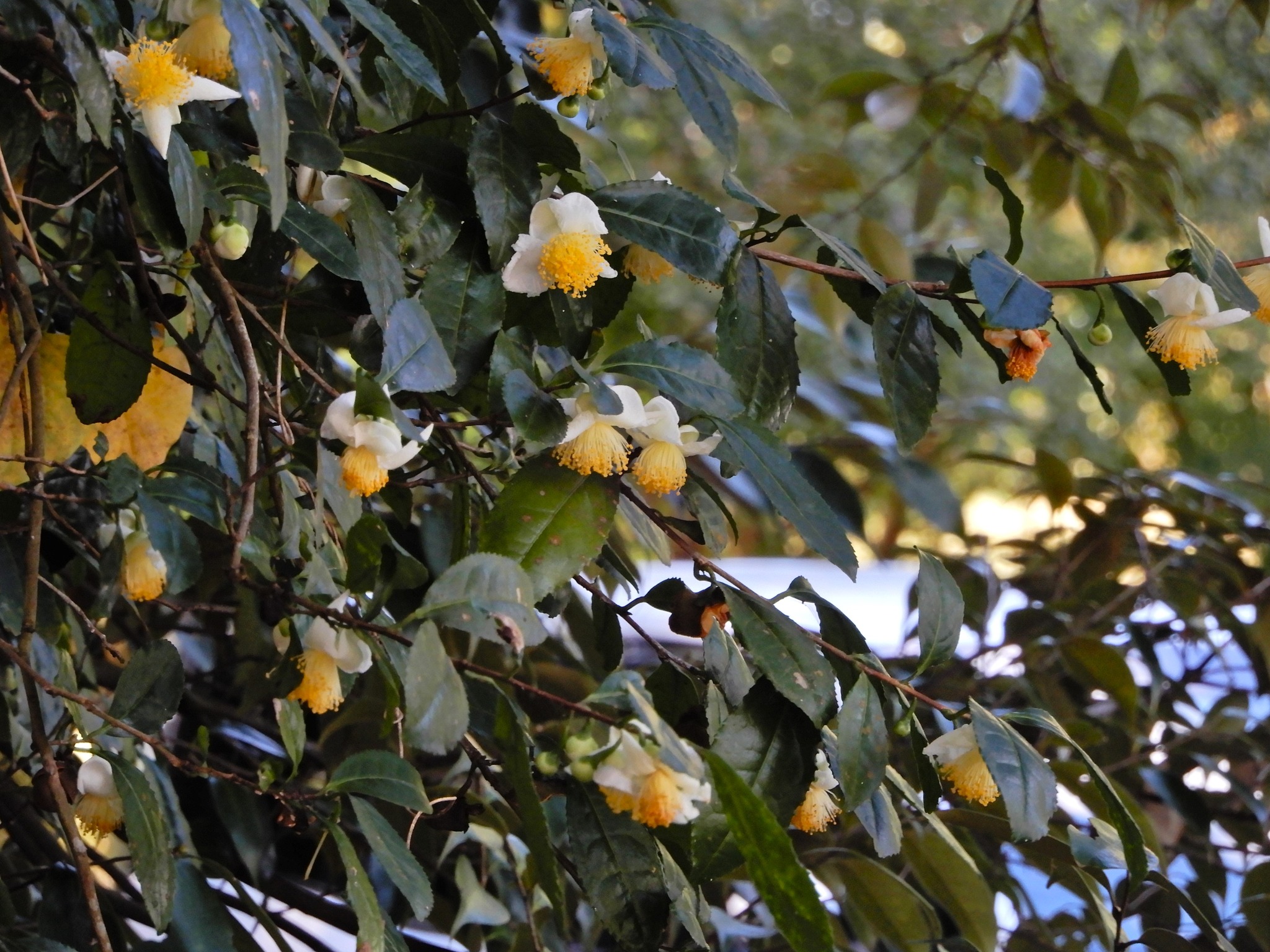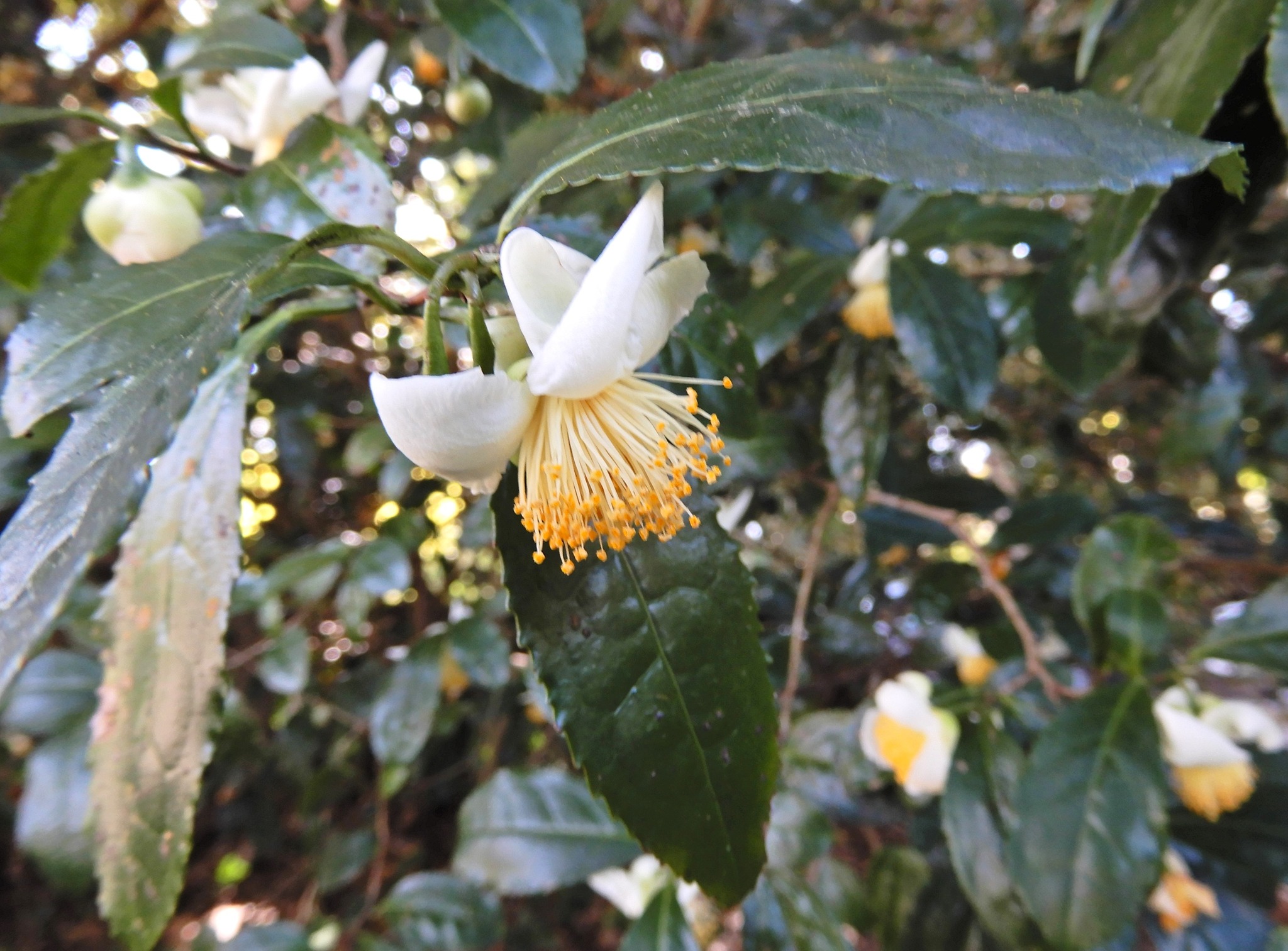 暖かい緑茶が美味しい季節になりました。白いチャの花があちこちで見られる季節です。