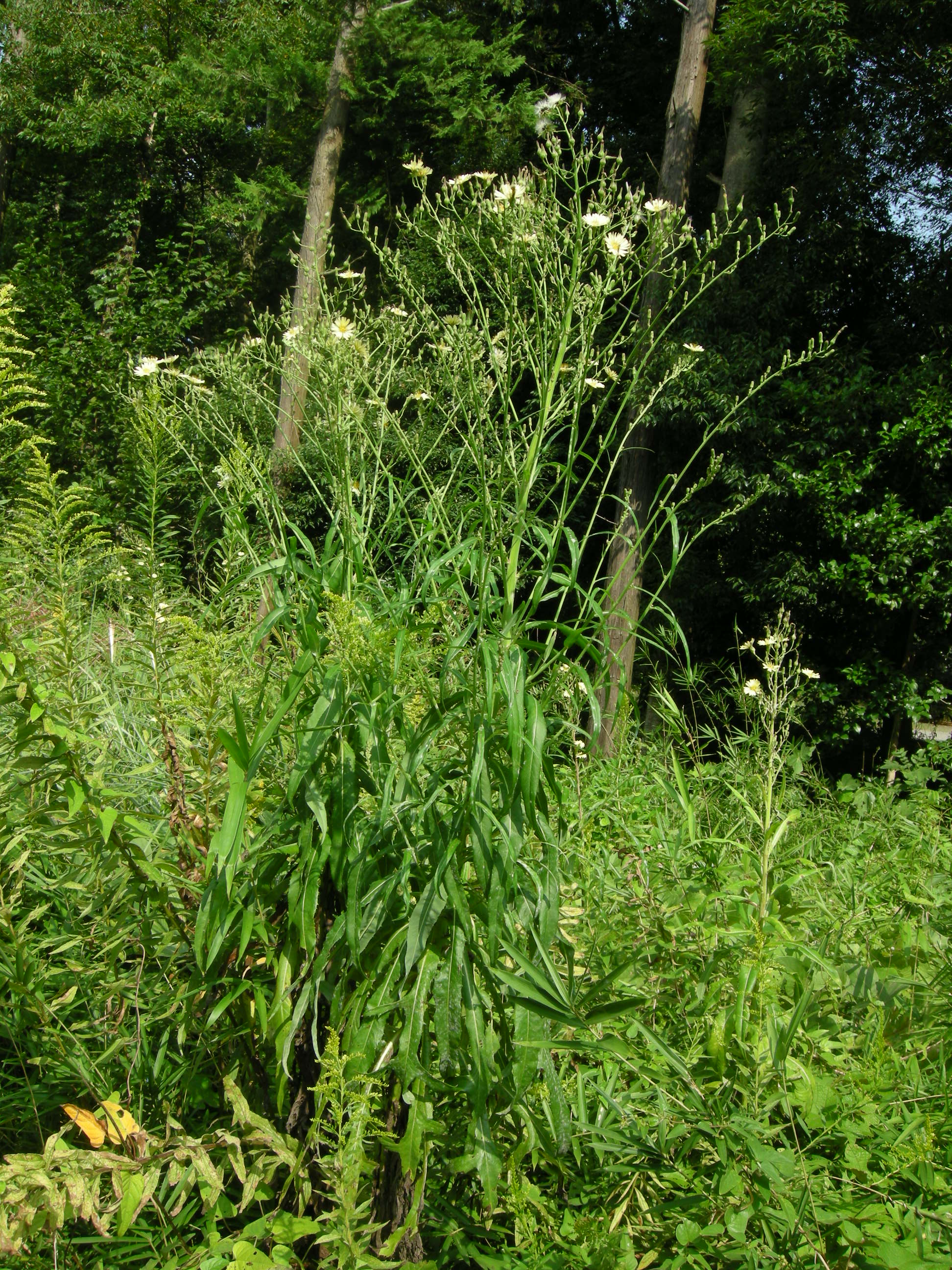葉は細長く羽状に切れ込みますが、切れ込みがなく広線形のホソバアキノノゲシも、ときおり見ることができます。