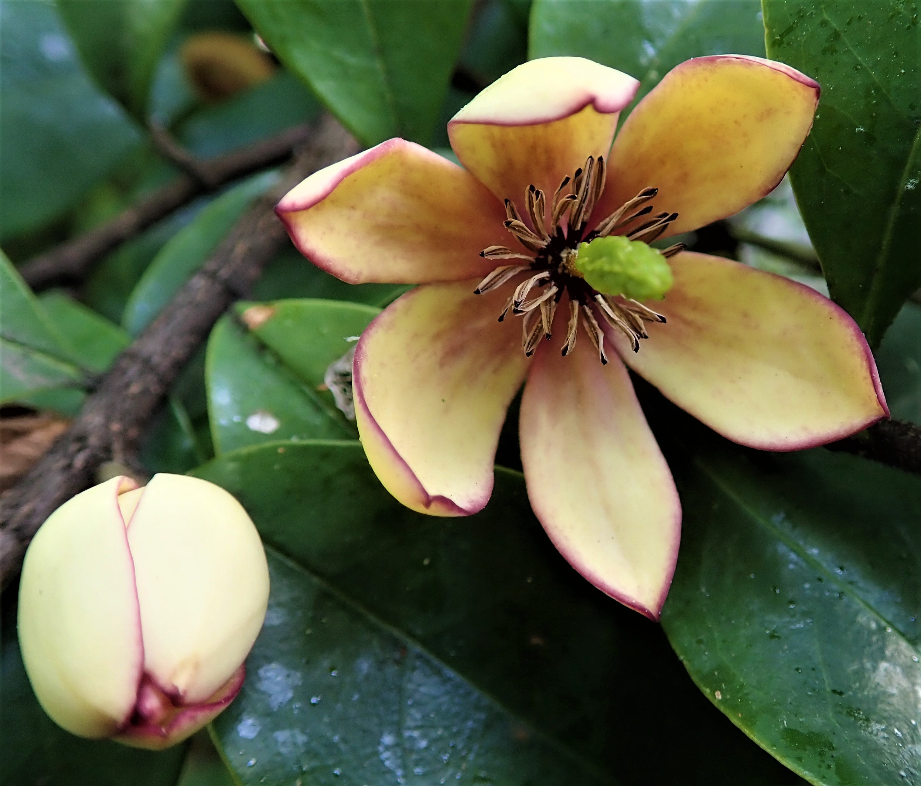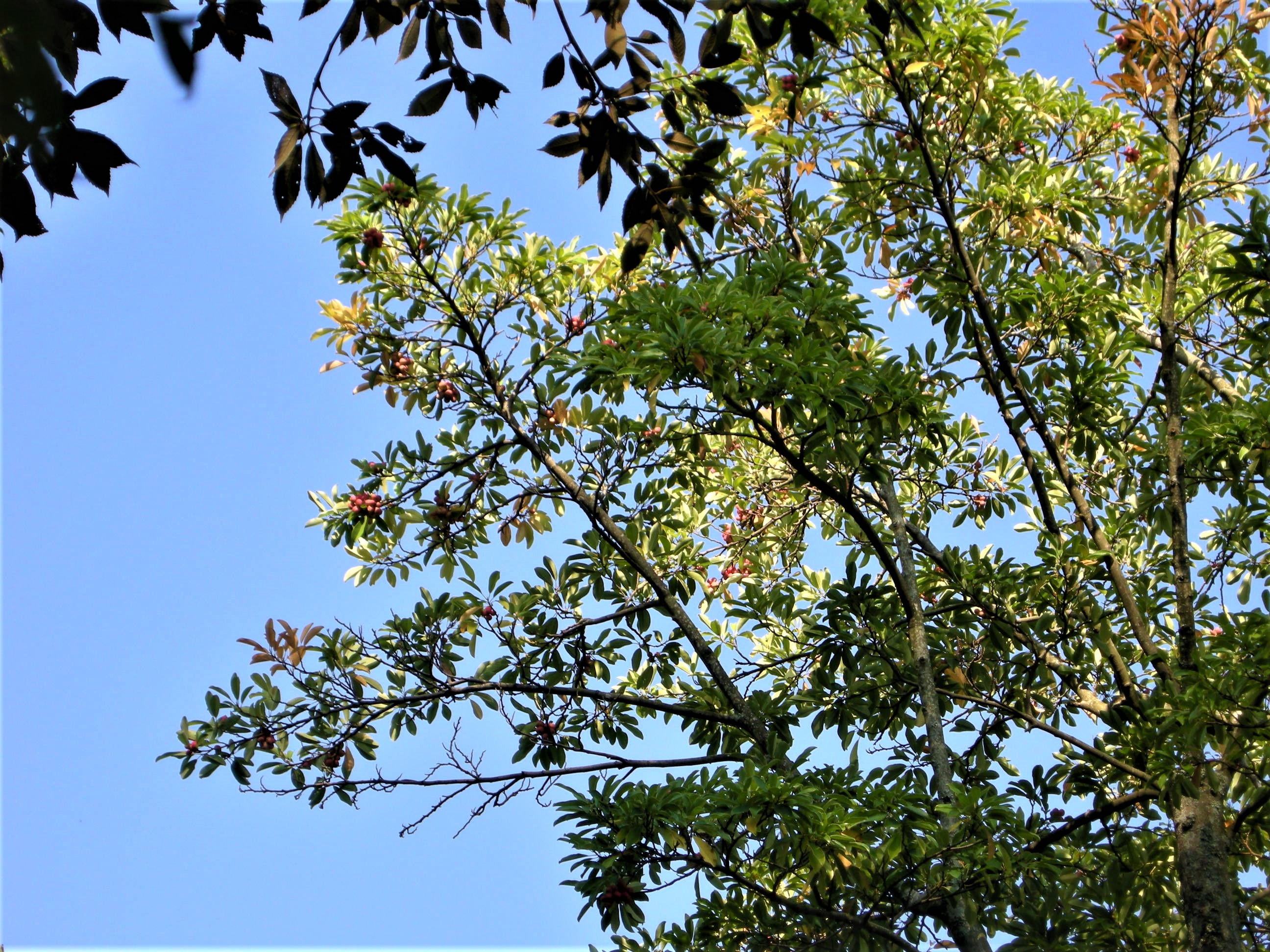オガタマノキは日本に自生するモクレンの仲間の中で、唯一、常緑樹です。比較的温暖な気候を好みますので、関東の山林で見かけることは少ないようです。