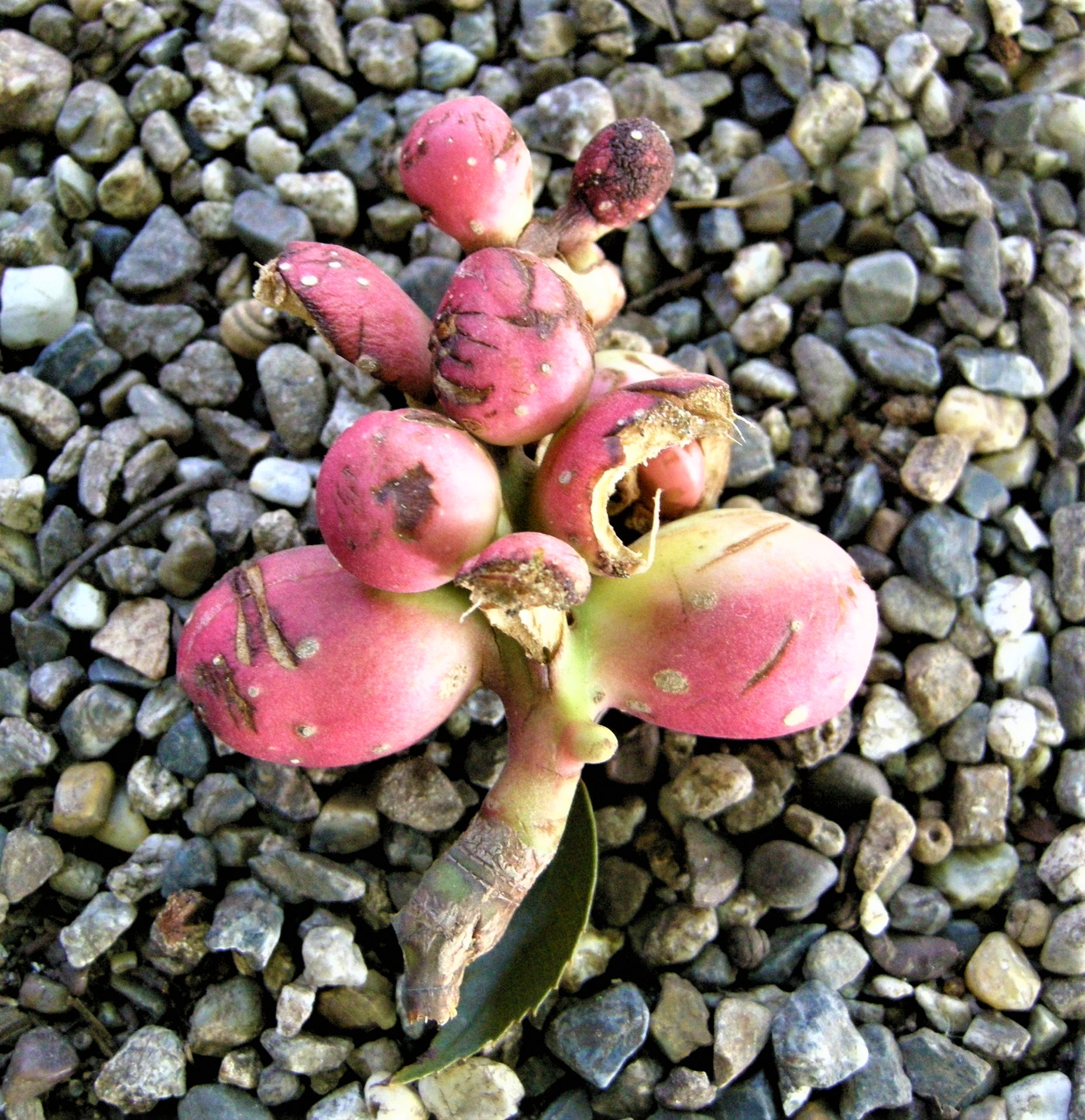 天照大神(あまてらすおおみかみ)が天の石屋にお隠れになったとき、天宇受売命(あめのうずめのみこと)が踊りを踊って天照大神を外へ誘い出したという話が古事記にあります。この時、天宇受売命が手にして踊ったのが天の香具山のオガタマノキの枝だったと伝えられています。諸説あるようですが、枝を神前に供え、神霊を招くために使われた木、招霊の木の所以です。果実の形は、神楽を舞う巫女さんの持つ鈴の形と言われます。