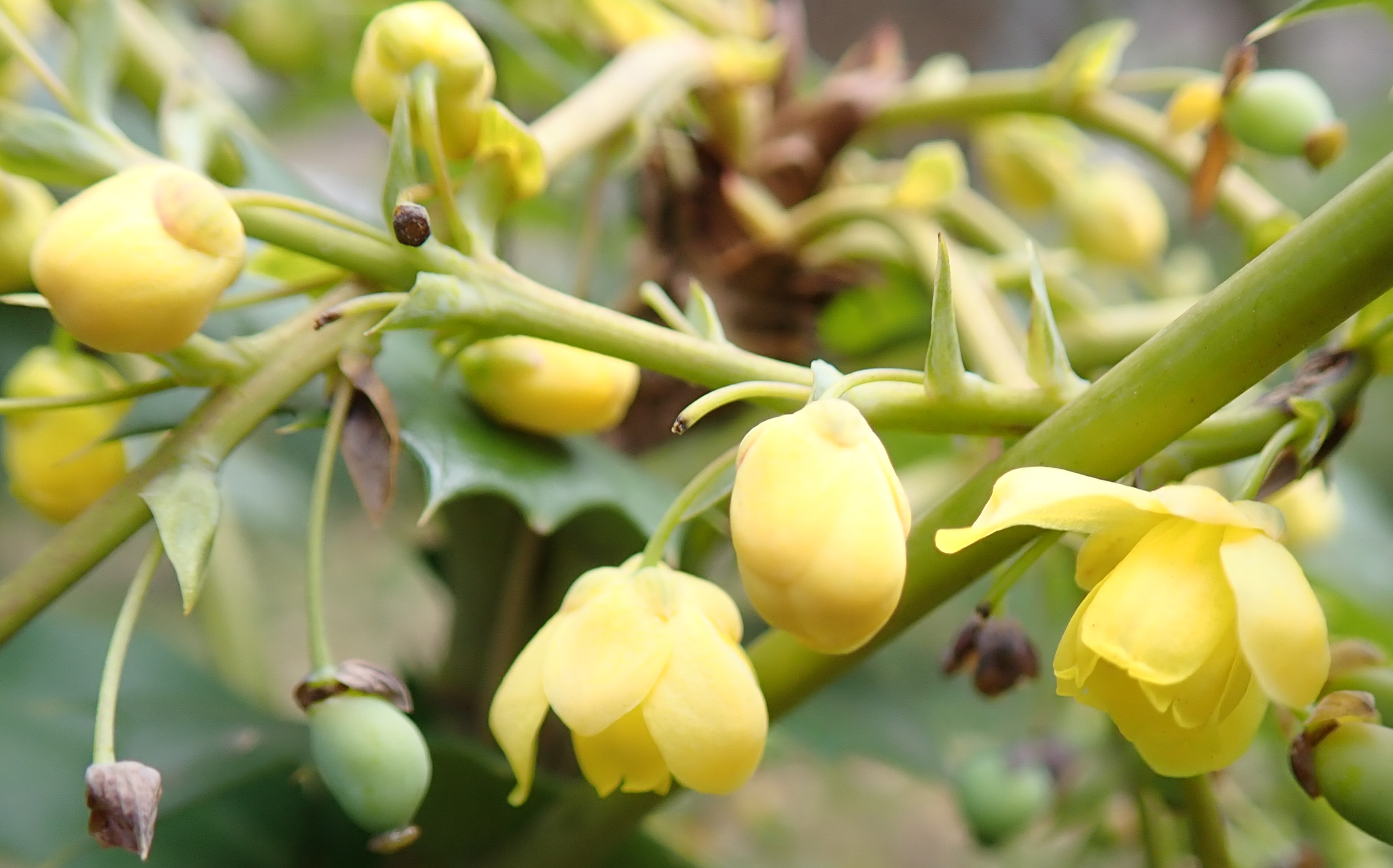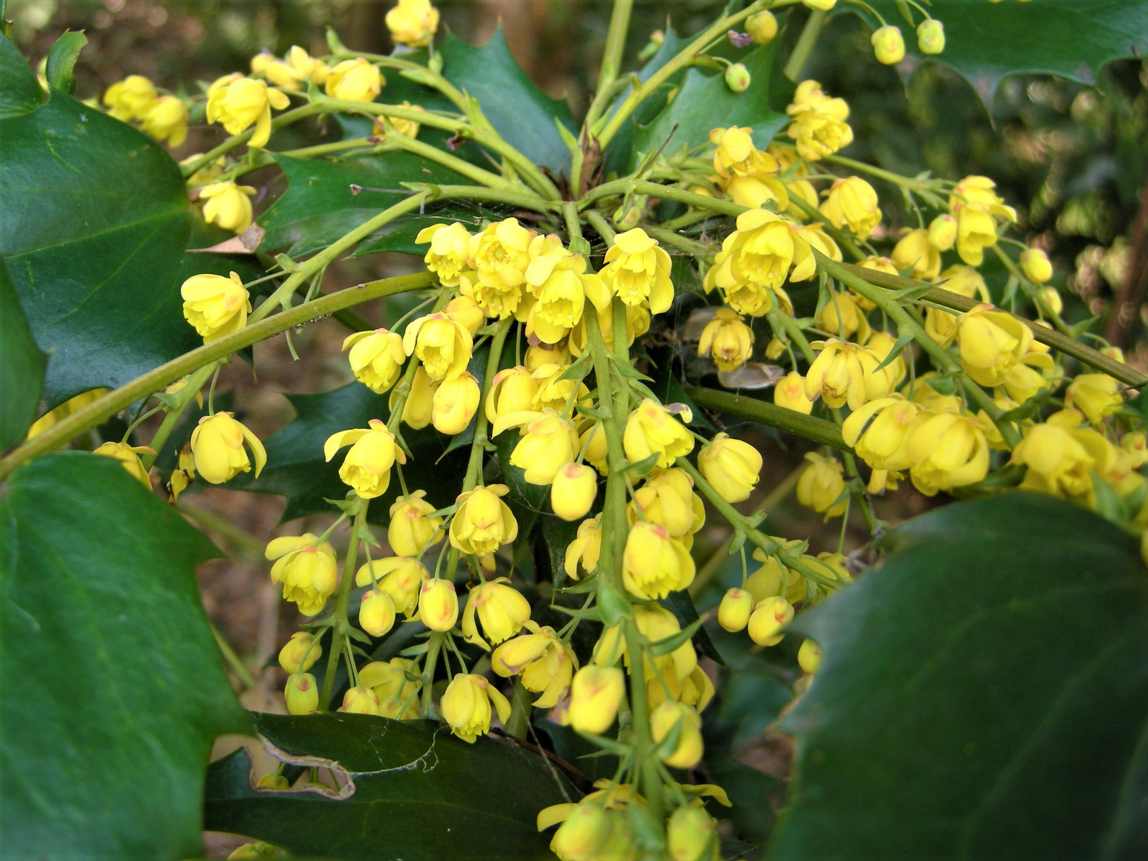 花の中にある雄しべは、昆虫などが触れると、その刺激で内側に動きます。昆虫の背中に花粉がつきやすくなり、受粉に貢献します。ヒイラギナンテンの花に出会う機会がありましたら、虫になった気分で、そっと突ついて見てください。雄しべが動くのを目の前で見ることができるかもしれません。