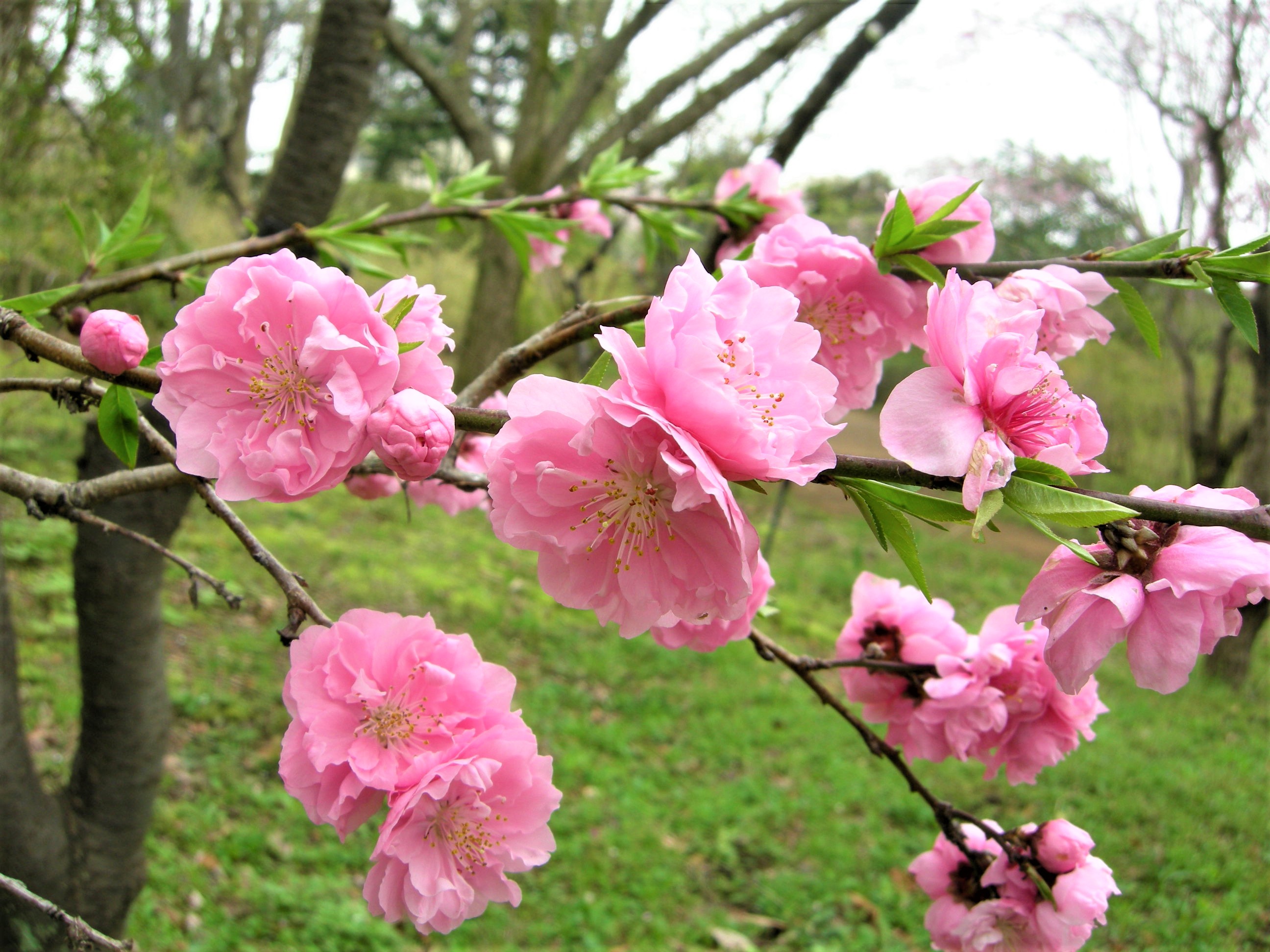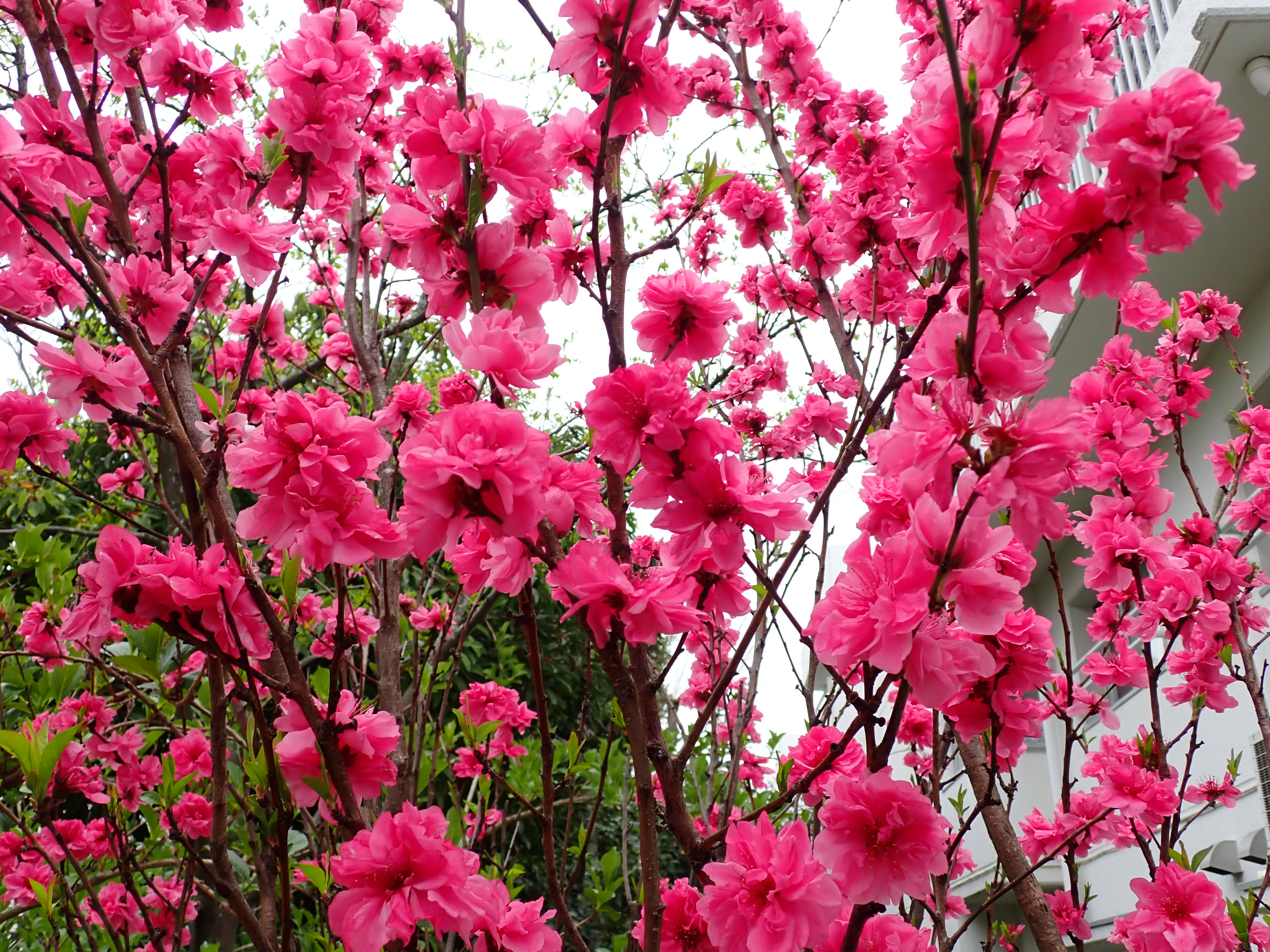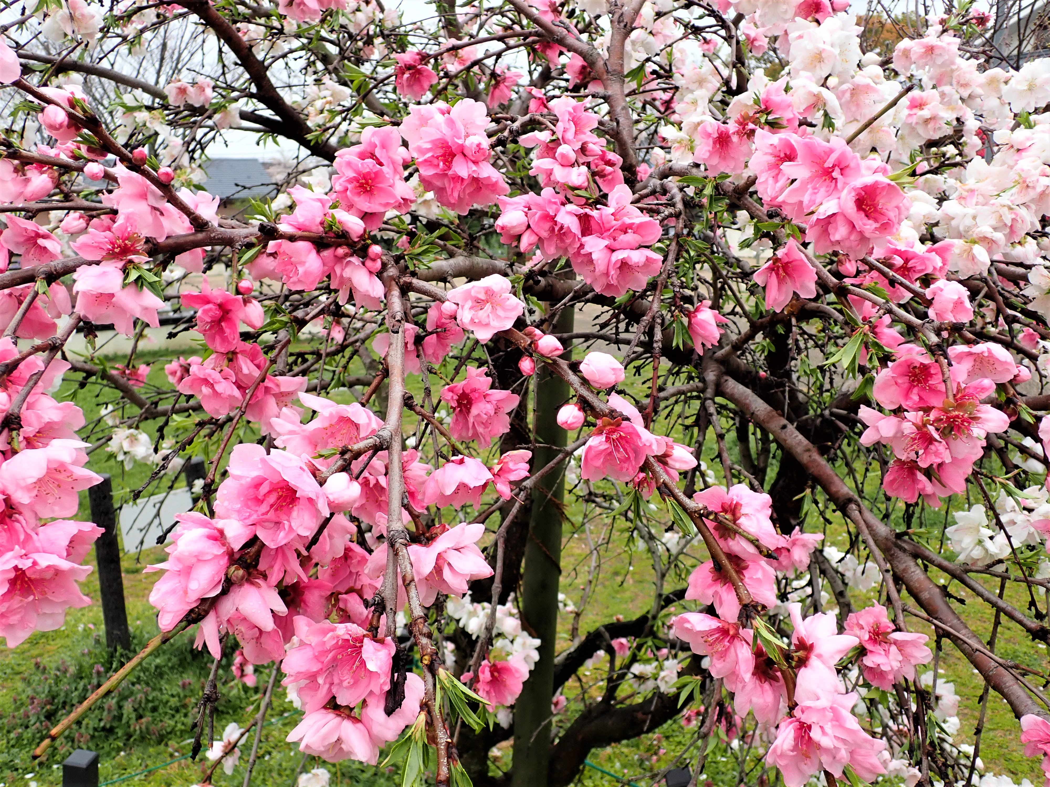 ひな祭りに飾られる桃の花は、ハナモモともいわれます。花を愛でるために改良されたもので、一重咲き、八重咲きがあり、色も白、ピンクなど様々です。たまに結実する果実は堅くて食用にはなりません。
