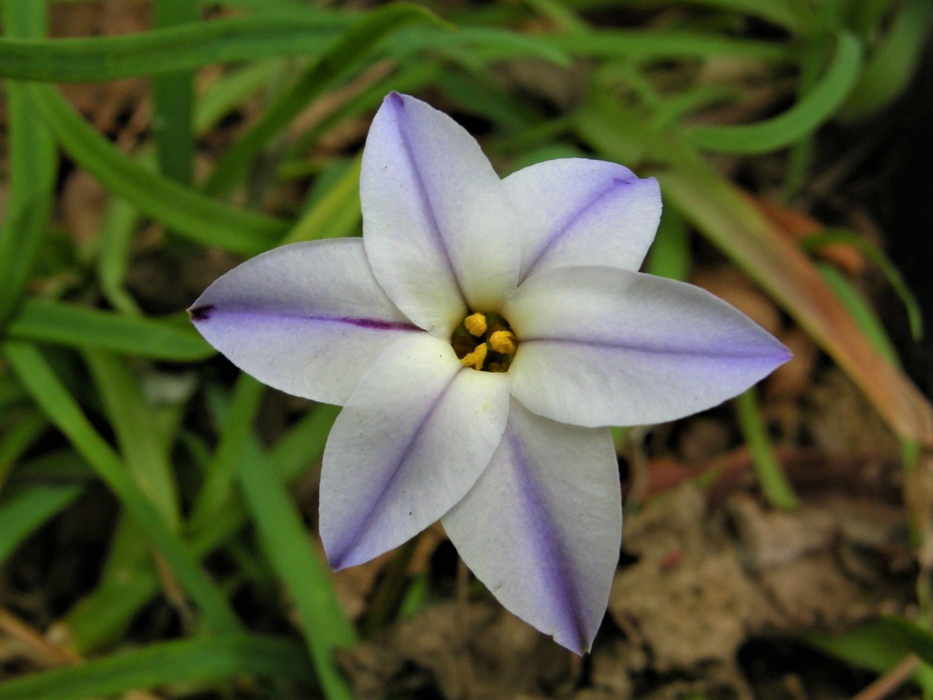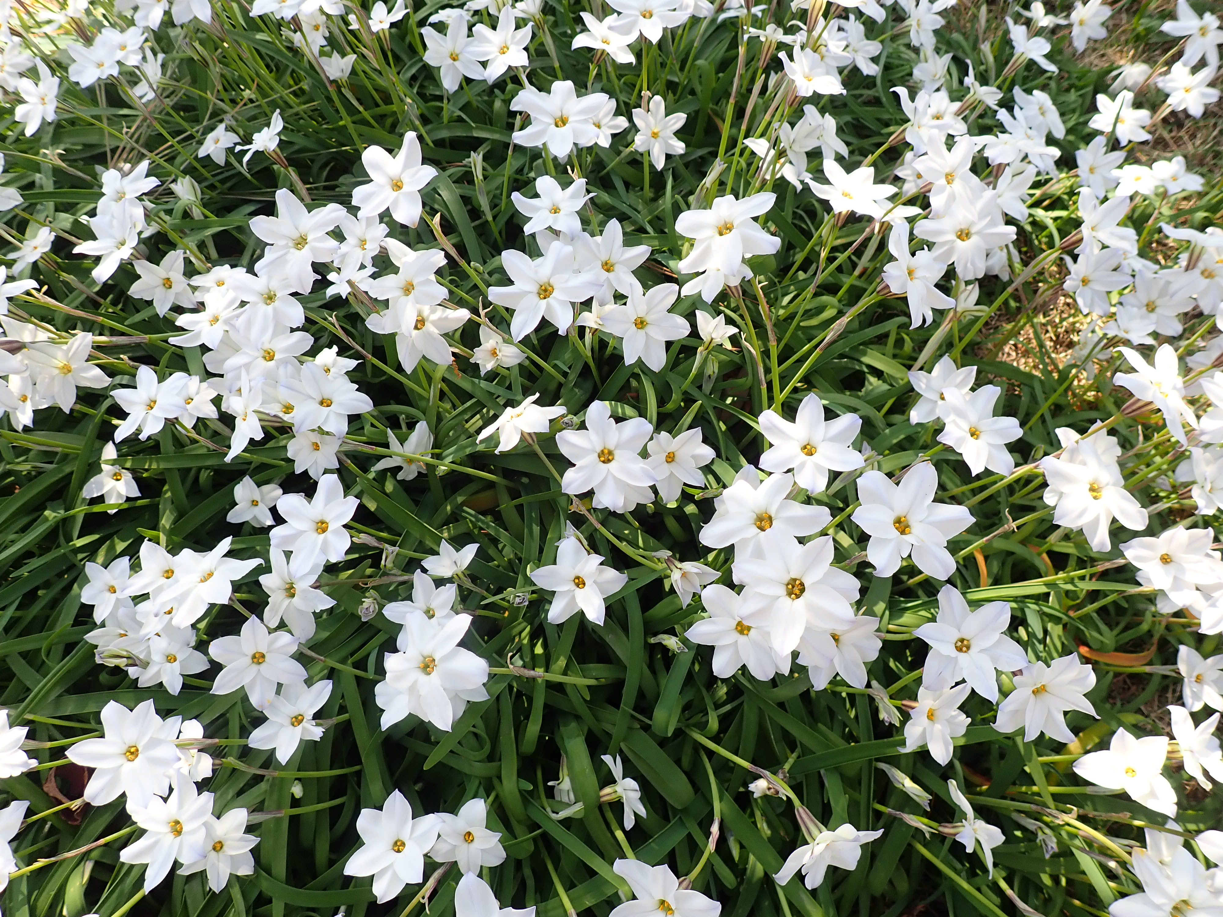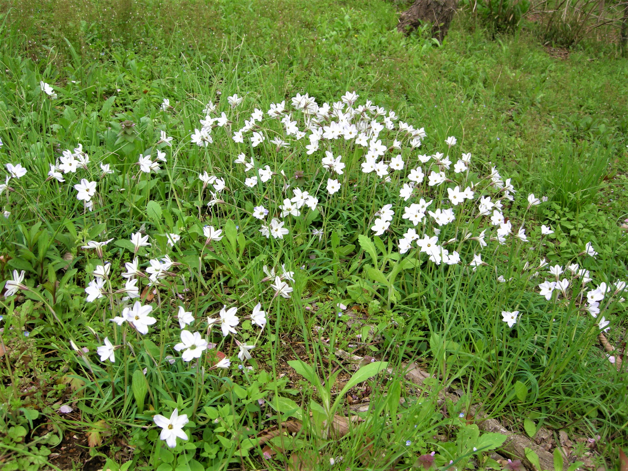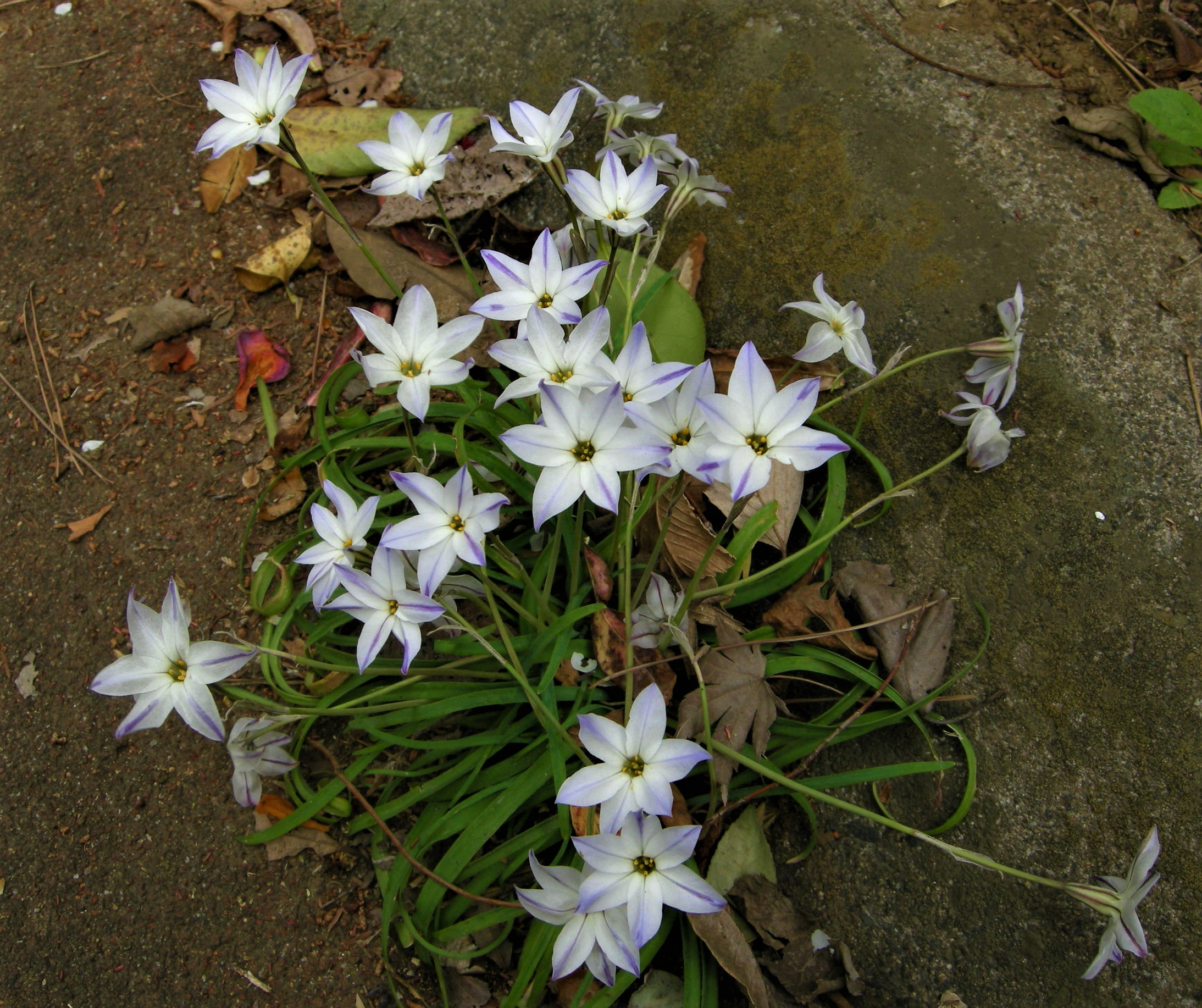 ハナニラは、近年、空き地や道端で白色や淡紫色の花を咲かせているのを多く見かけます。