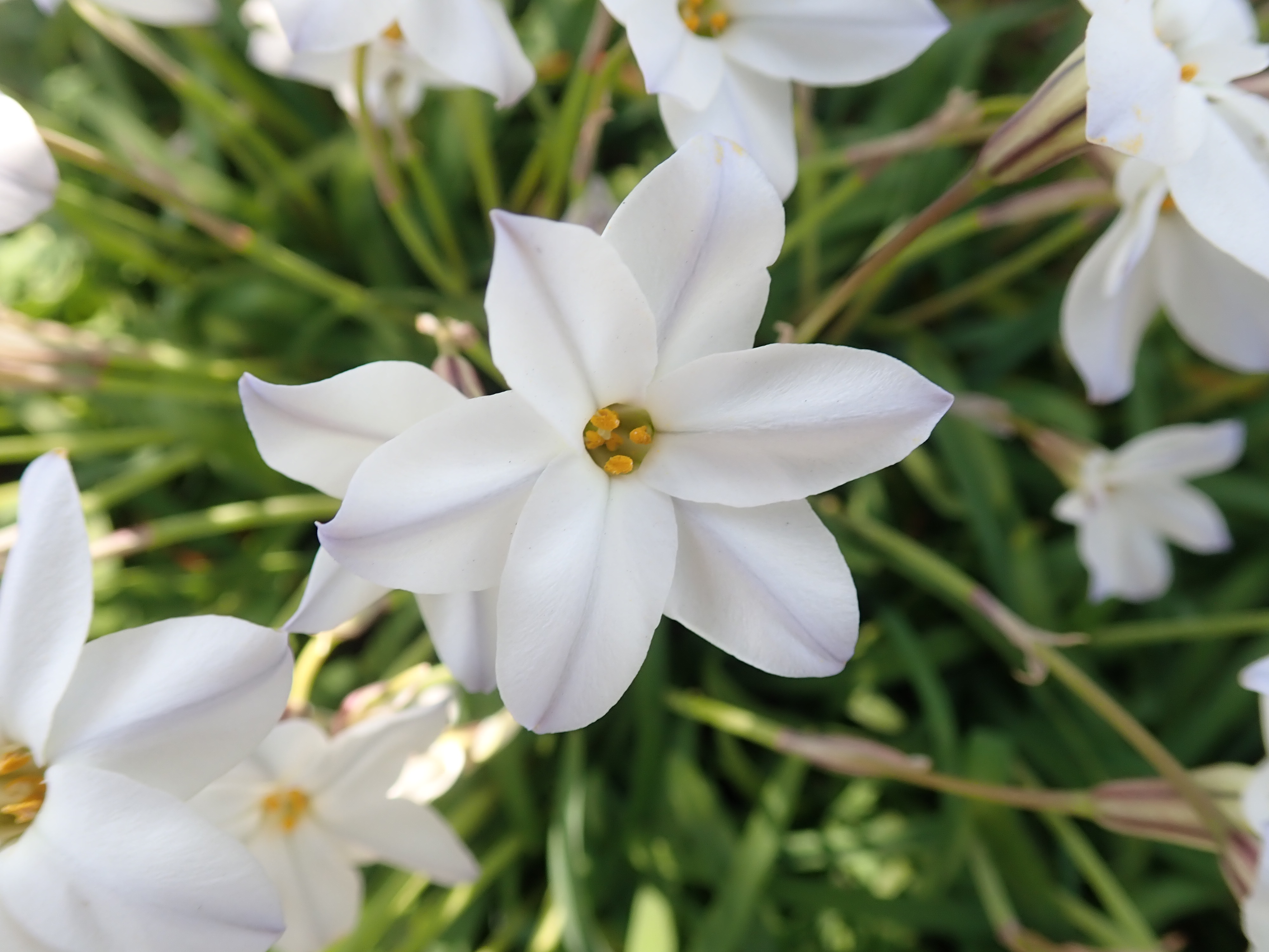 野菜のニラも、蕾が付いているものは「ハナニラ」と呼ばれて、売られていることがあります。こちらは夏の終わりころ、茎の先に小さい白い花が沢山咲きます。