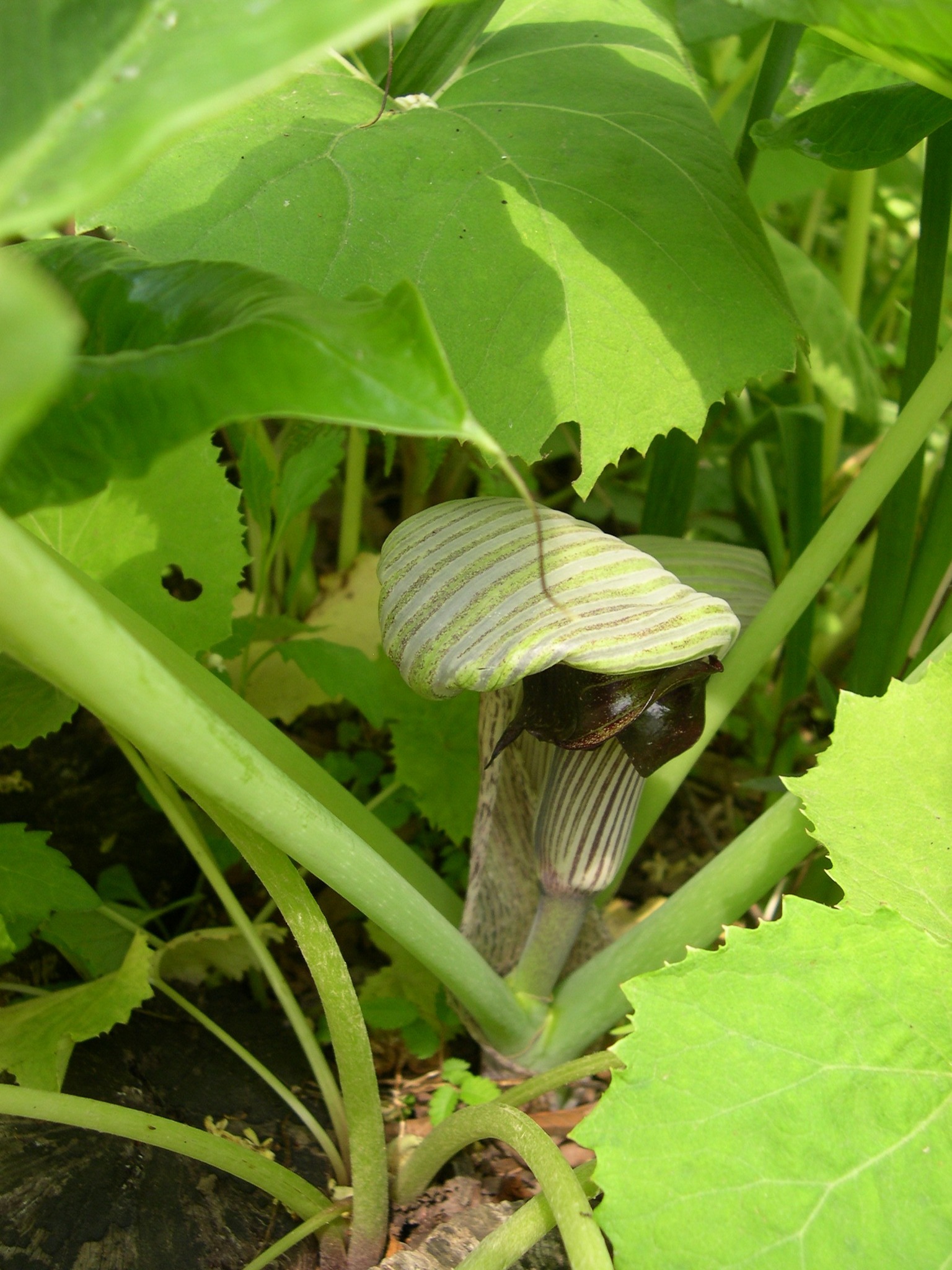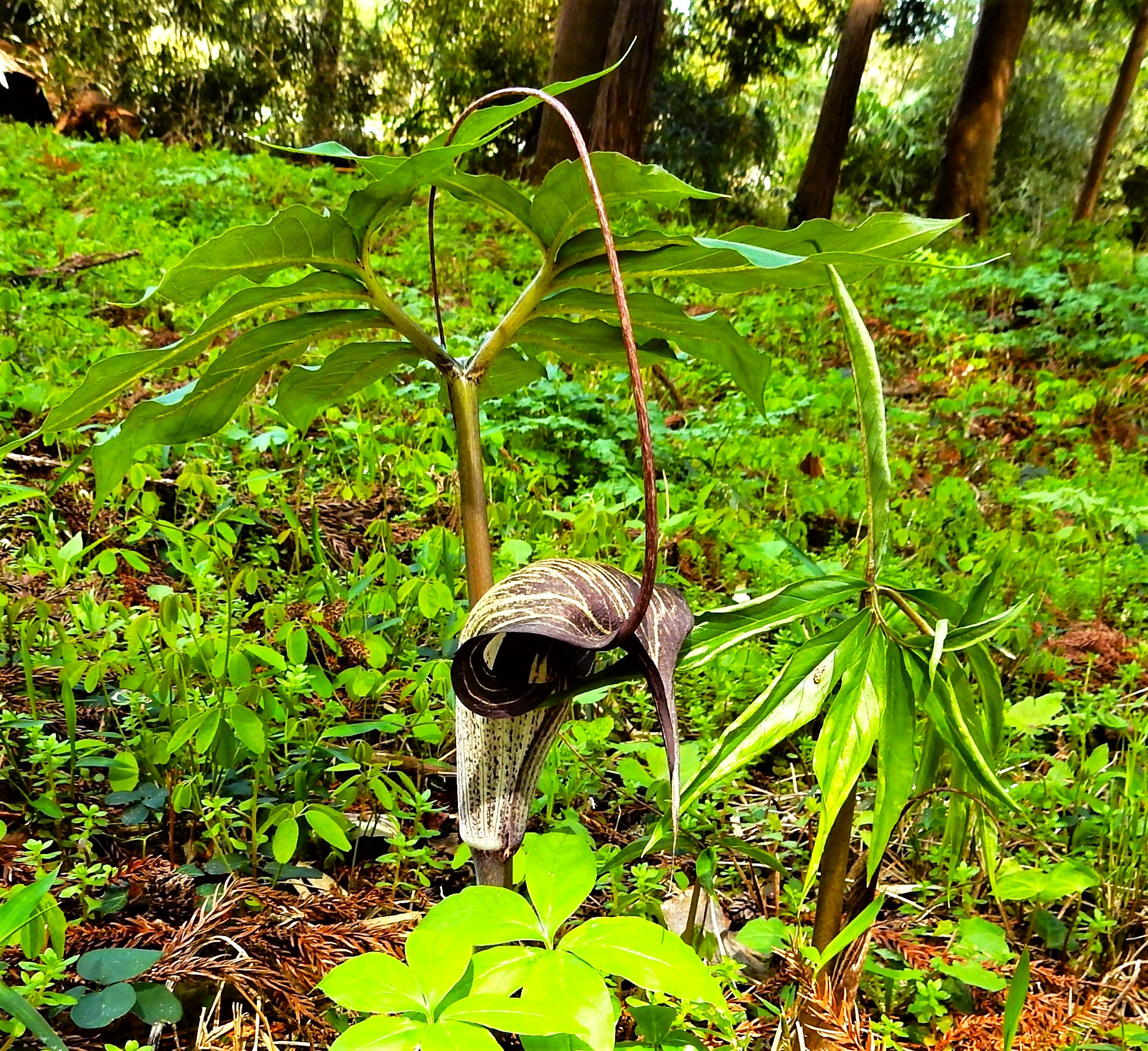 春の野山で見られるマムシグサやウラシマソウなどと同じ仲間です。関西に多く生育している植物ですが、近年、園芸店で売られているのを見かけます。