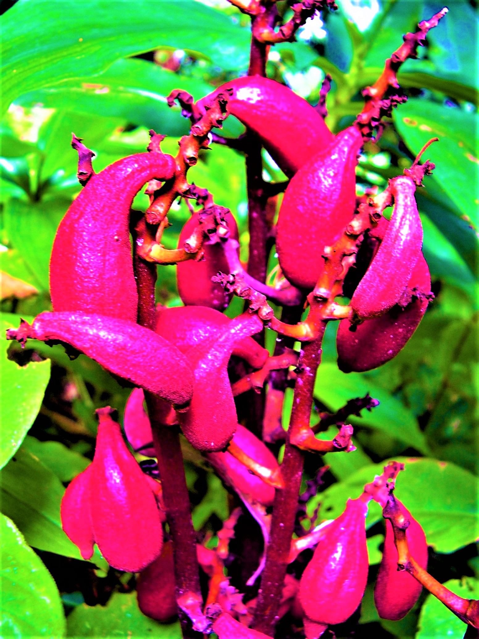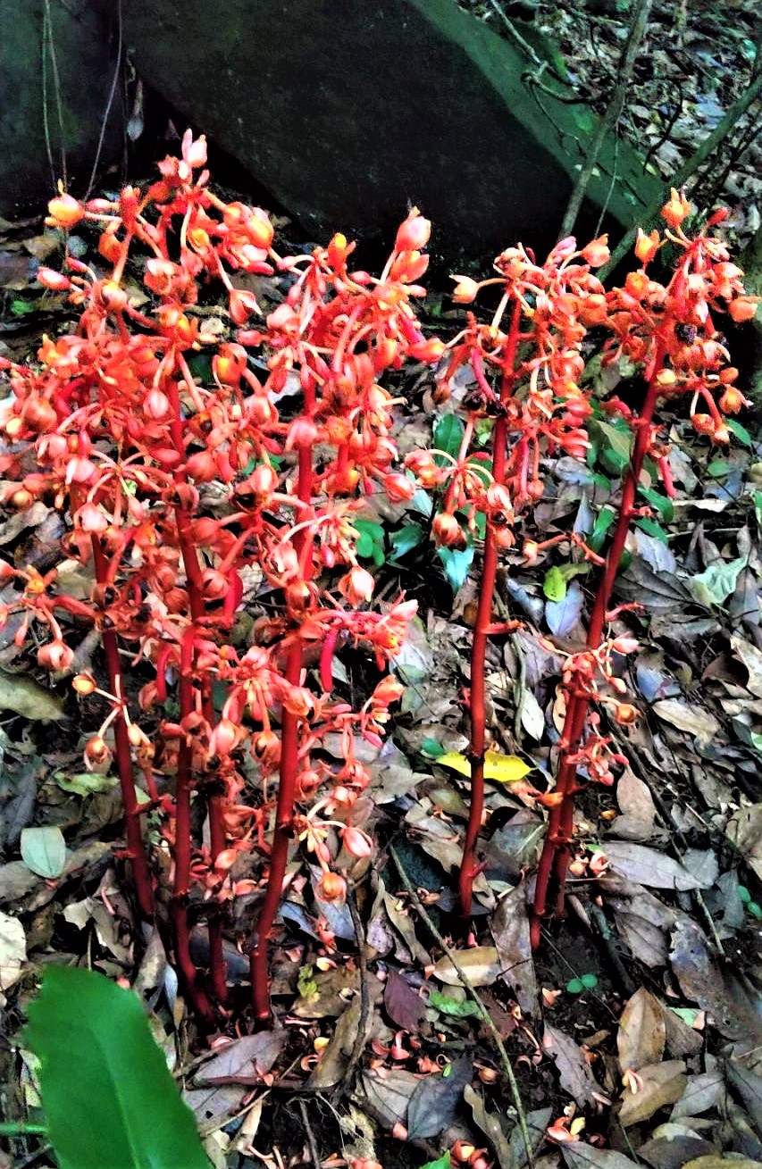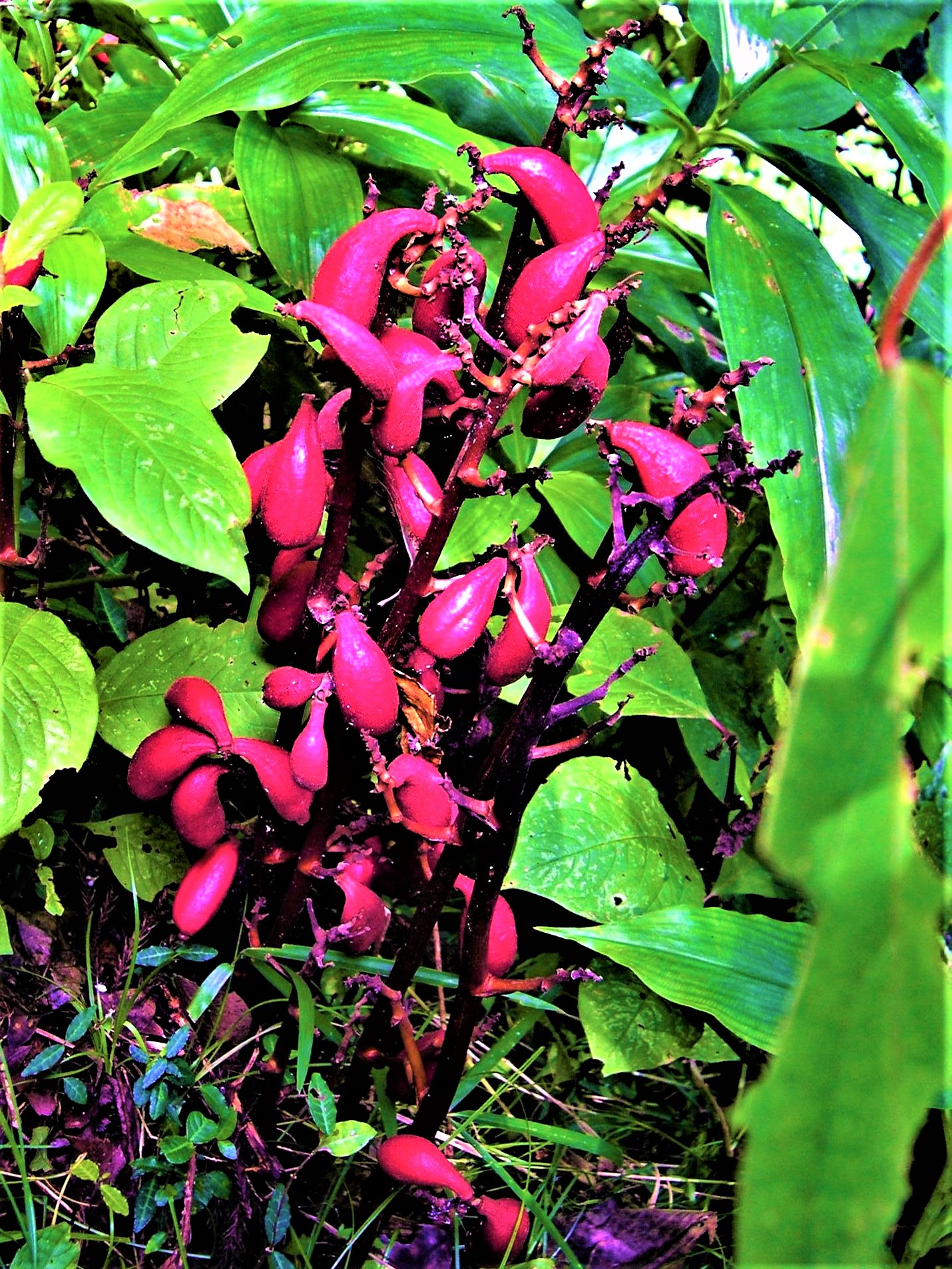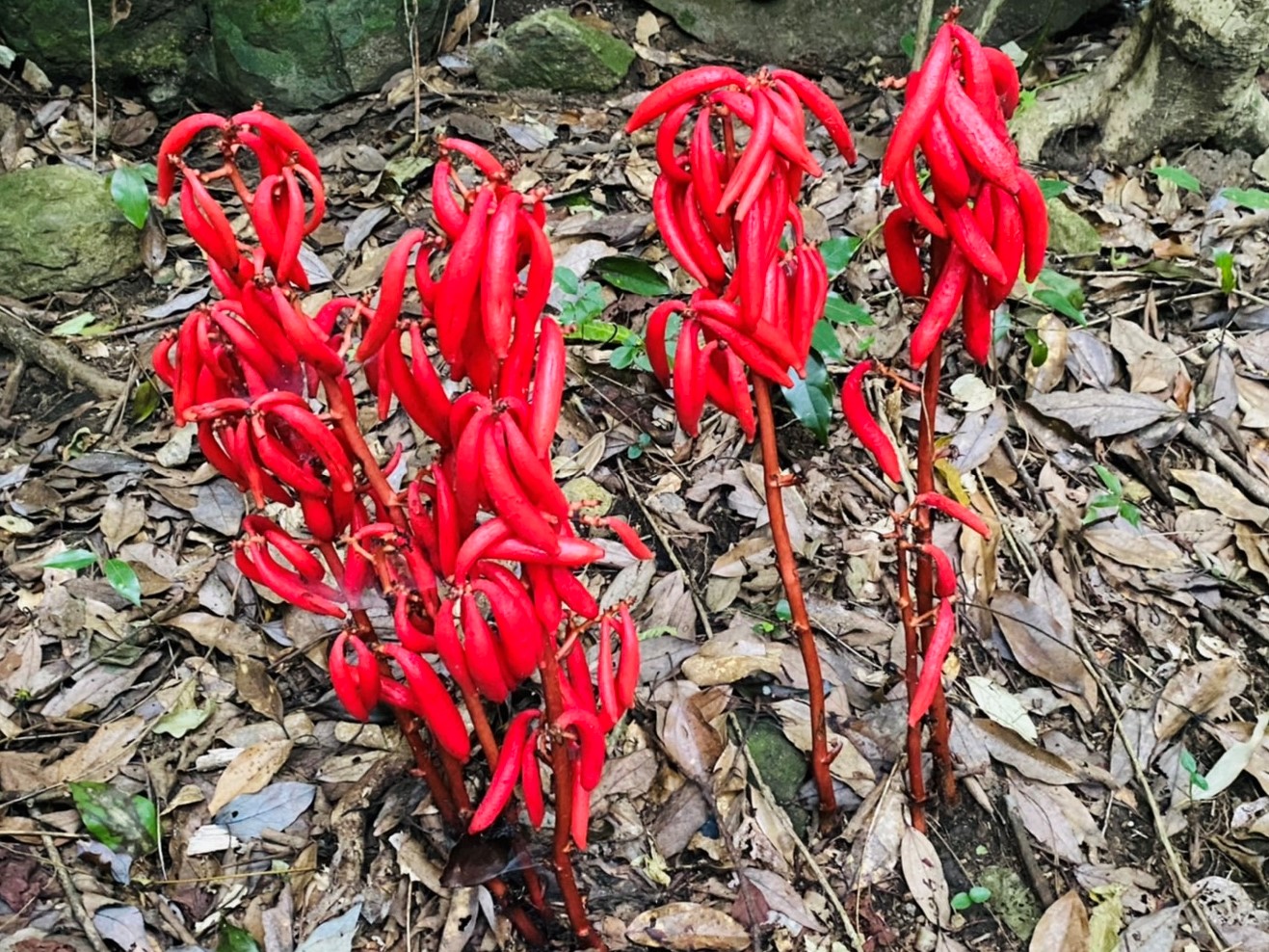 林の中で、真っ赤なウインナーソーセージが地面から生えている光景に巡り合うことがあります。ツチアケビの果実です。地面から生えるアケビの意ですが、ランの仲間で、アケビとの関りはなく、アケビのように果実が裂開することもありません。