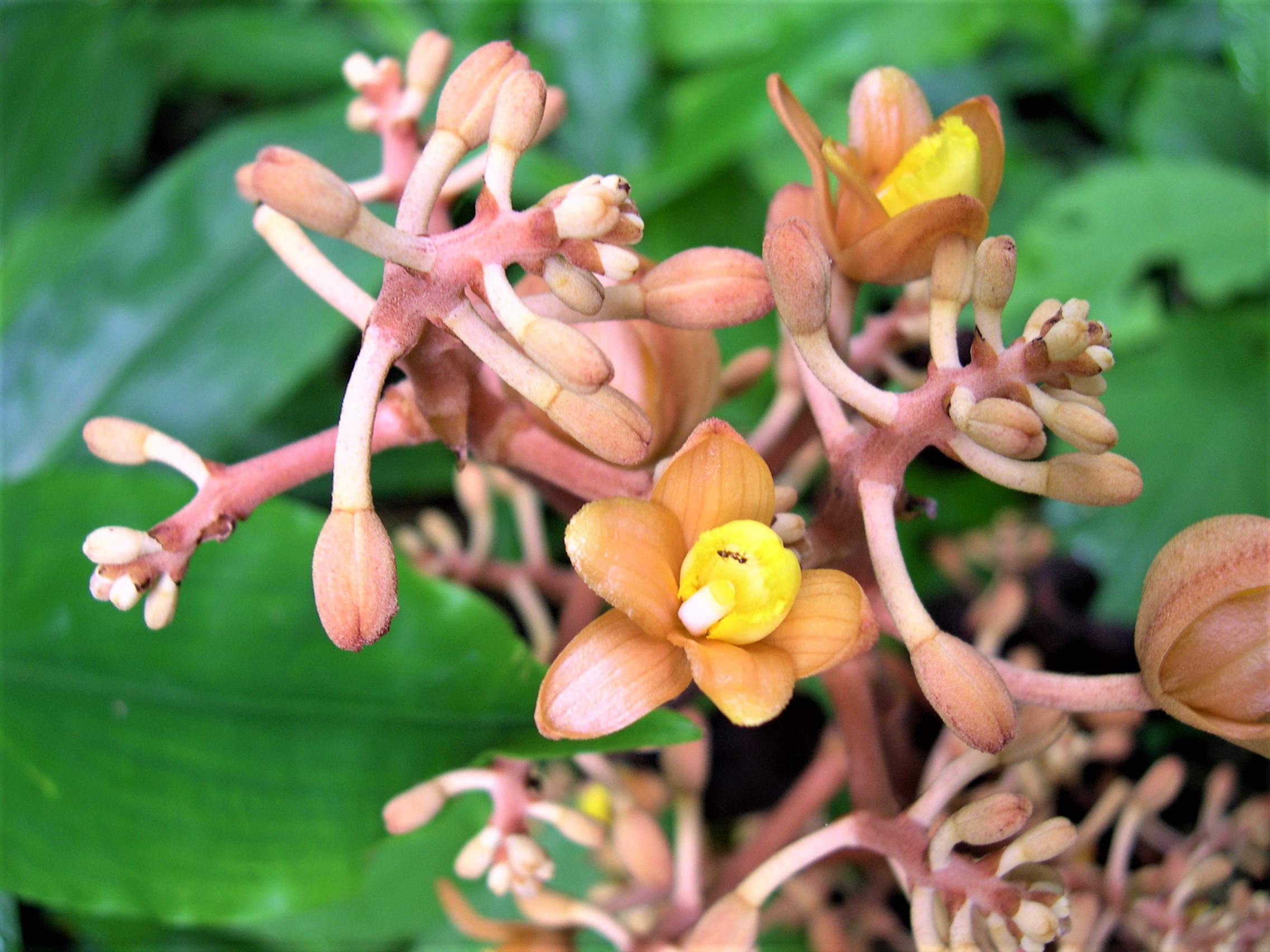 赤いウインナーソーセージのような果実は、ランの仲間の果実には珍しく肉質の液果になります。種子も、他のランの仲間に比べて、若干、大き目です(ツチアケビ 0.8×1.0㎜ シュンラン 0.15×1.4㎜ ネジバナ 0.25×0.7㎜)。
