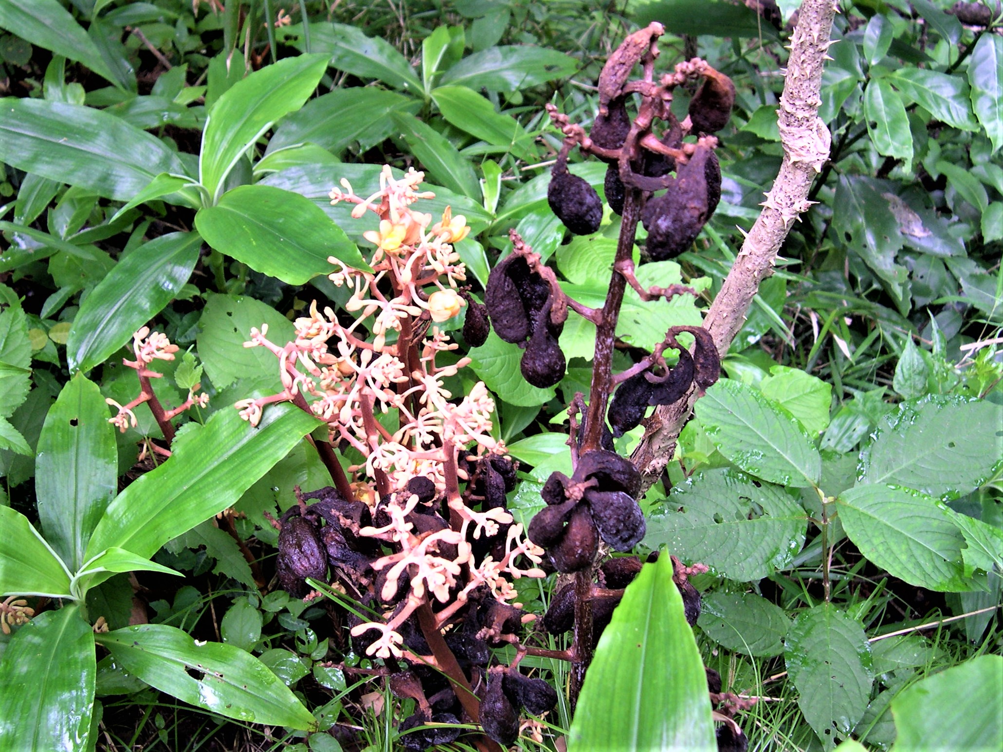 種子の大きさから推察できるように、シュンランやネジバナは散布を風に頼りますが、果肉があって、ちょっと大きめの種子は、動物による散布の可能性も考えられます。ヒヨドリなどの鳥による散布が報告されています。食べられないまま朽ちてしまうこともあります。