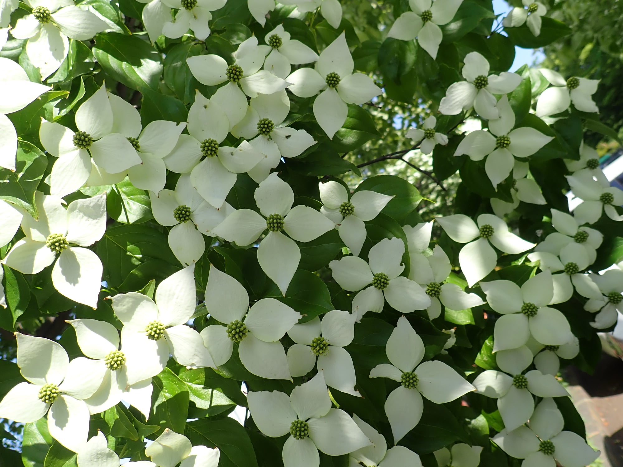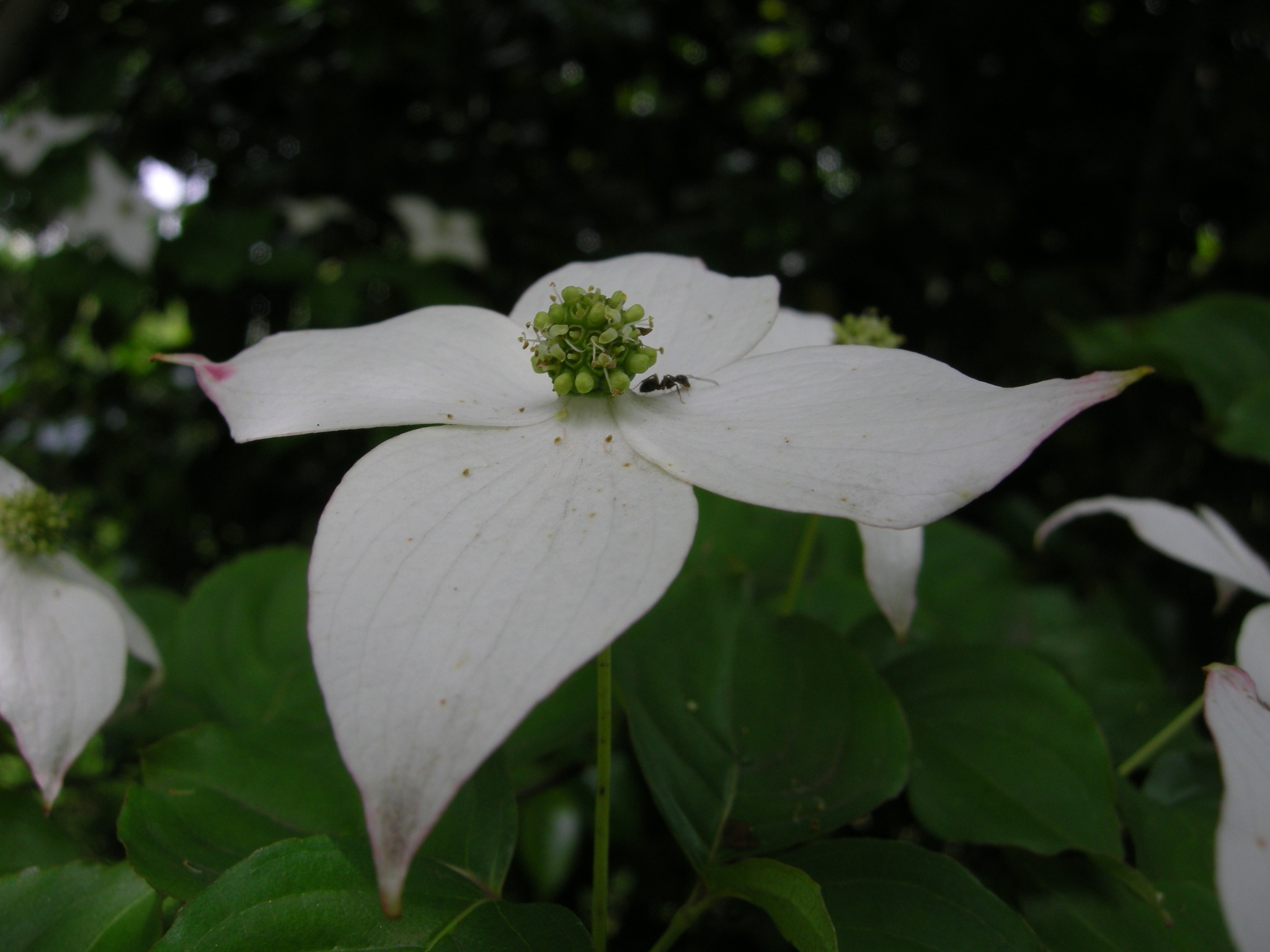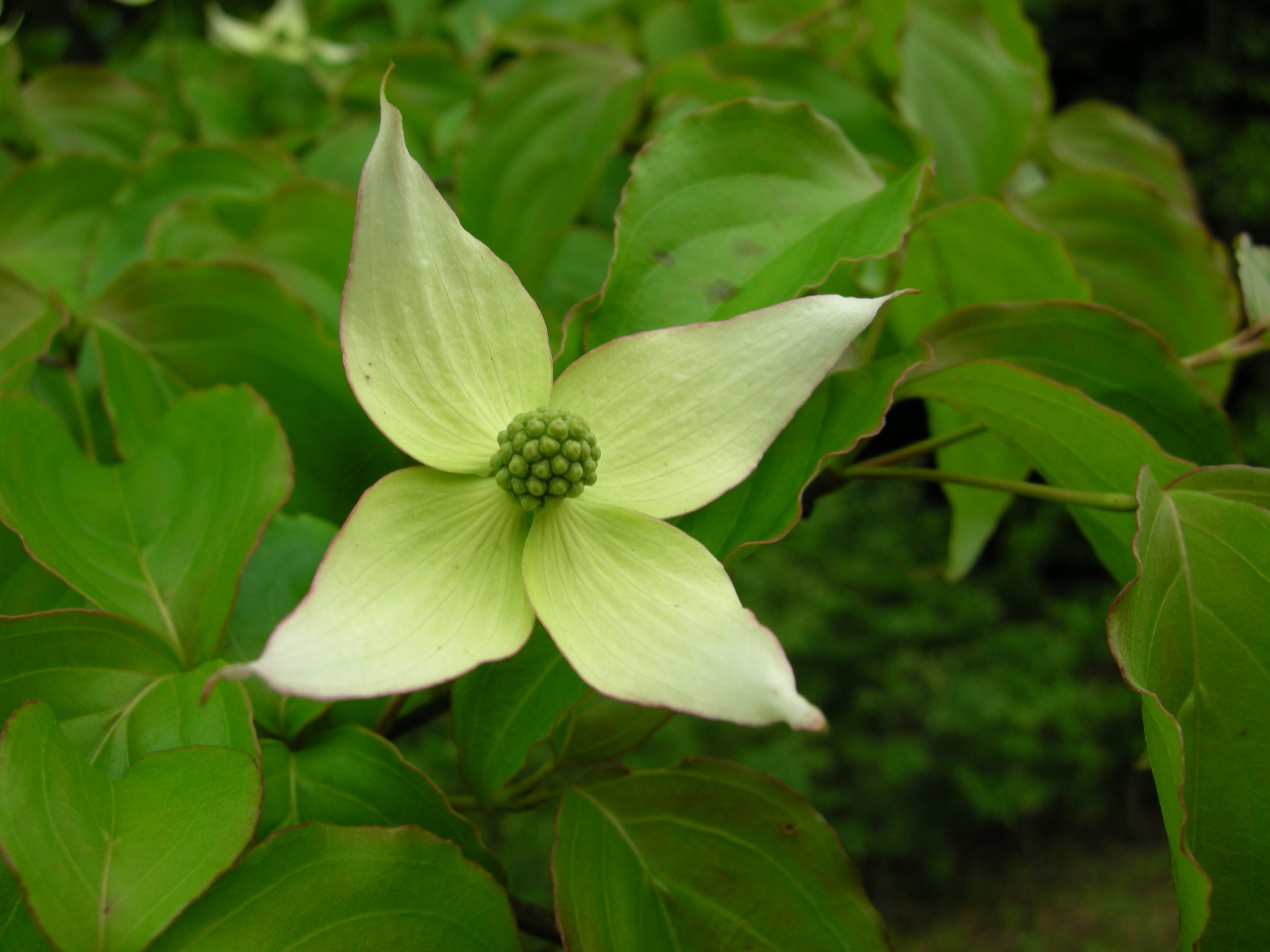 苞葉は葉が変化したものといわれており、つぼみのころには緑色をしています。時間の経過とともに、白くなります。目立たない花を目立たせるための花の戦略と説明されることもあります。